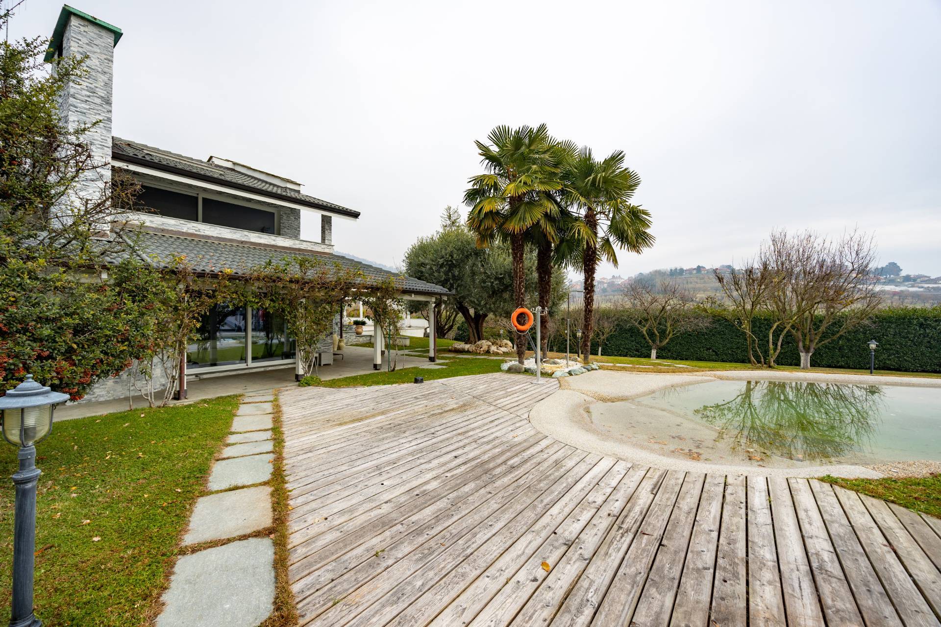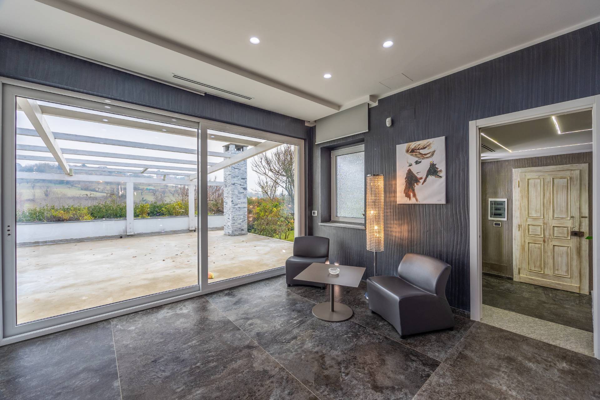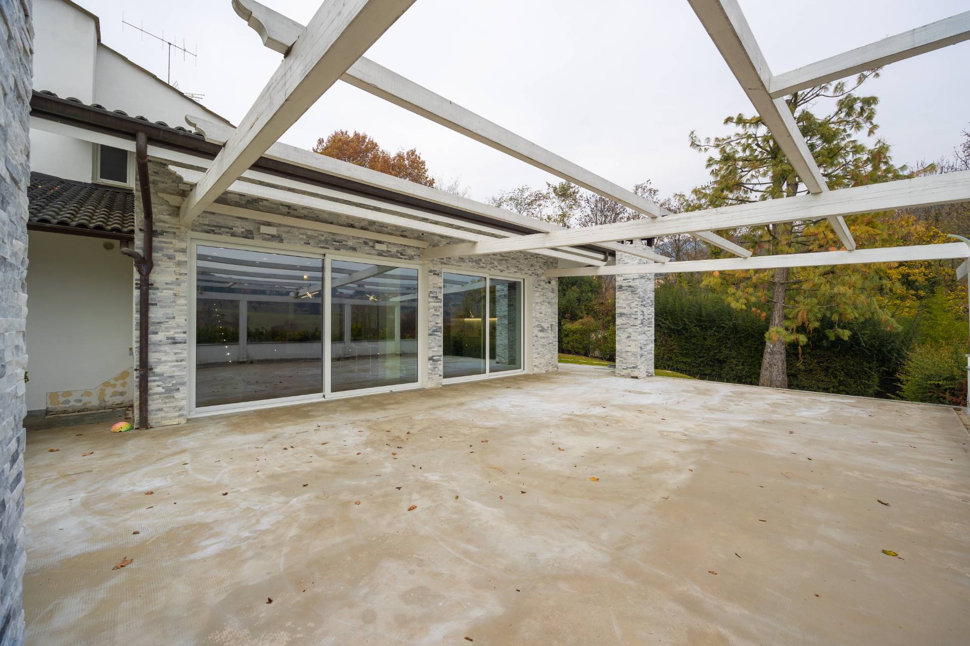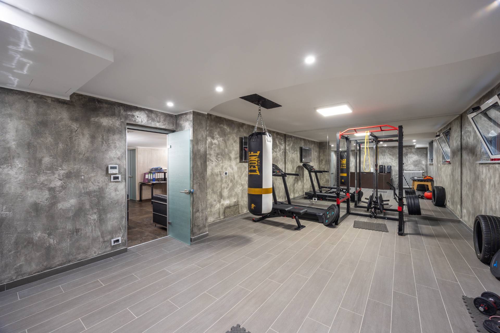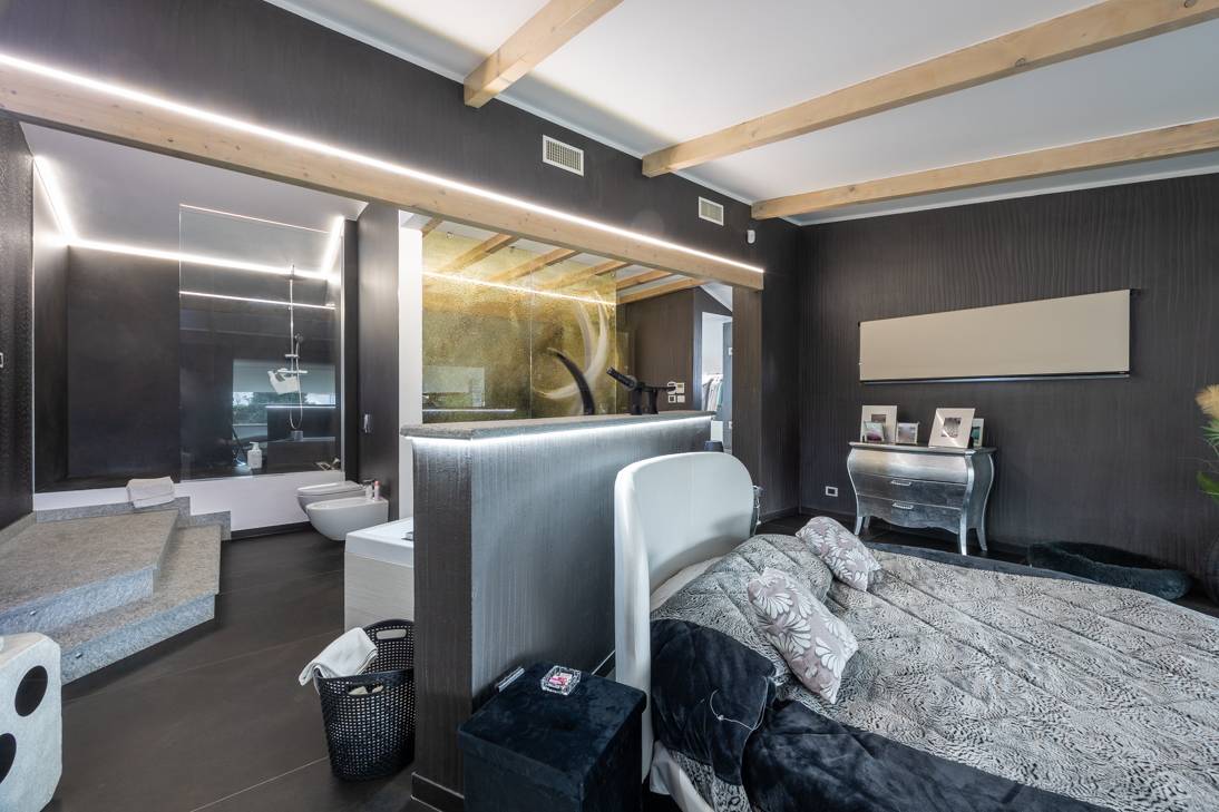 In the historic hilltop Village of Revigliasco, this detached Villa is spread over three levels. The first floor comprises an entrance hall, a spacious living room with a raised study, a kitchen with access to the terrace, a guest bathroom, a sleeping area with a hallway, two bedrooms, and two bathrooms. The second floor is entirely dedicated to the spacious master bedroom with double walk-in closets and an open-plan bathroom. The lower ground floor, which is not a basement, features a spacious living room with kitchen, laundry room, gym area, bathroom, and wine cellar.