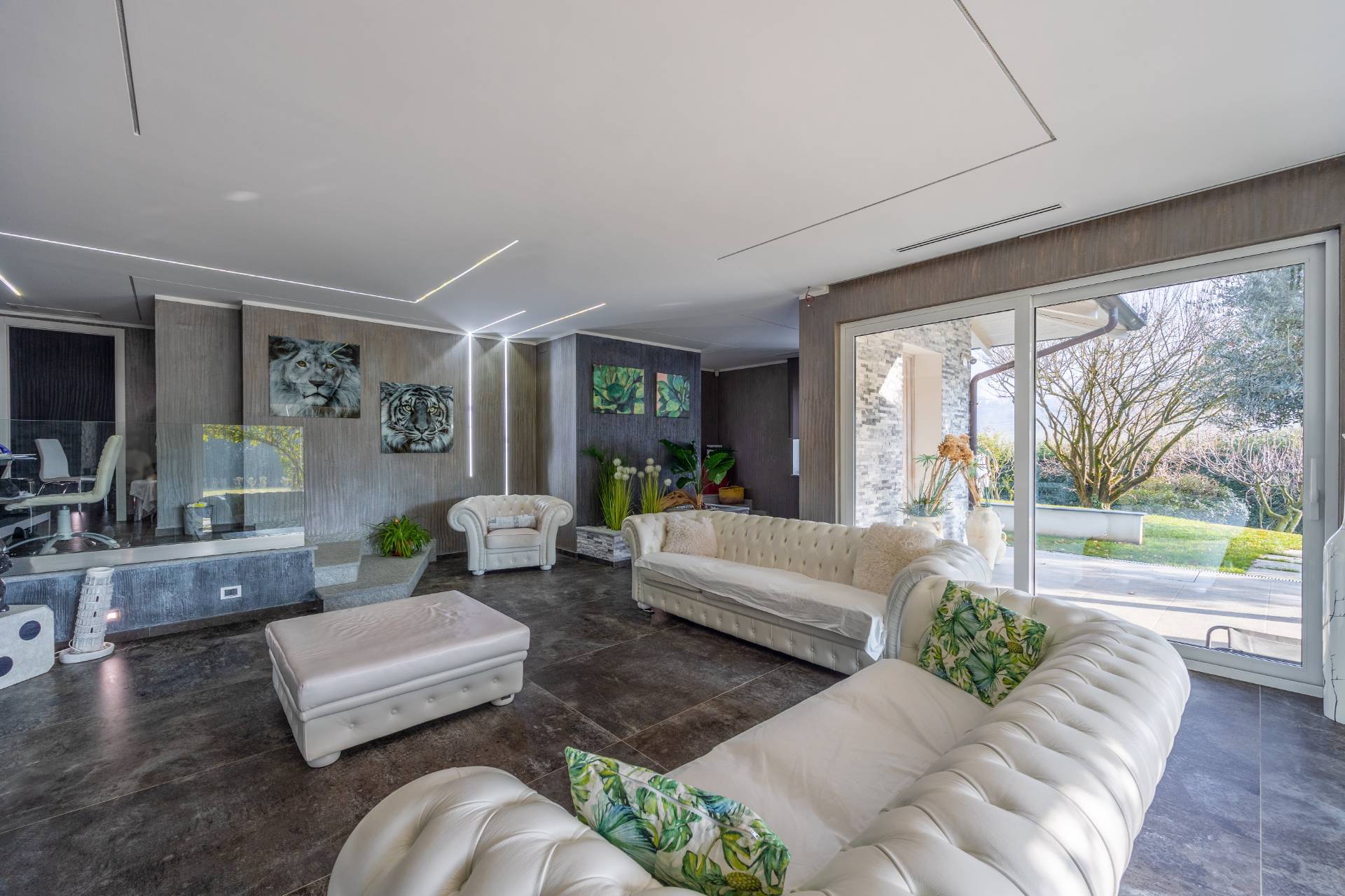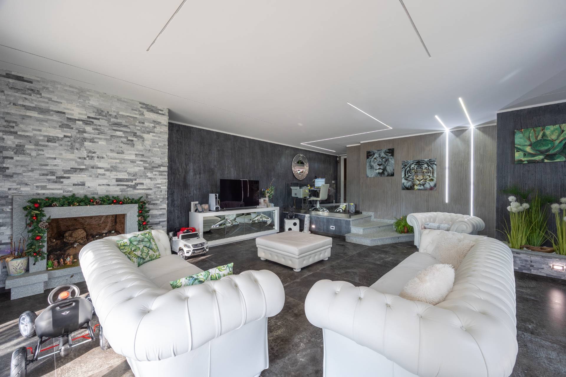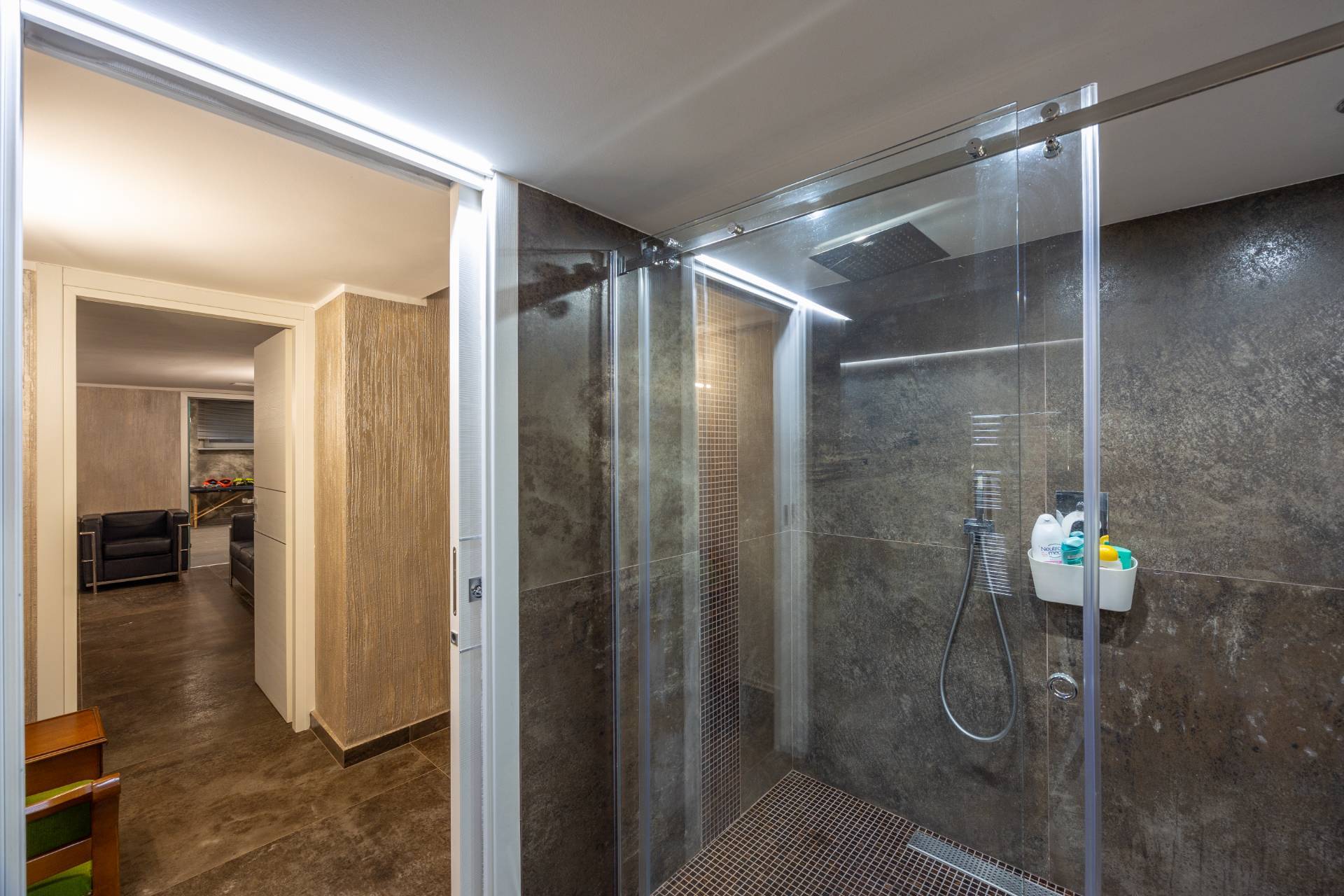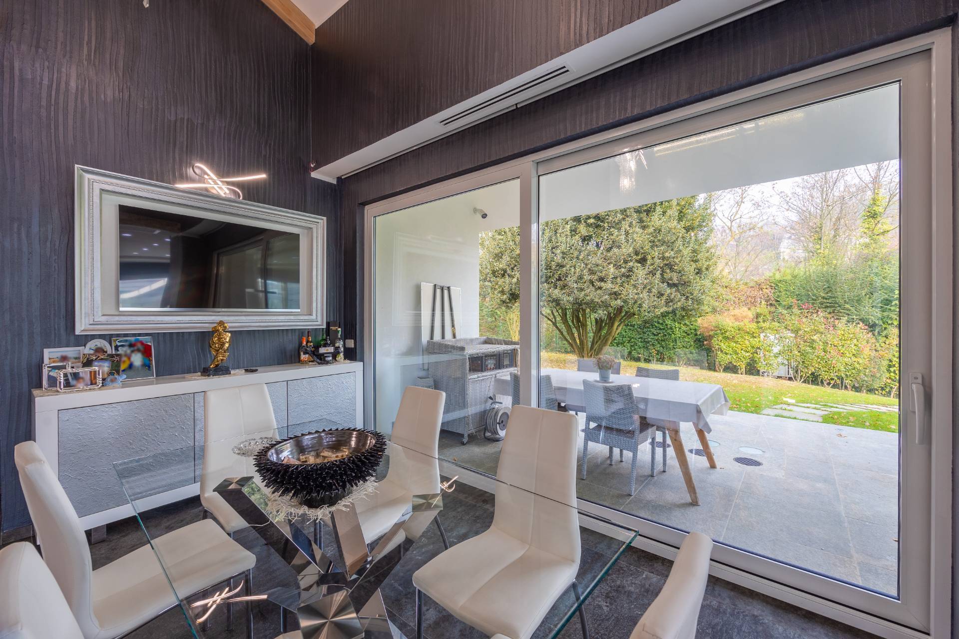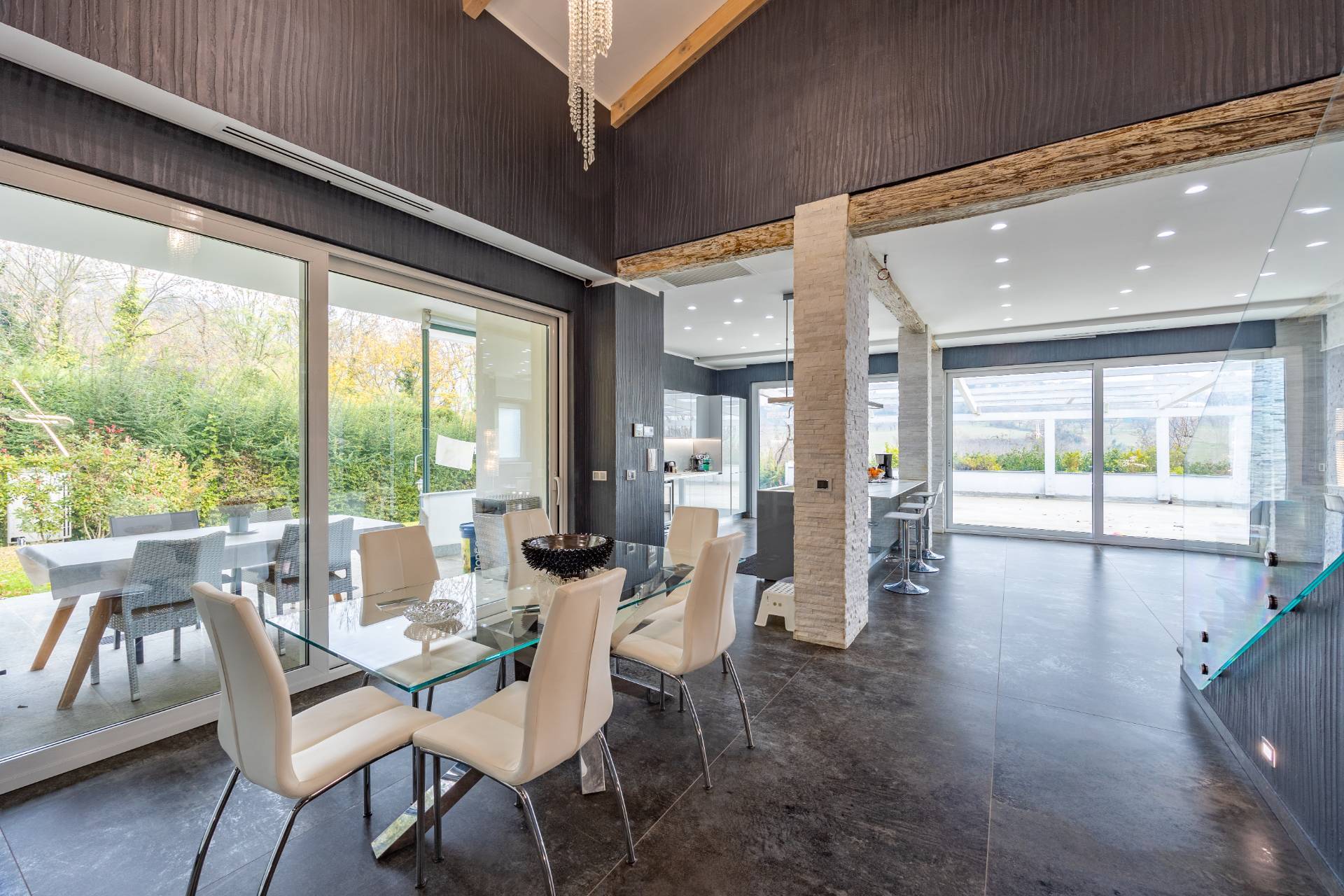 In the historic hilltop Village of Revigliasco, this detached Villa is spread over three levels. The first floor comprises an entrance hall, a spacious living room with a raised study, a kitchen with access to the terrace, a guest bathroom, a sleeping area with a hallway, two bedrooms, and two bathrooms. The second floor is entirely dedicated to the spacious master bedroom with double walk-in closets and an open-plan bathroom. The lower ground floor, which is not a basement, features a spacious living room with kitchen, laundry room, gym area, bathroom, and wine cellar.