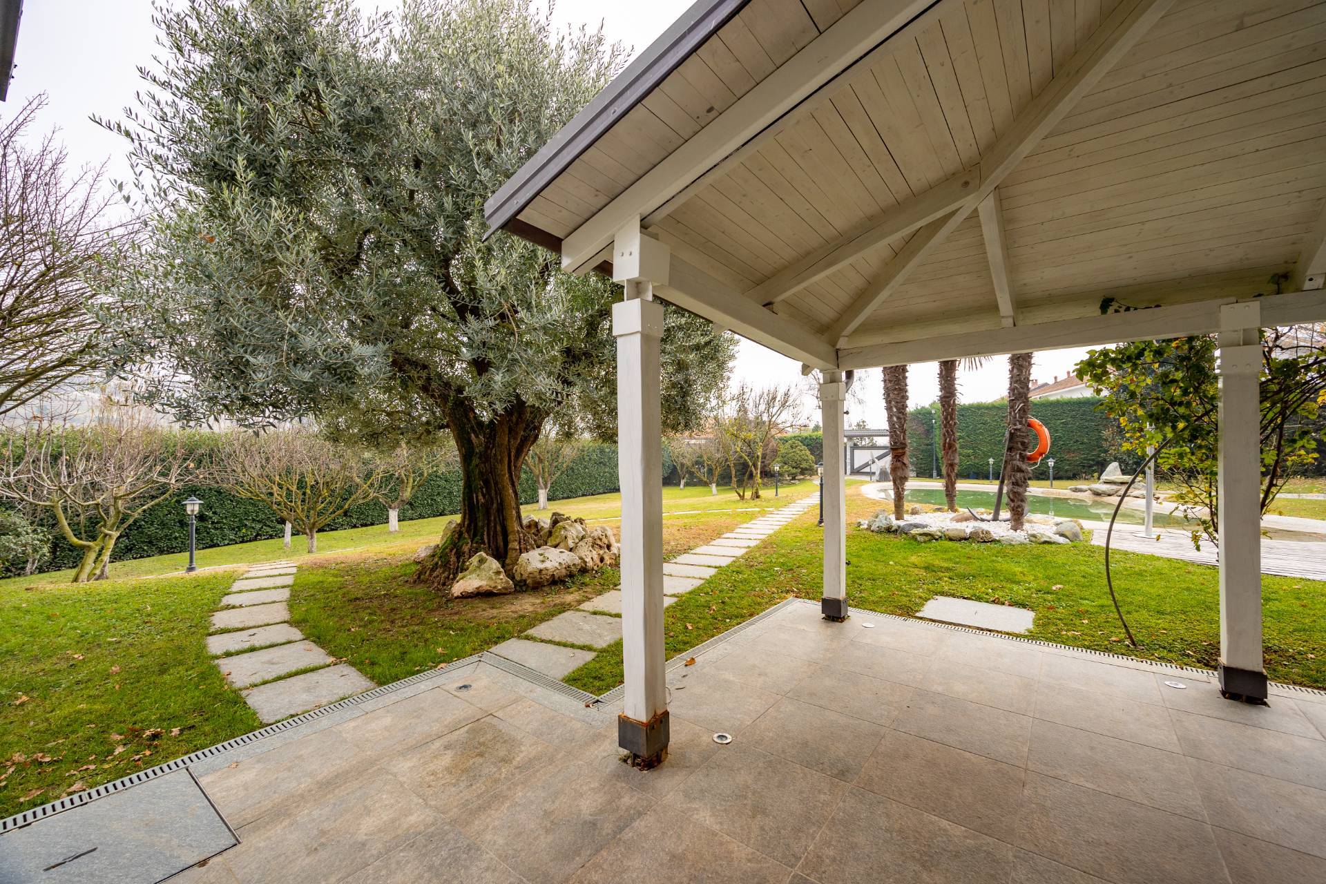 Surrounded by a private garden with swimming pool and carport.