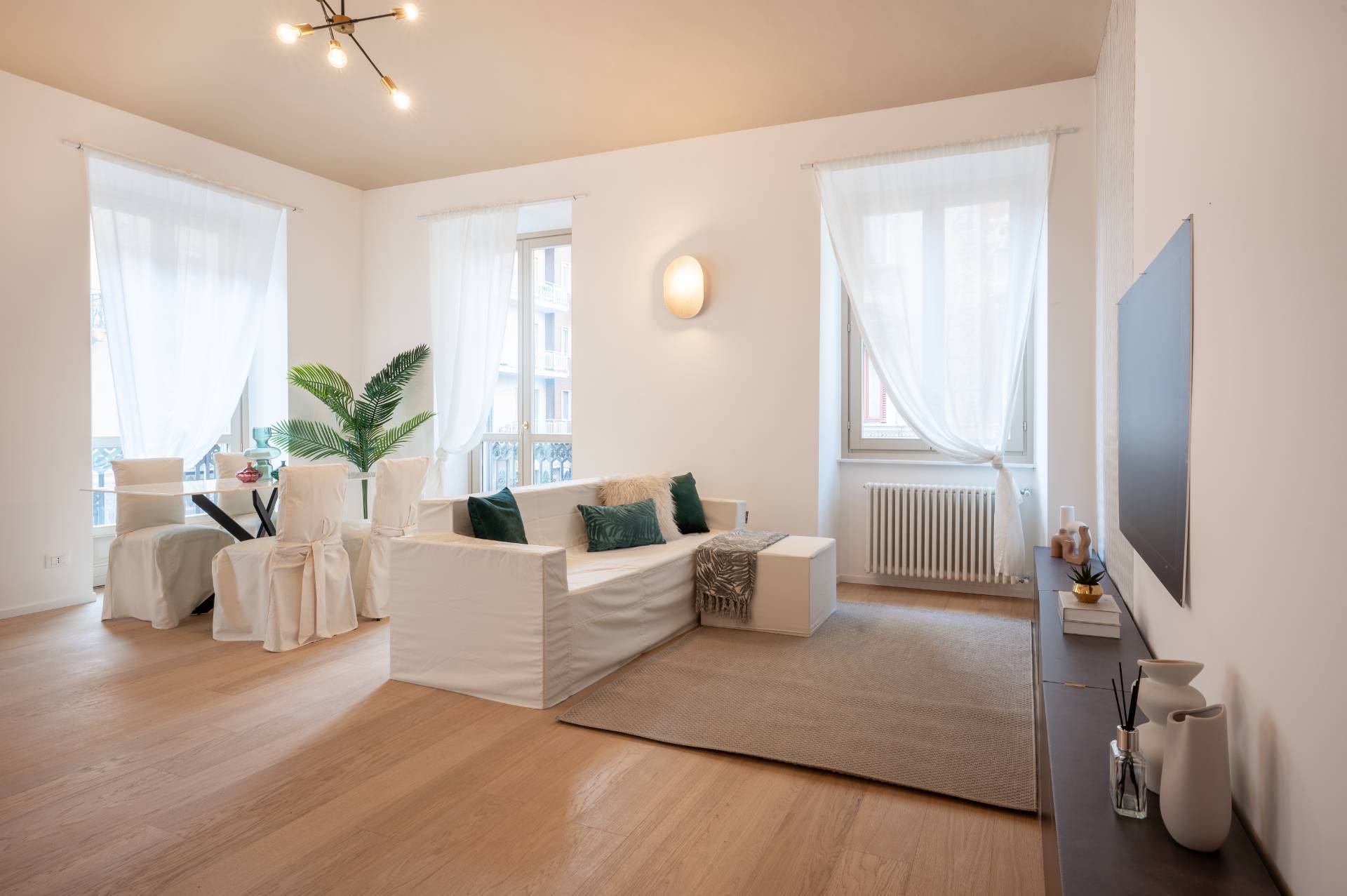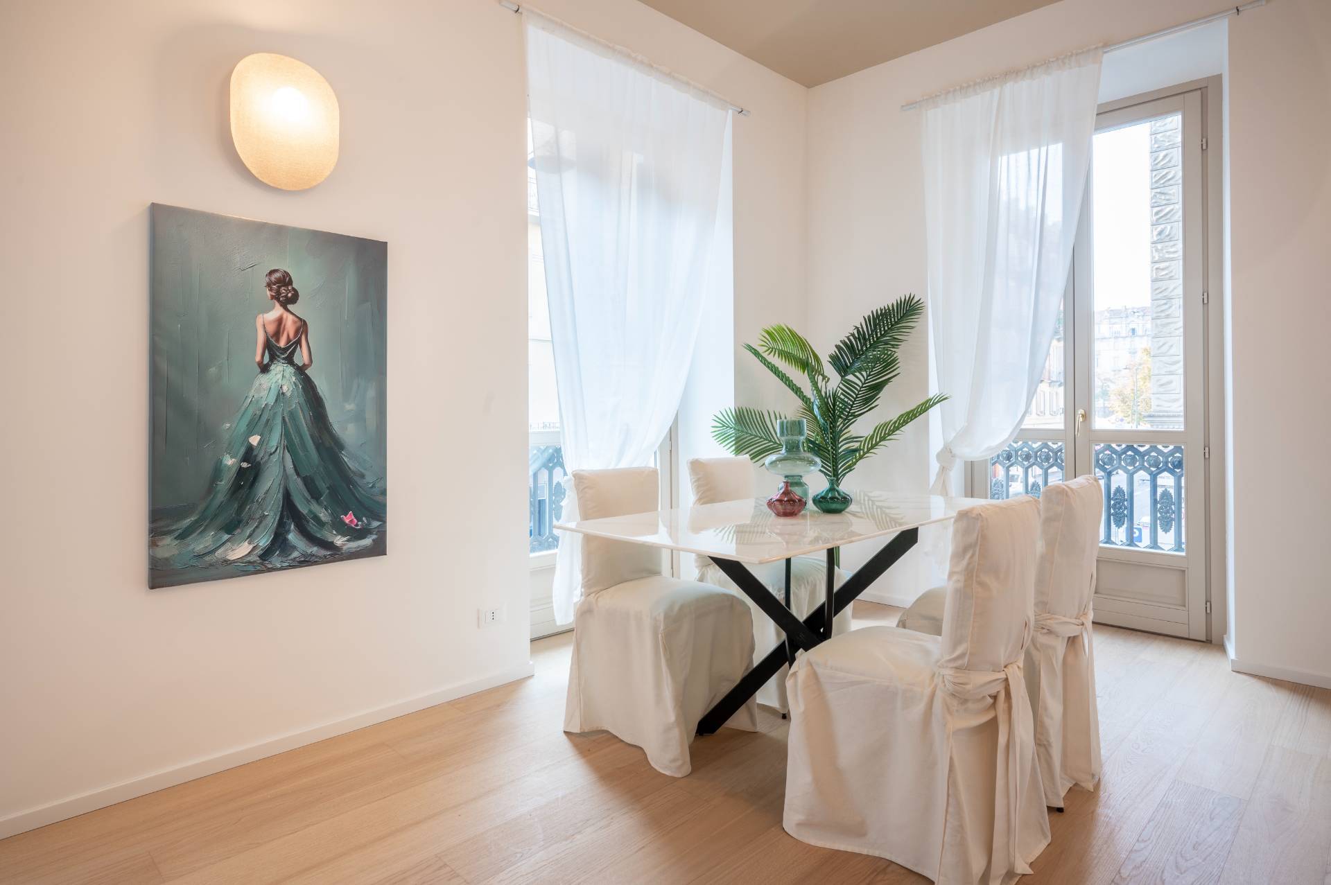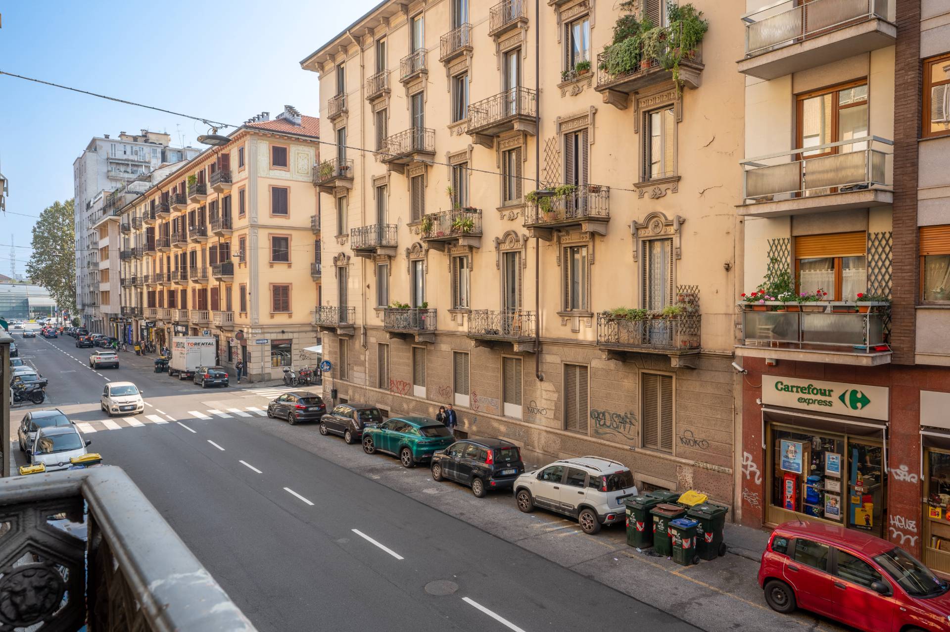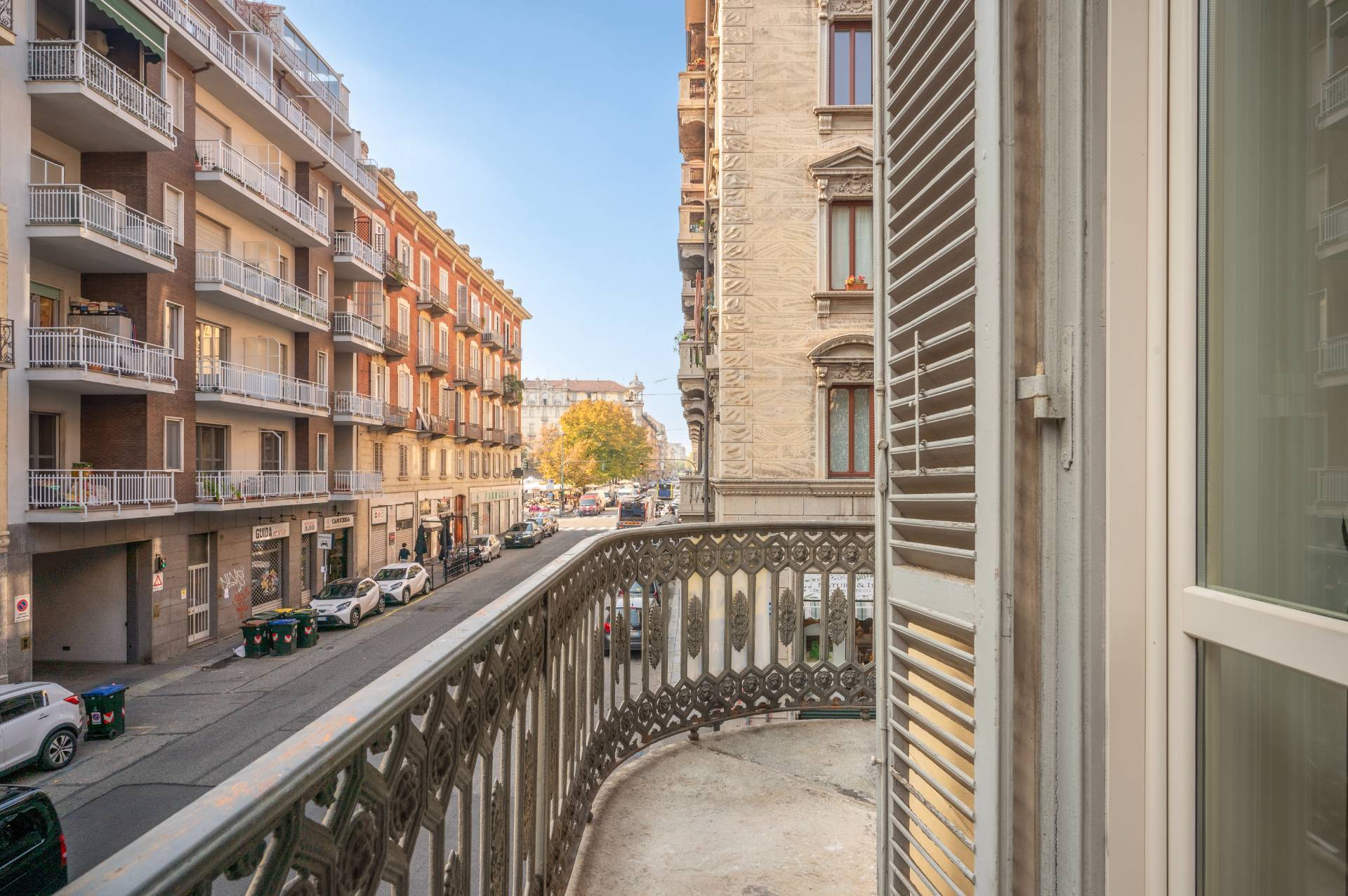 Just a few meters from Porta Susa train station and the metro station, this beautifully renovated apartment, rated energy class B, comprises an entrance hall, a living room with an open-plan kitchen, two bedrooms, and a bathroom/laundry room. The property also includes three balconies and a cellar (on the same floor). The unit is located on the first floor and enjoys double exposure and excellent natural light. The heating is independent, powered by a latest-generation hybrid boiler and aluminum tubular radiators. The complete renovation was completed in October 2025. The air conditioning system is a heat pump (three Italtherm split units). Condominium fees are low, €80 per month. The land registry income is also low, €506.13. The front door is armored. The window frames are wooden with double glazing (argon gas). The bathroom features wall-mounted fixtures, a floor-level resin shower tray, a tempered glass shower stall, and a modern vanity unit. The flooring throughout is oak parquet. The apartment is being sold unfurnished. The building, equipped with an elevator/goods lift, dates back to the late 19th century and is convenient to all amenities, the Polytechnic University, and the Courthouse. Cat. A/3, 4 rooms.