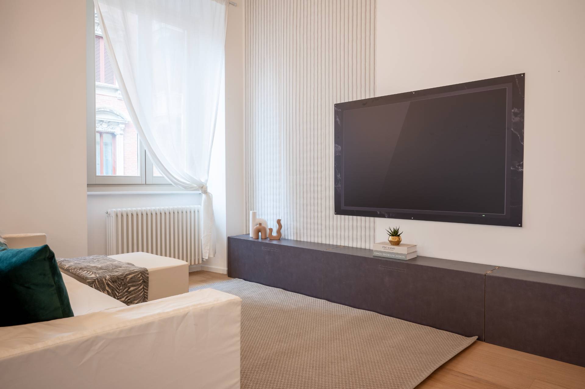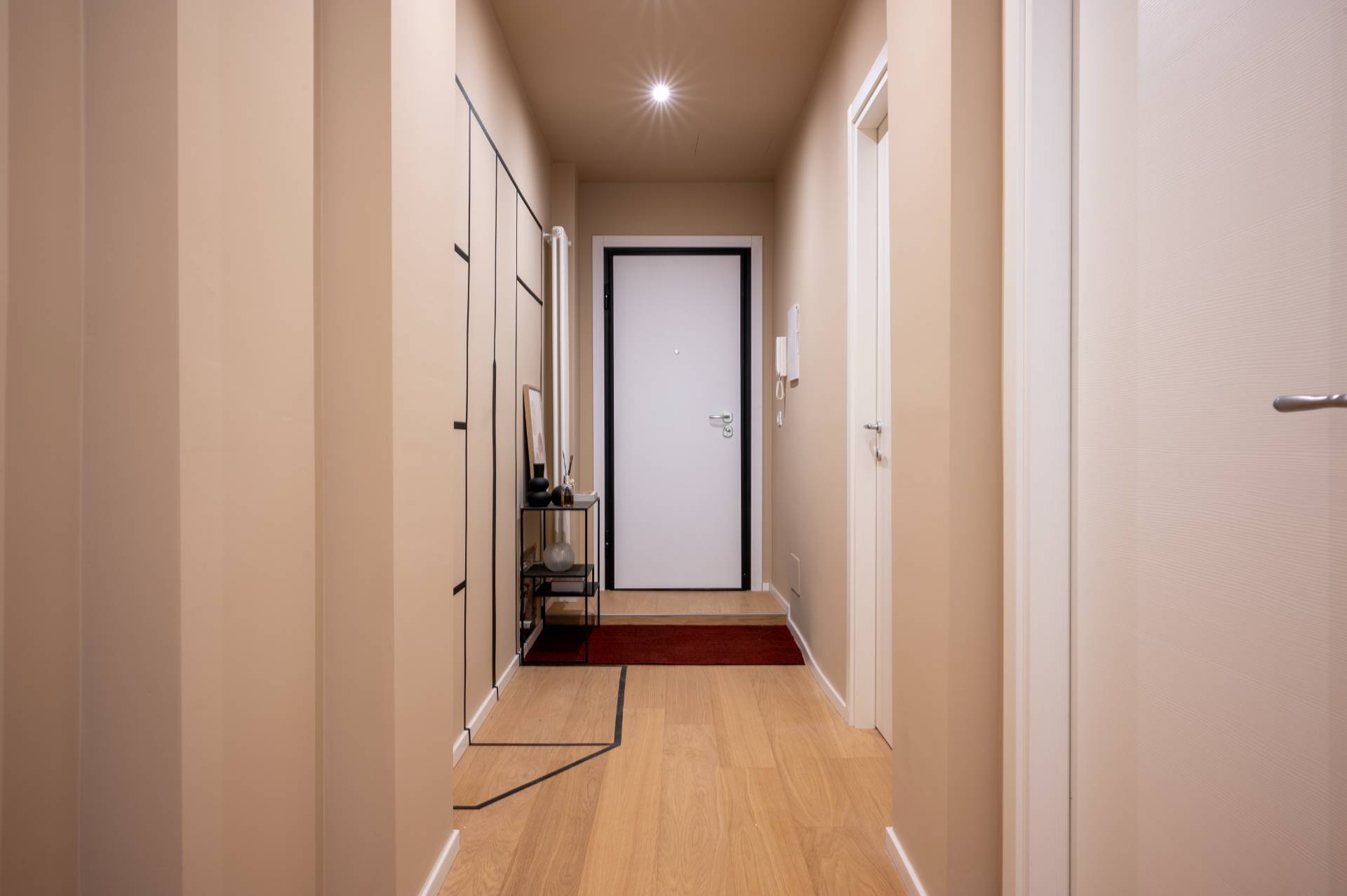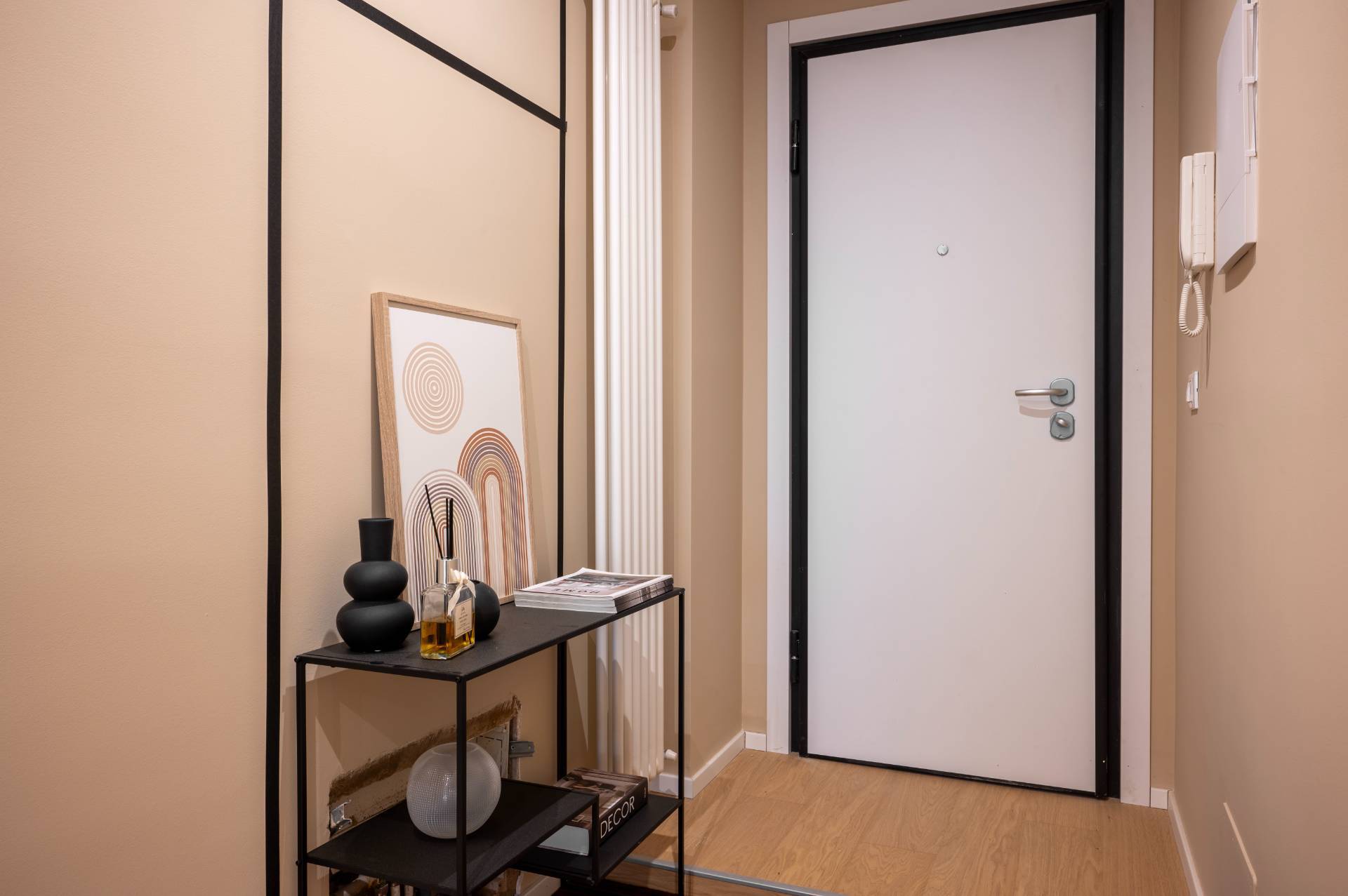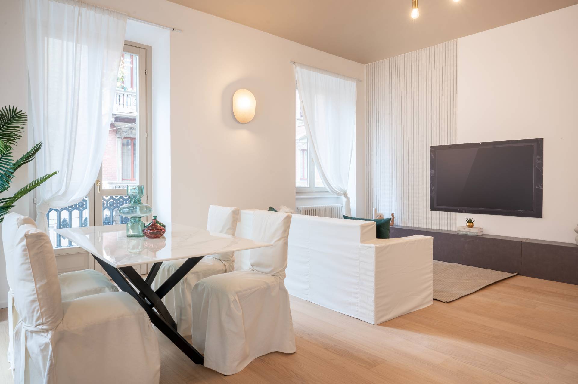 Just a few meters from Porta Susa train station and the metro station, this beautifully renovated apartment, rated energy class B, comprises an entrance hall, a living room with an open-plan kitchen, two bedrooms, and a bathroom/laundry room. The property also includes three balconies and a cellar (on the same floor). The unit is located on the first floor and enjoys double exposure and excellent natural light. The heating is independent, powered by a latest-generation hybrid boiler and aluminum tubular radiators. The complete renovation was completed in October 2025. The air conditioning system is a heat pump (three Italtherm split units). Condominium fees are low, €80 per month. The land registry income is also low, €506.13. The front door is armored. The window frames are wooden with double glazing (argon gas). The bathroom features wall-mounted fixtures, a floor-level resin shower tray, a tempered glass shower stall, and a modern vanity unit. The flooring throughout is oak parquet. The apartment is being sold unfurnished. The building, equipped with an elevator/goods lift, dates back to the late 19th century and is convenient to all amenities, the Polytechnic University, and the Courthouse. Cat. A/3, 4 rooms.