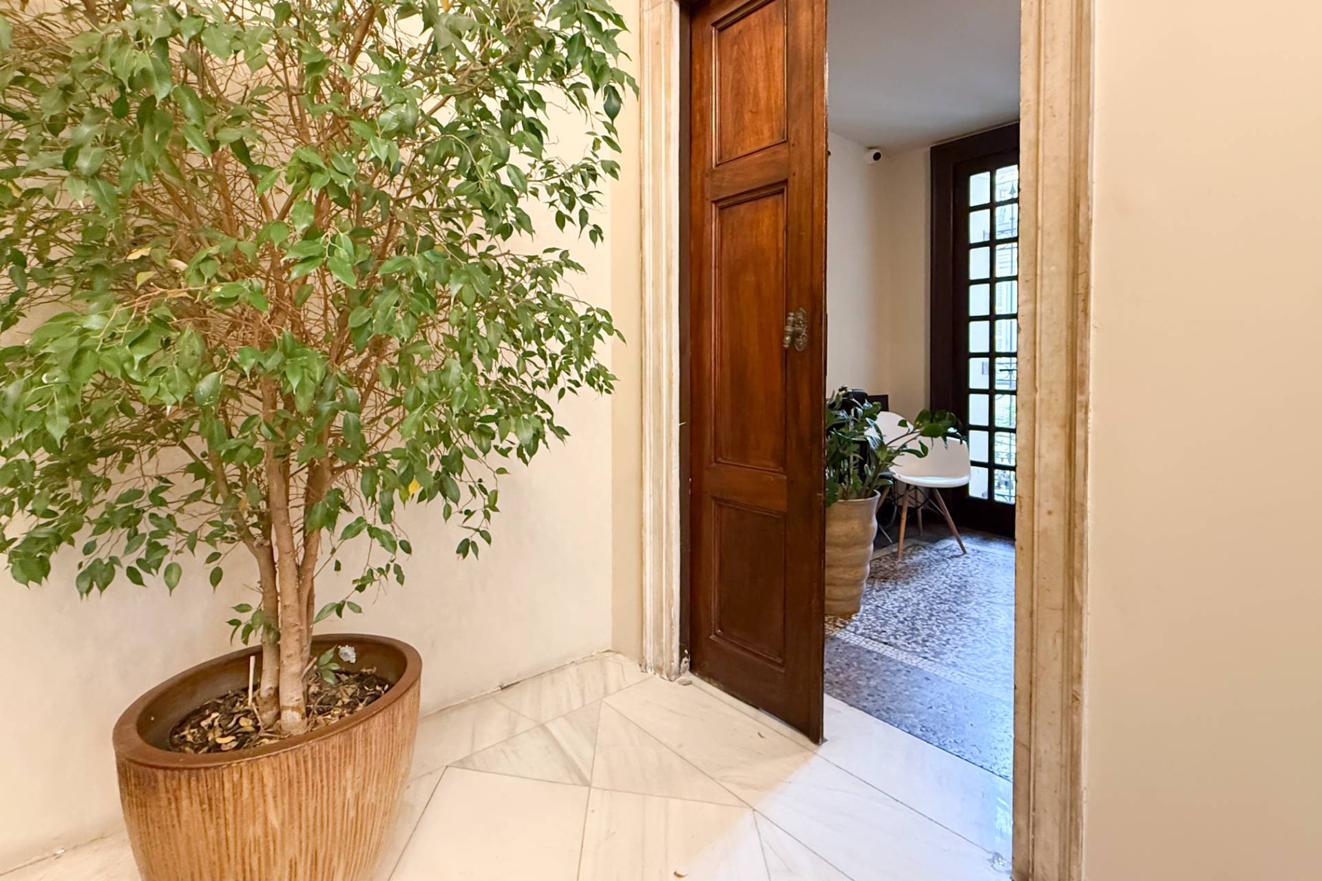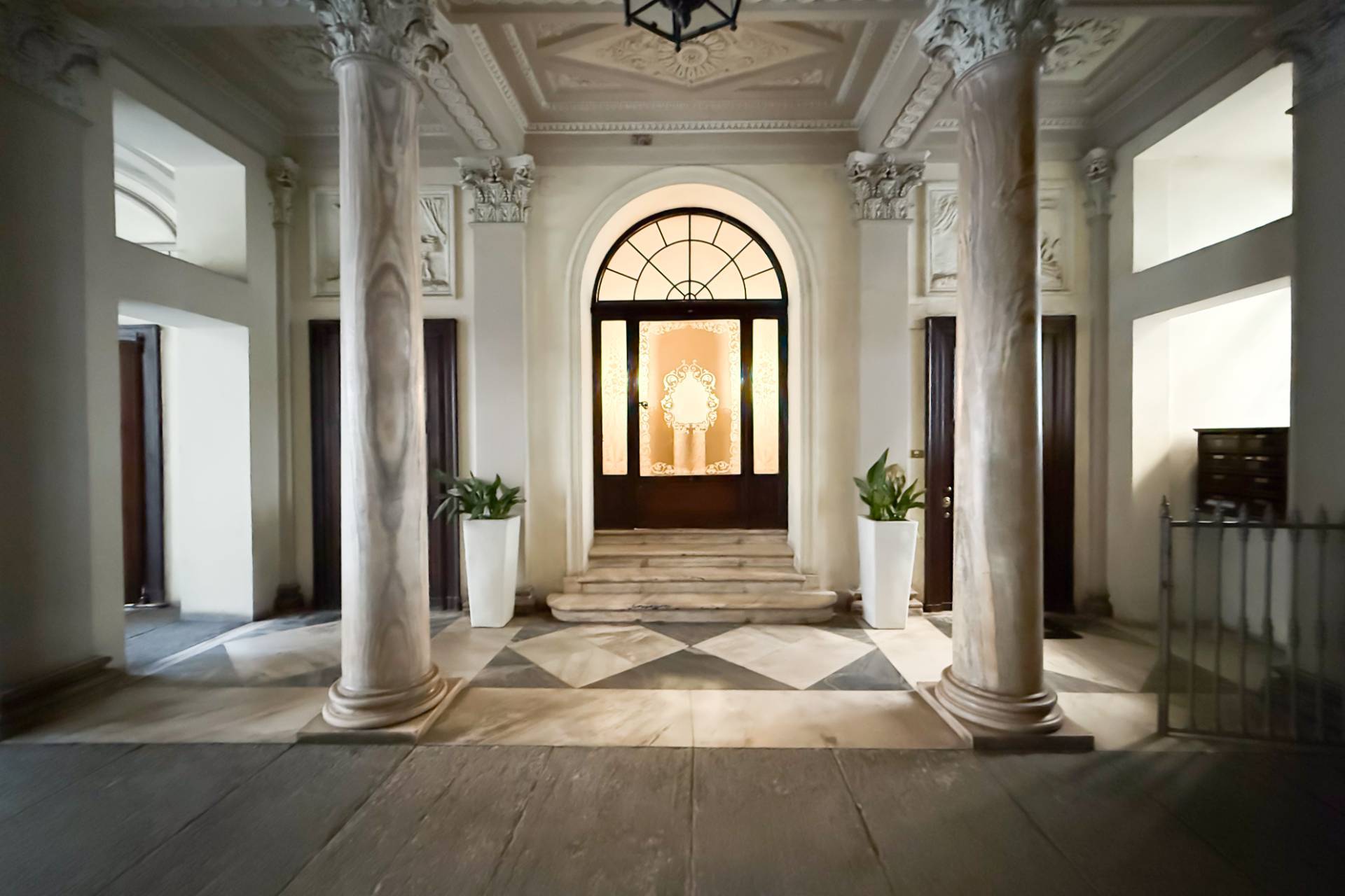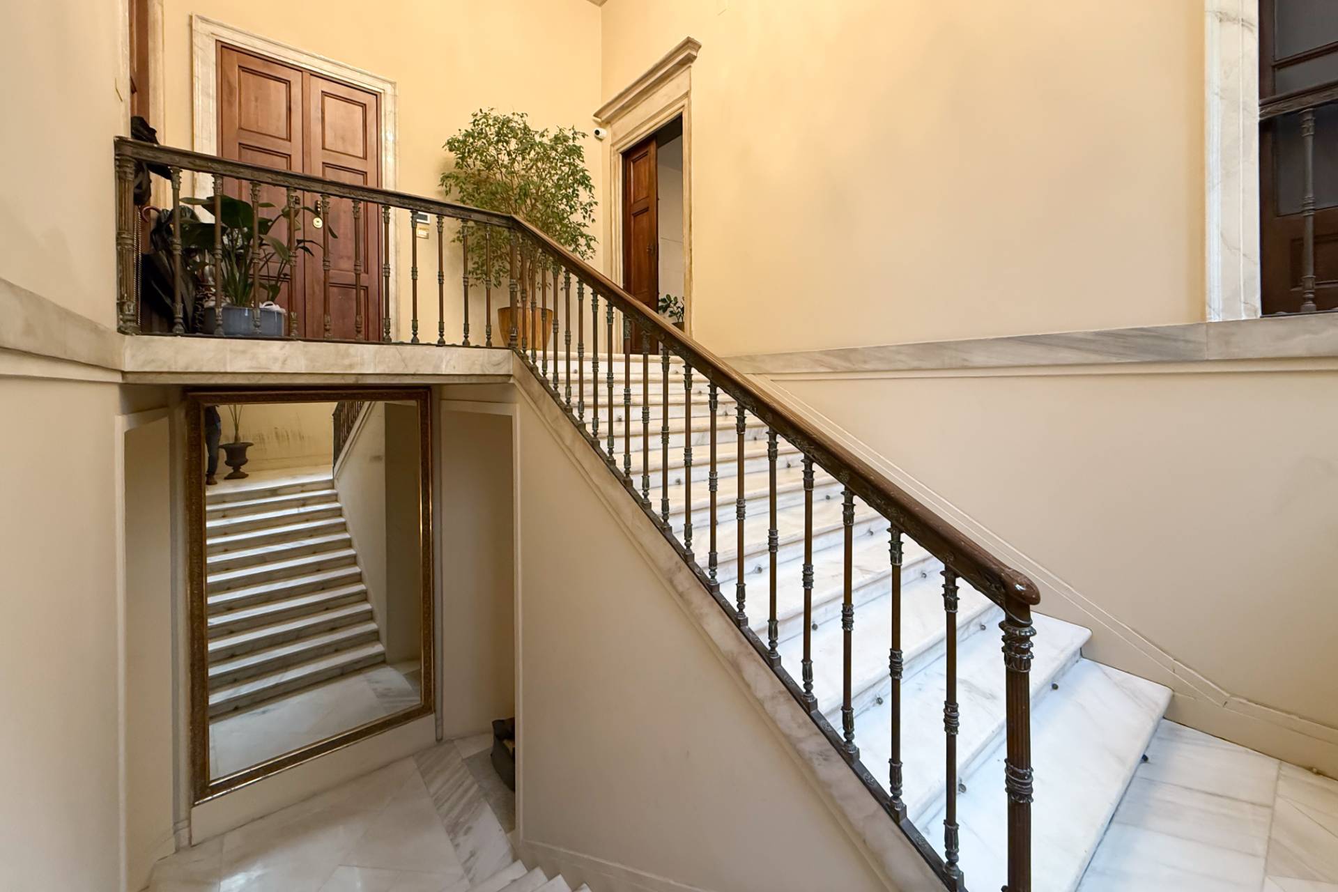 The apartment is accessed via a grand private marble staircase, embellished with period architectural details that lend grandeur and uniqueness to the entrance.