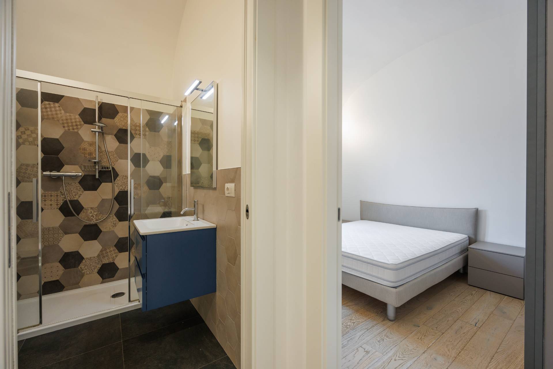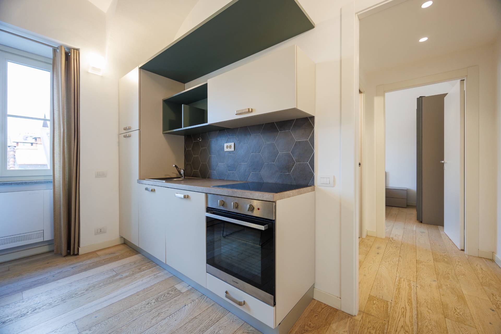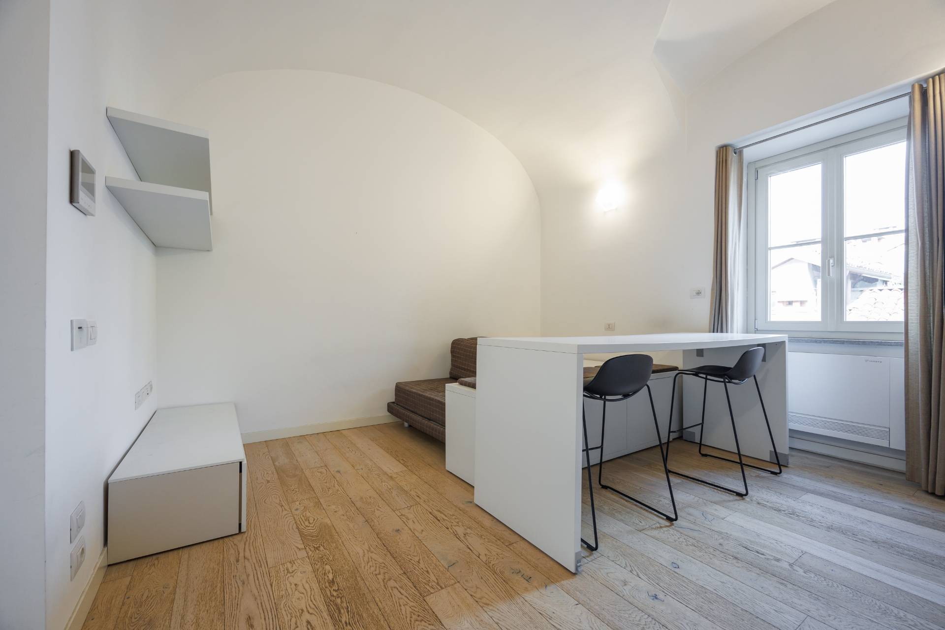 On Via delle Orfane, inside the "QUADRATO" condominium, a historic renovation of the Augustinian building, a bright, fully furnished two-room apartment on the fourth floor.