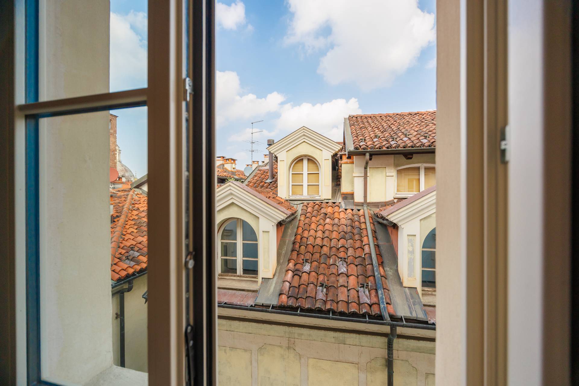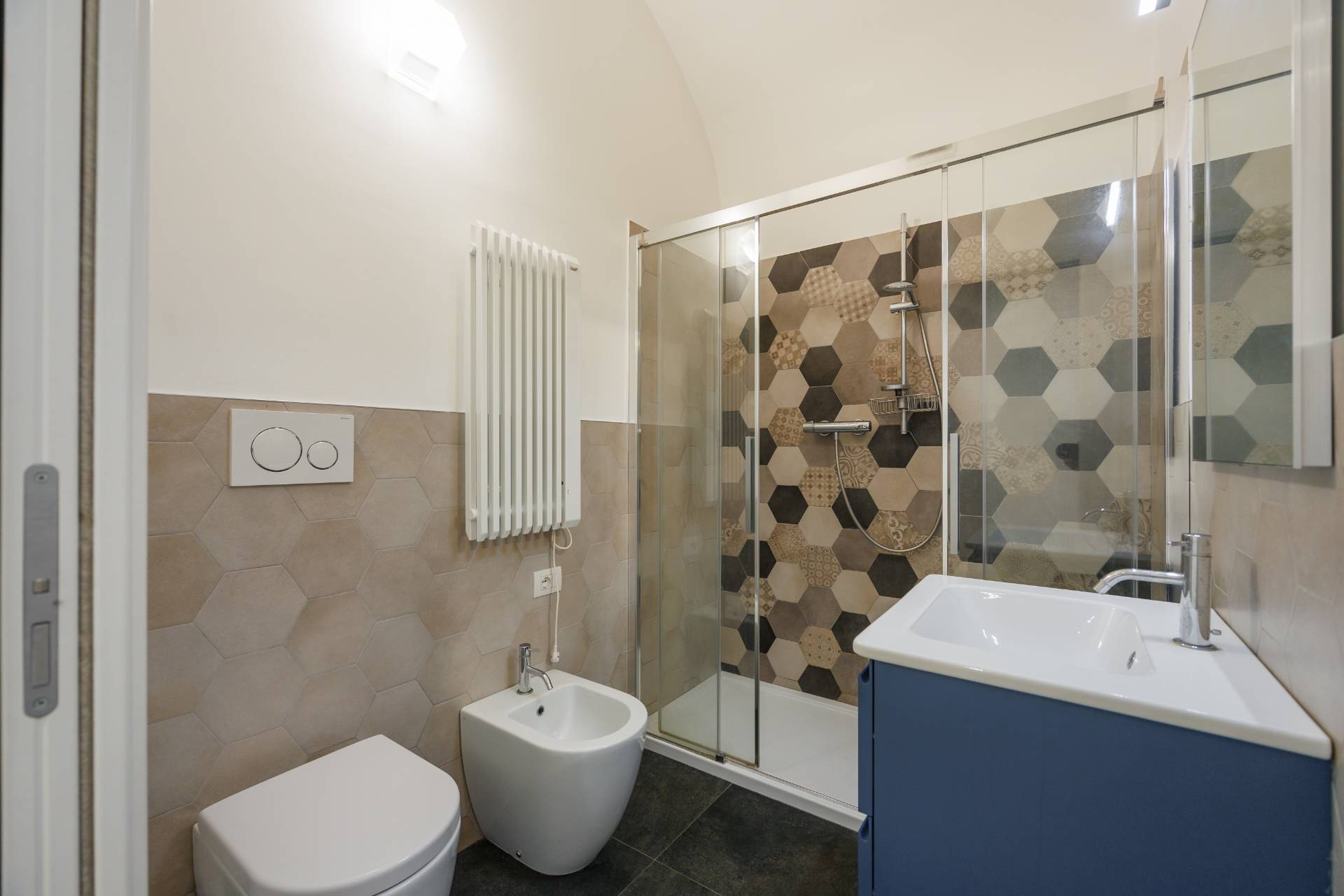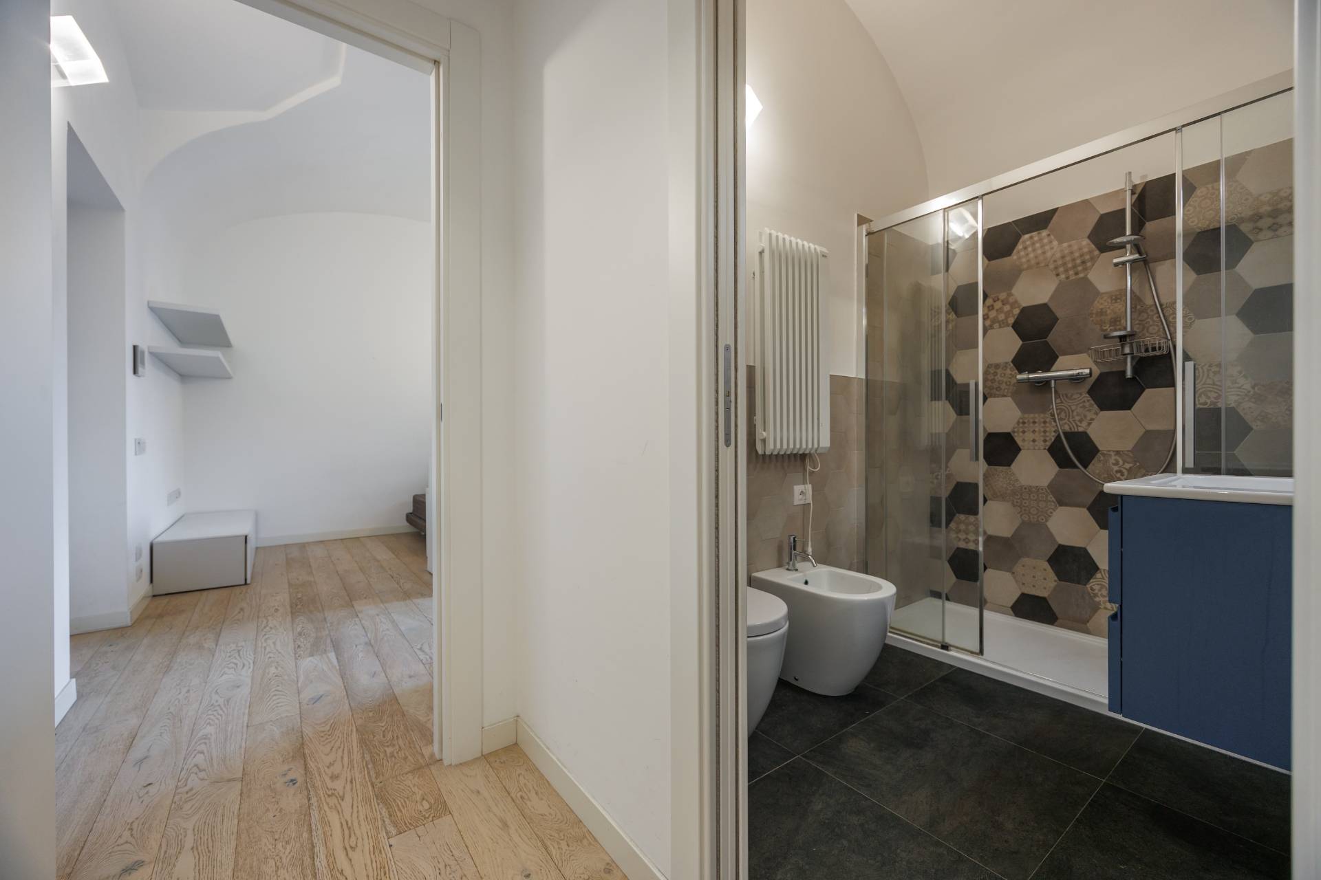 On Via delle Orfane, inside the "QUADRATO" condominium, a historic renovation of the Augustinian building, a bright, fully furnished two-room apartment on the fourth floor.