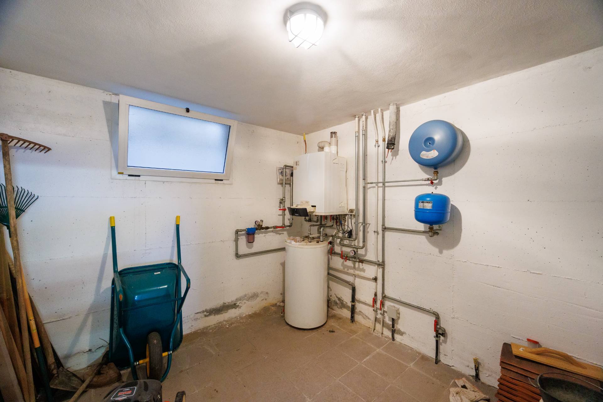 The house is equipped with independent methane heating with a boiler and water heater, a burglar alarm system, and separate thermostats for the living and sleeping areas, for efficient temperature management and security.