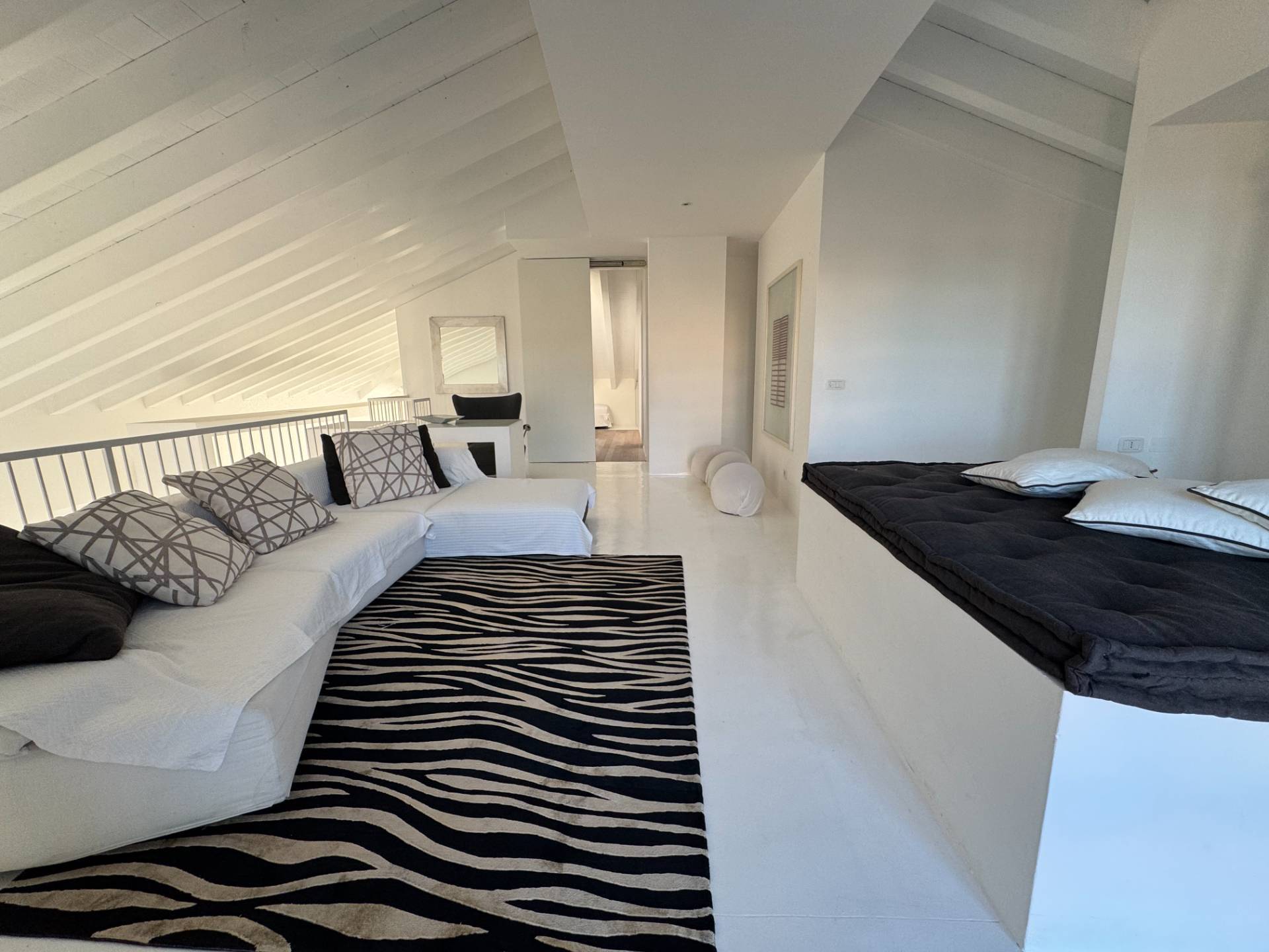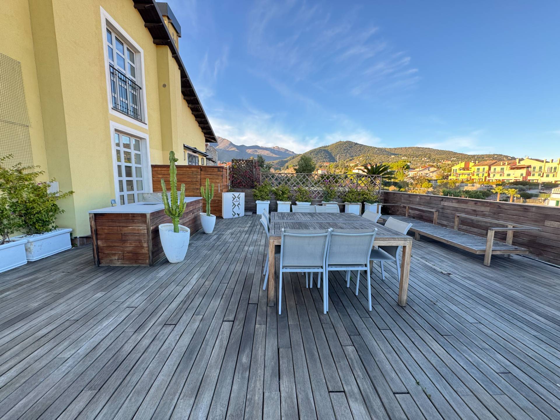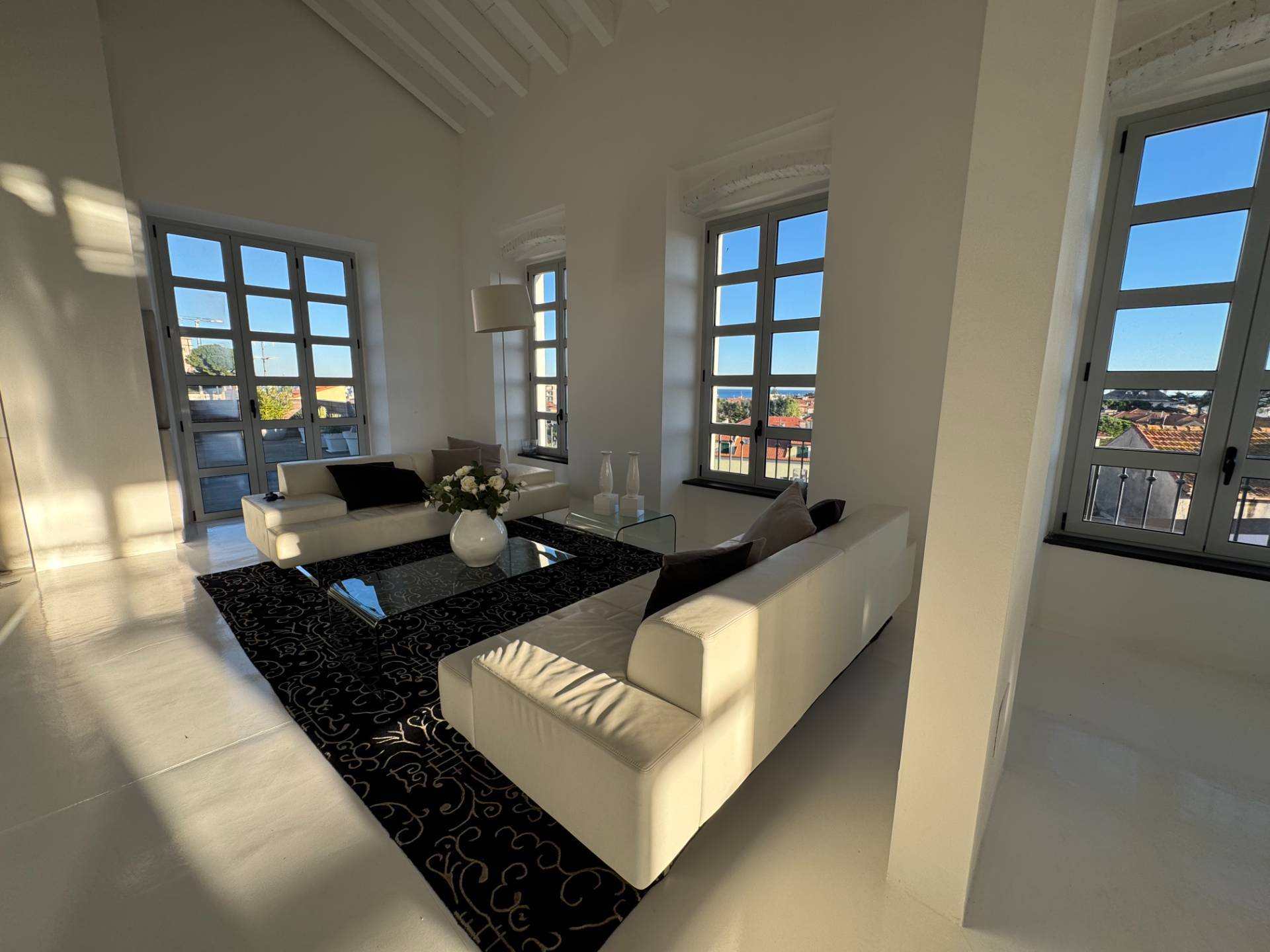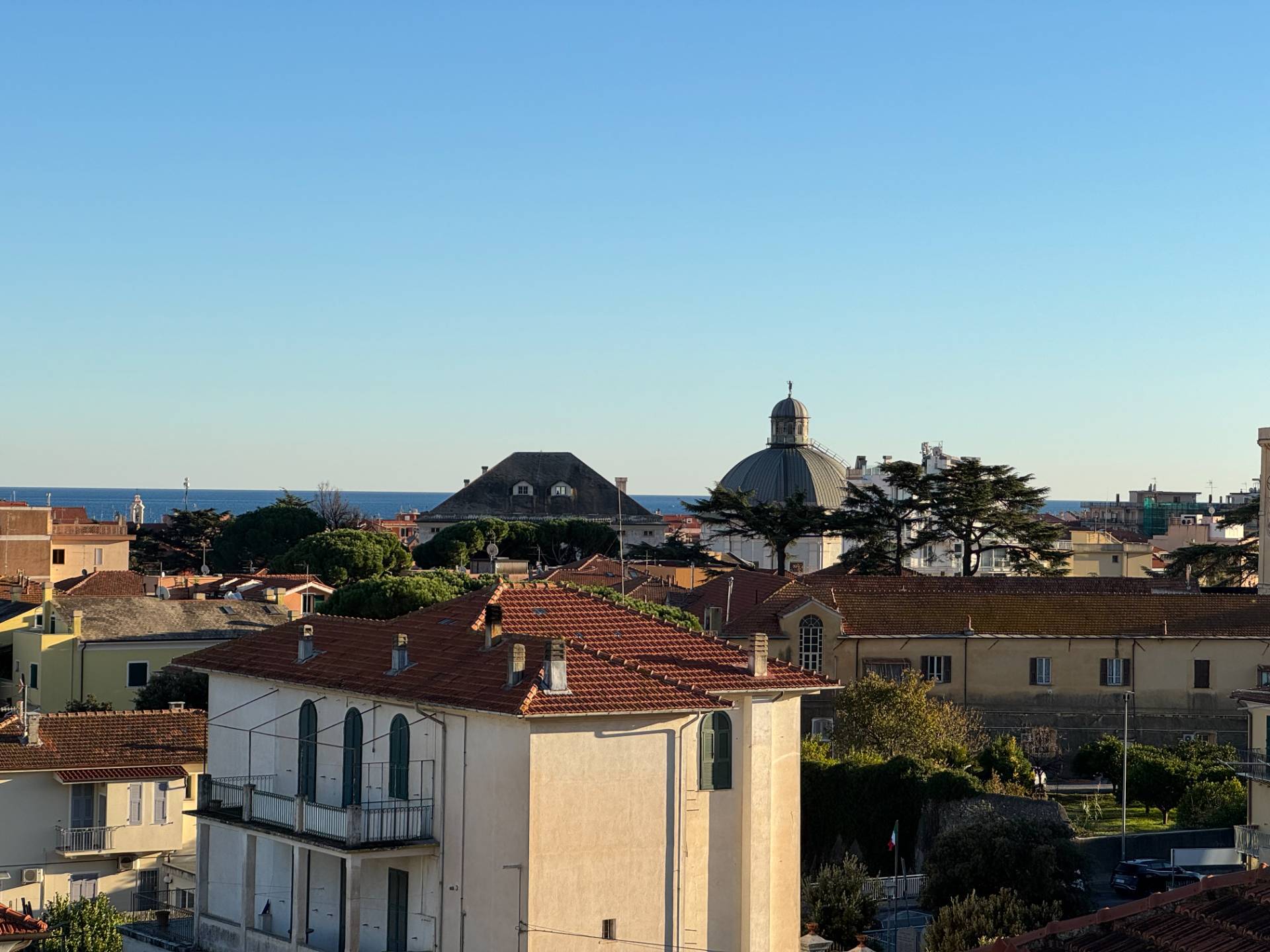 REF. 1755 - LUXURIOUS PENTHOUSE WITH TERRACE - In the beautiful and renowned town of Loano, this splendid, completely renovated two-level penthouse boasts a large terrace with sea views and two attached parking spaces. The unit has independent heating and air conditioning, two bathrooms, and a south-east/west exposure. The apartment comprises an entrance hall leading to a large living room with an open-plan kitchen and access to a large terrace and a bathroom on the first floor, while three double bedrooms and two bathrooms are located on the upper floor. Two private parking spaces are included in the price. The apartment has been completely renovated with quality materials, featuring resin flooring in the living area and parquet flooring in the bedrooms throughout, double-glazed PVC windows and doors, and a security door. Property Tax - €1,761.12.