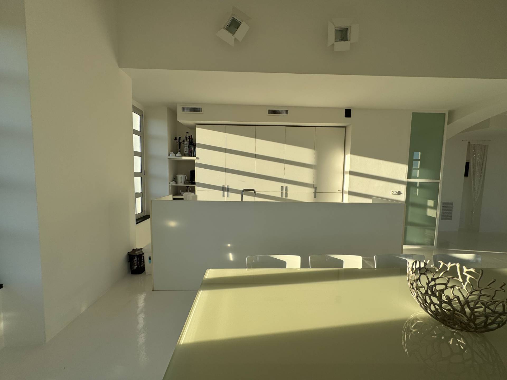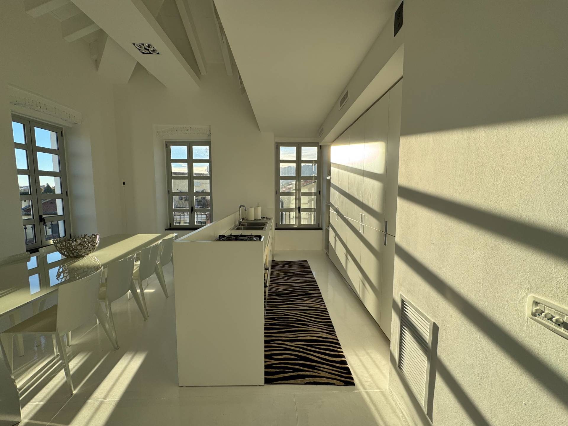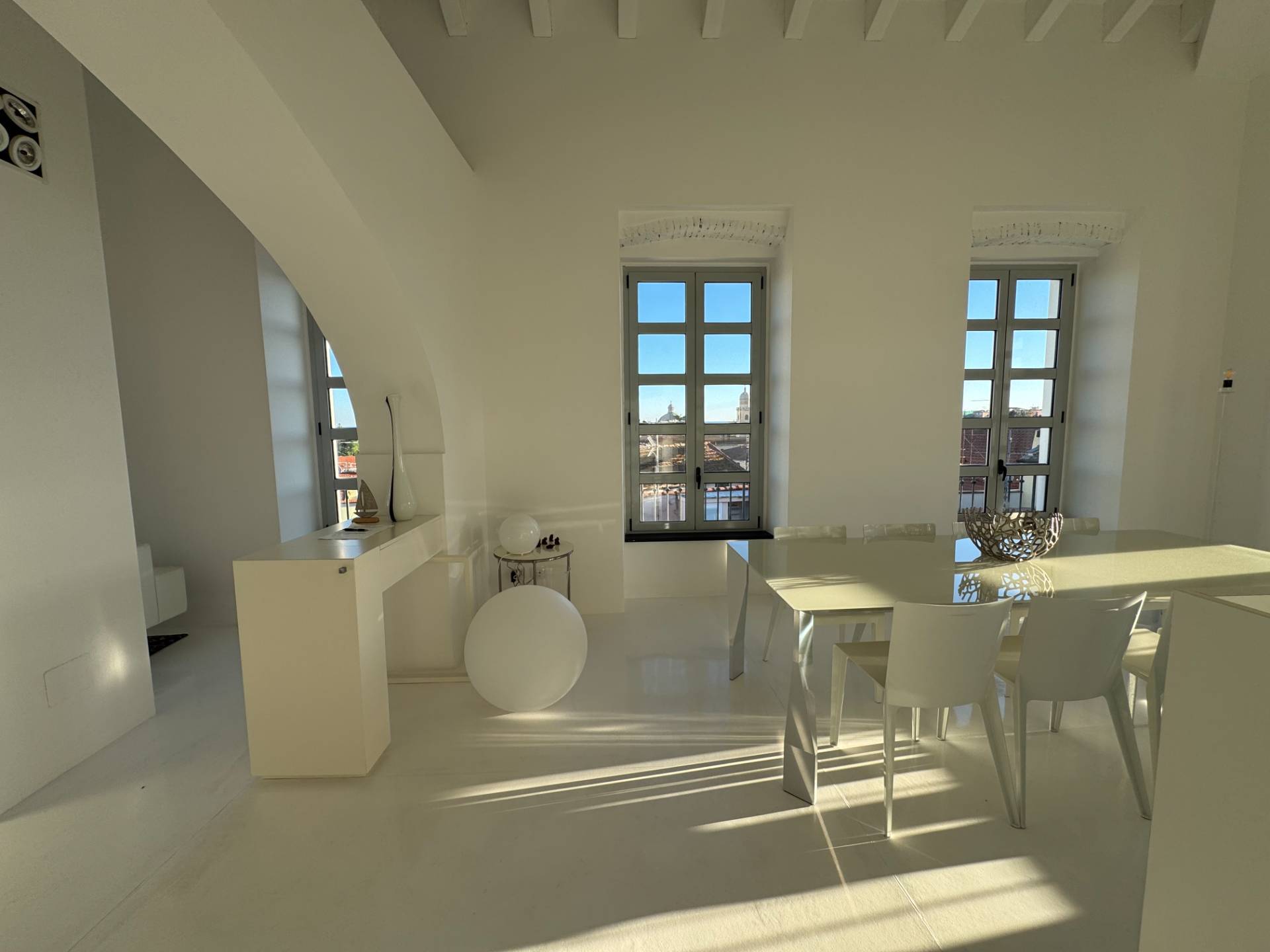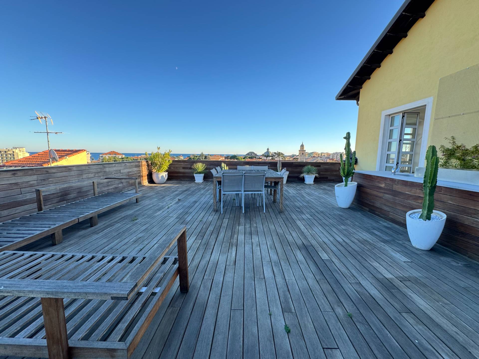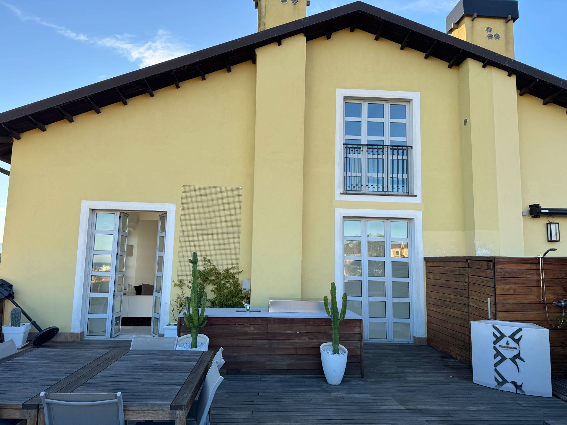REF. 1755 - LUXURIOUS PENTHOUSE WITH TERRACE - In the beautiful and renowned town of Loano, this splendid, completely renovated two-level penthouse boasts a large terrace with sea views and two attached parking spaces. The unit has independent heating and air conditioning, two bathrooms, and a south-east/west exposure. The apartment comprises an entrance hall leading to a large living room with an open-plan kitchen and access to a large terrace and a bathroom on the first floor, while three double bedrooms and two bathrooms are located on the upper floor. Two private parking spaces are included in the price. The apartment has been completely renovated with quality materials, featuring resin flooring in the living area and parquet flooring in the bedrooms throughout, double-glazed PVC windows and doors, and a security door. Property Tax - €1,761.12.