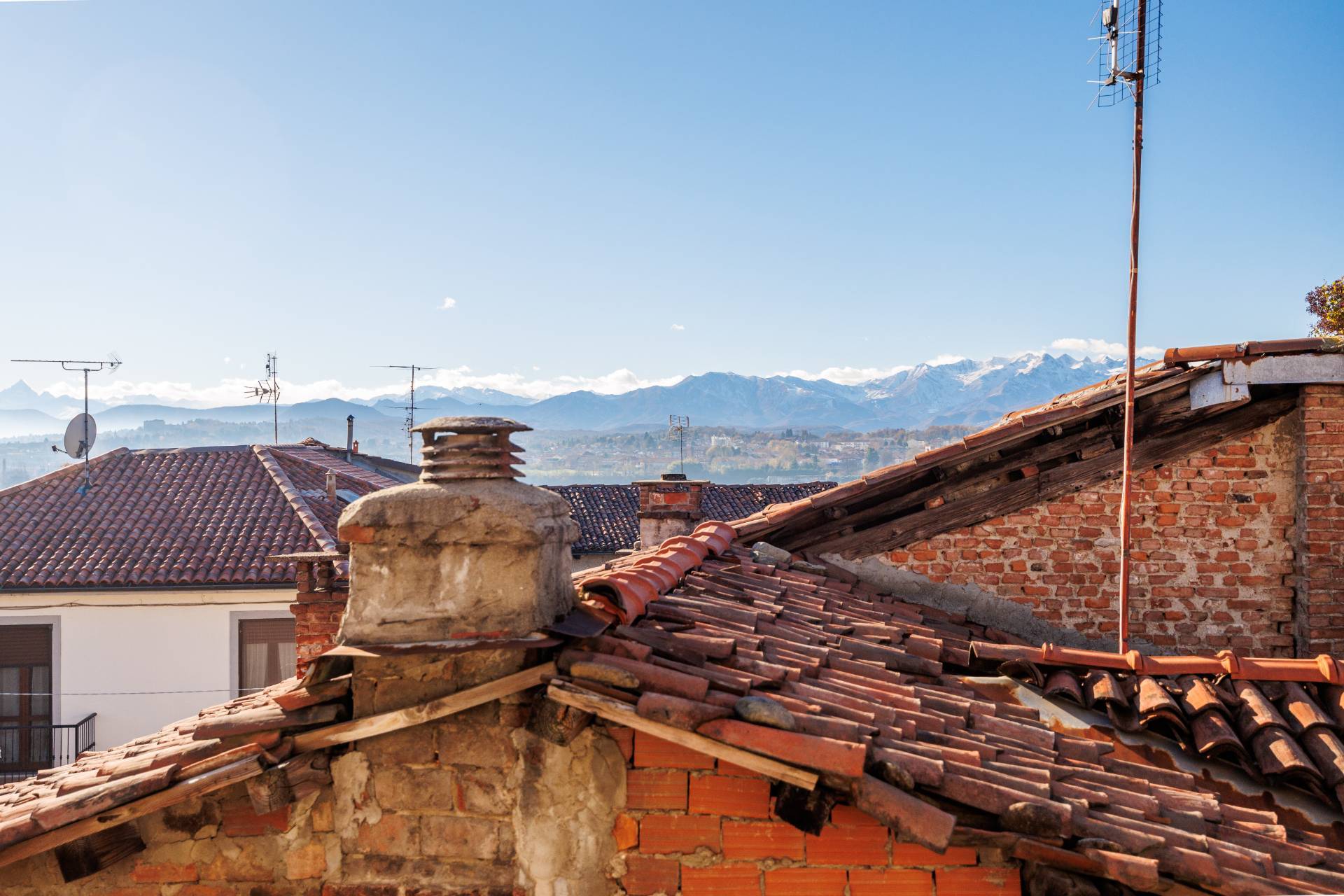 In the heart of Pianezza's historic center, we offer a detached house on three levels, featuring a splendid panoramic terrace with open views.