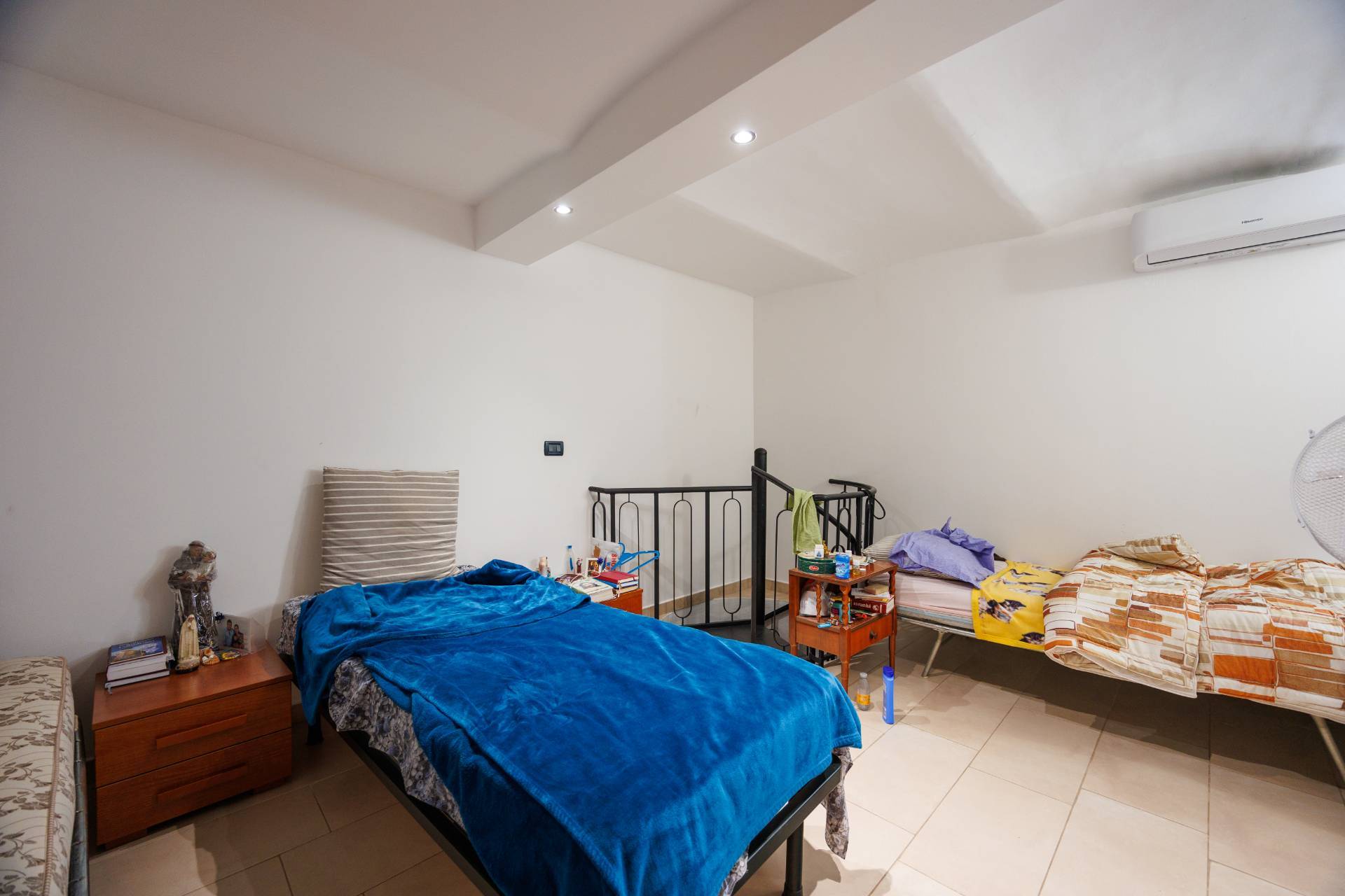 An internal staircase leads to the lower floors, where the two comfortable and private bedrooms are located.
