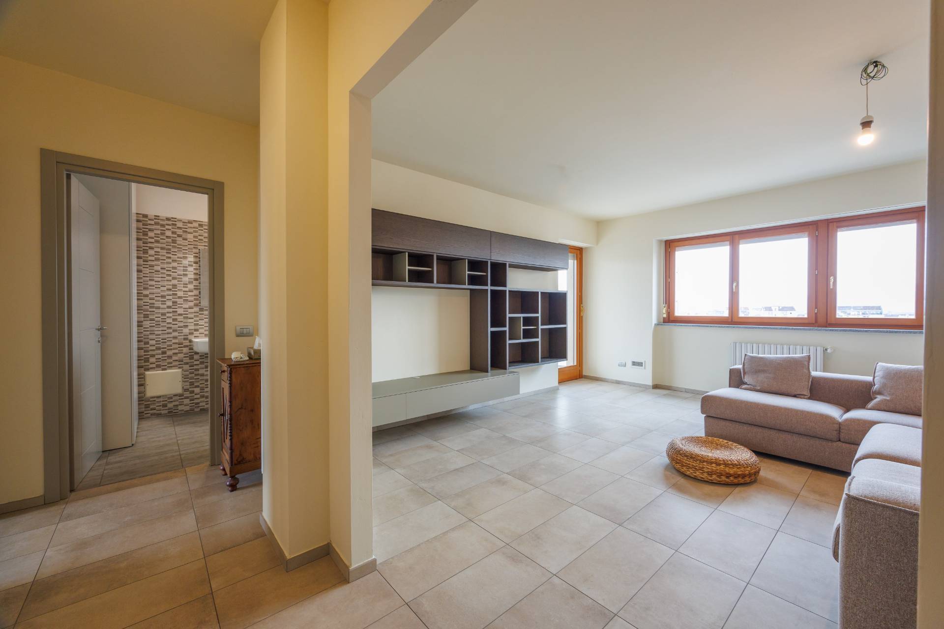 The Apartment is located in the Palazzo Fronte Piazza and comprises an entrance hall, a large living room with a terrace, an eat-in kitchen, a bedroom, and a bathroom with a window. A long balcony faces the kitchen. The property enjoys double exposure, overlooking the square and the internal courtyard.