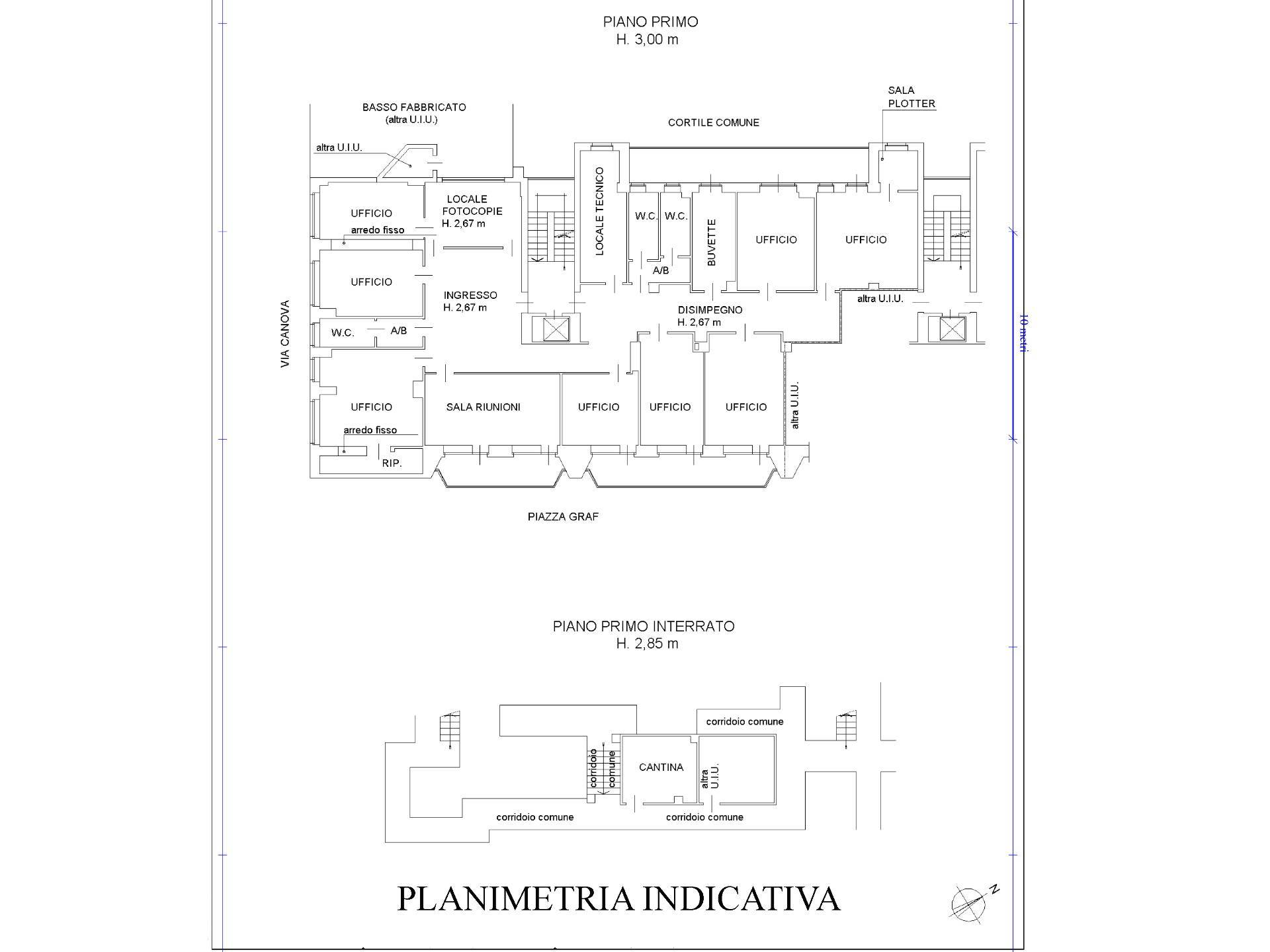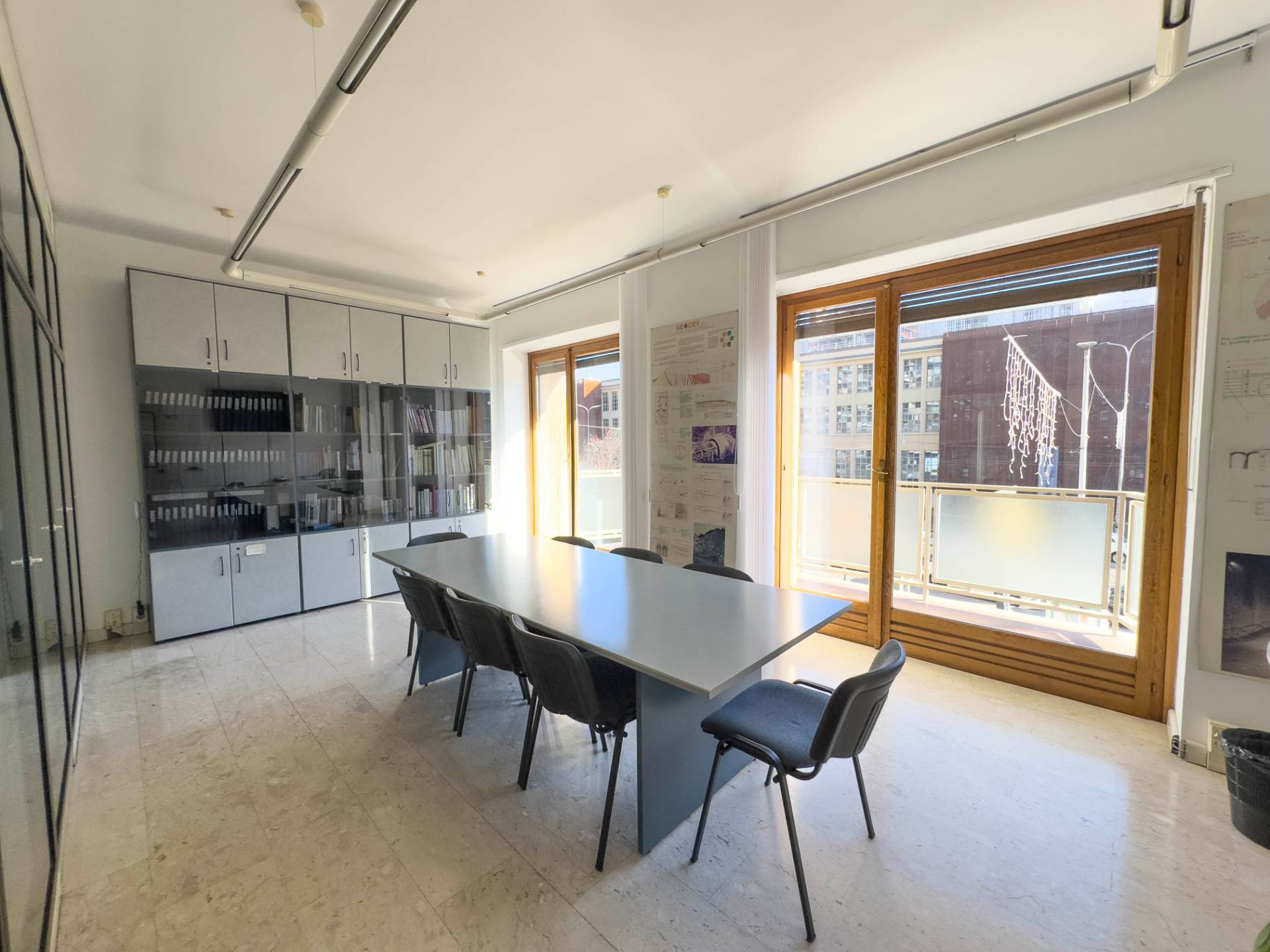 The property is in good condition and comprises: a large entrance hall with reception, a spacious meeting room, nine spacious and bright rooms, a comfortable lounge, three bathrooms with windows, a utility room, balconies overlooking both Piazza Graf and the internal courtyard, and a cellar. The property has two entrances and is equipped with central heating served by district heating and air conditioning.