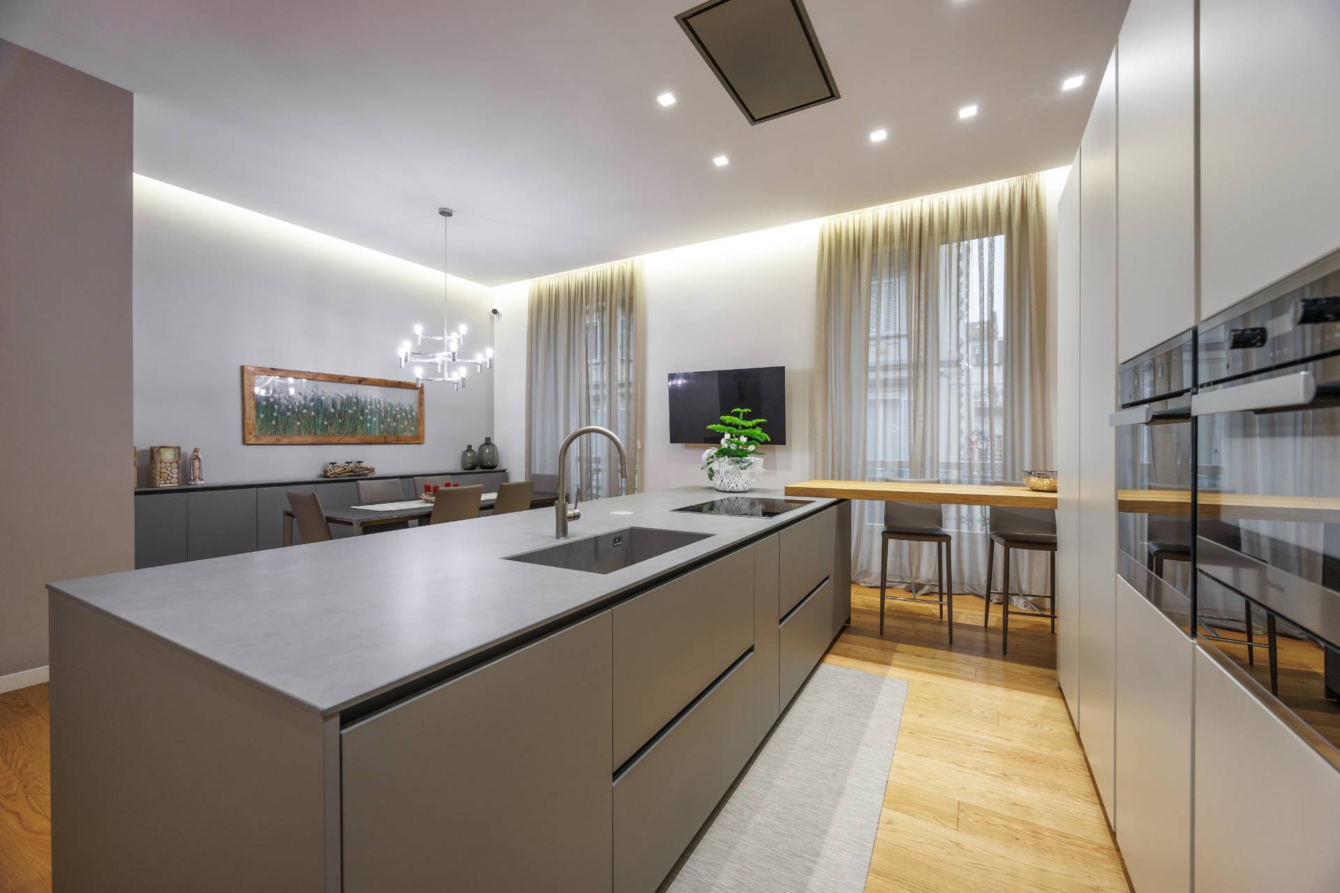 The property features a modern, low-temperature, independent underfloor heating system with condensing technology, a ducted air conditioning system that can be separated between the living and sleeping areas, state-of-the-art windows and shutters, and high-quality parquet flooring throughout (except for the bathrooms).