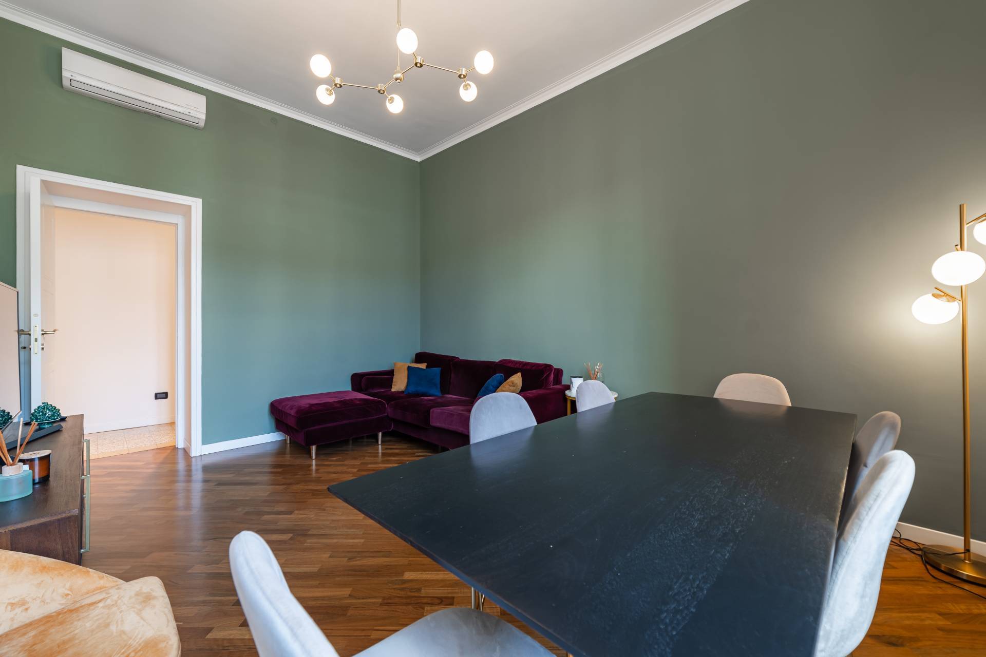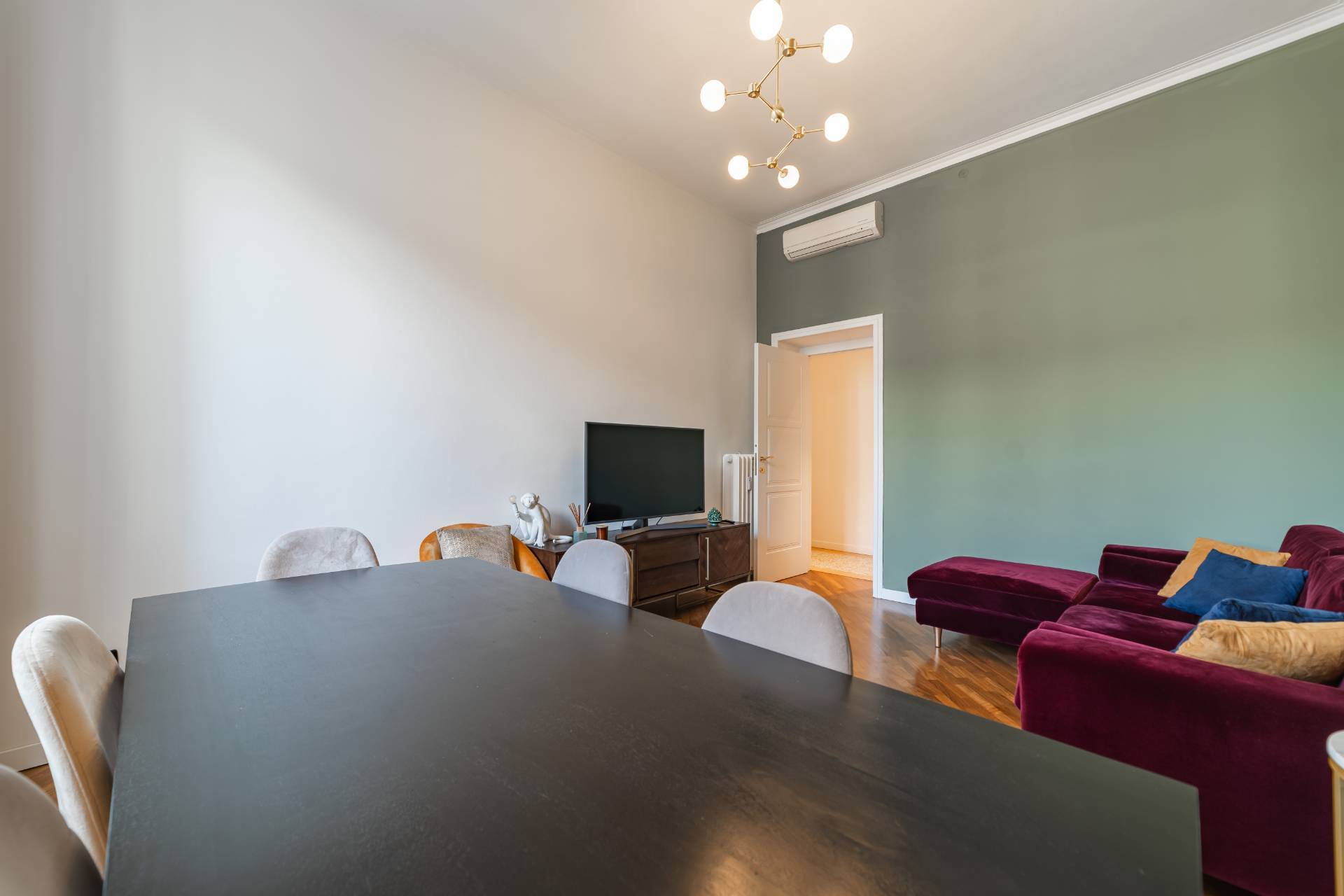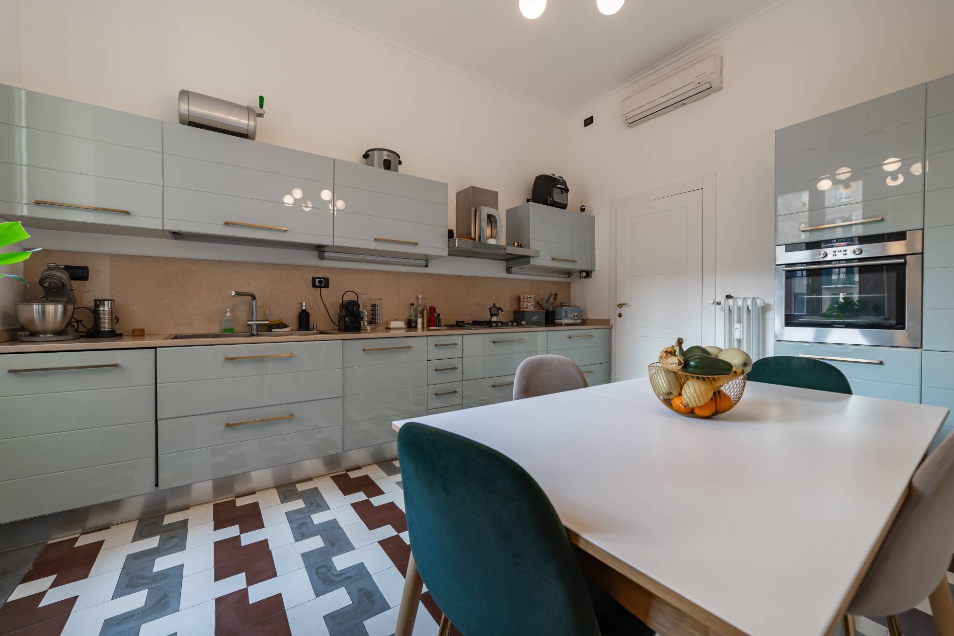 The apartment, which retains much of its original charm both in the layout of the rooms and in the finishes, has been recently renovated with quality materials and finishes.