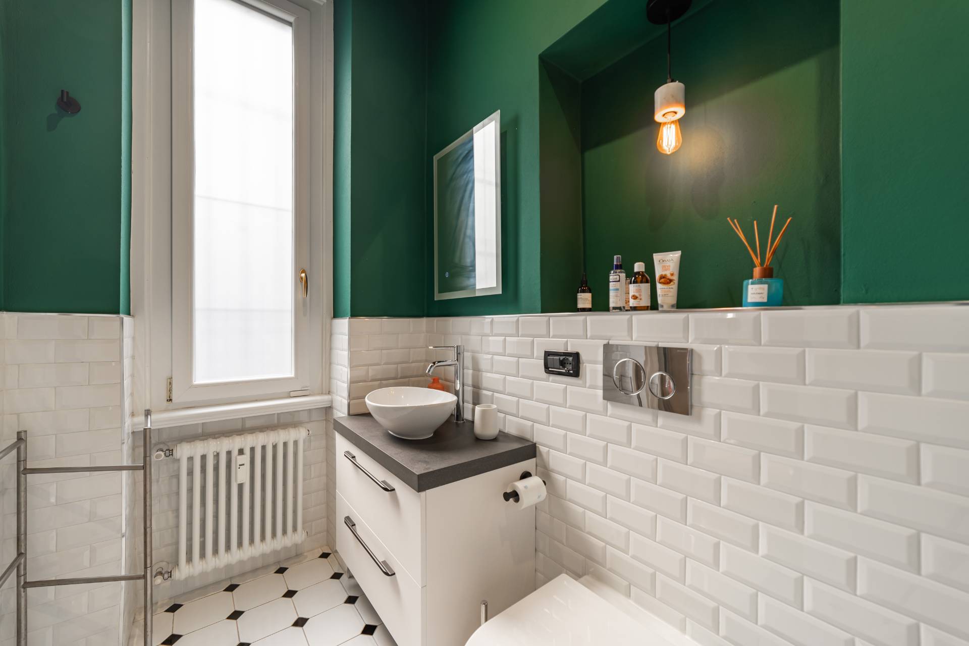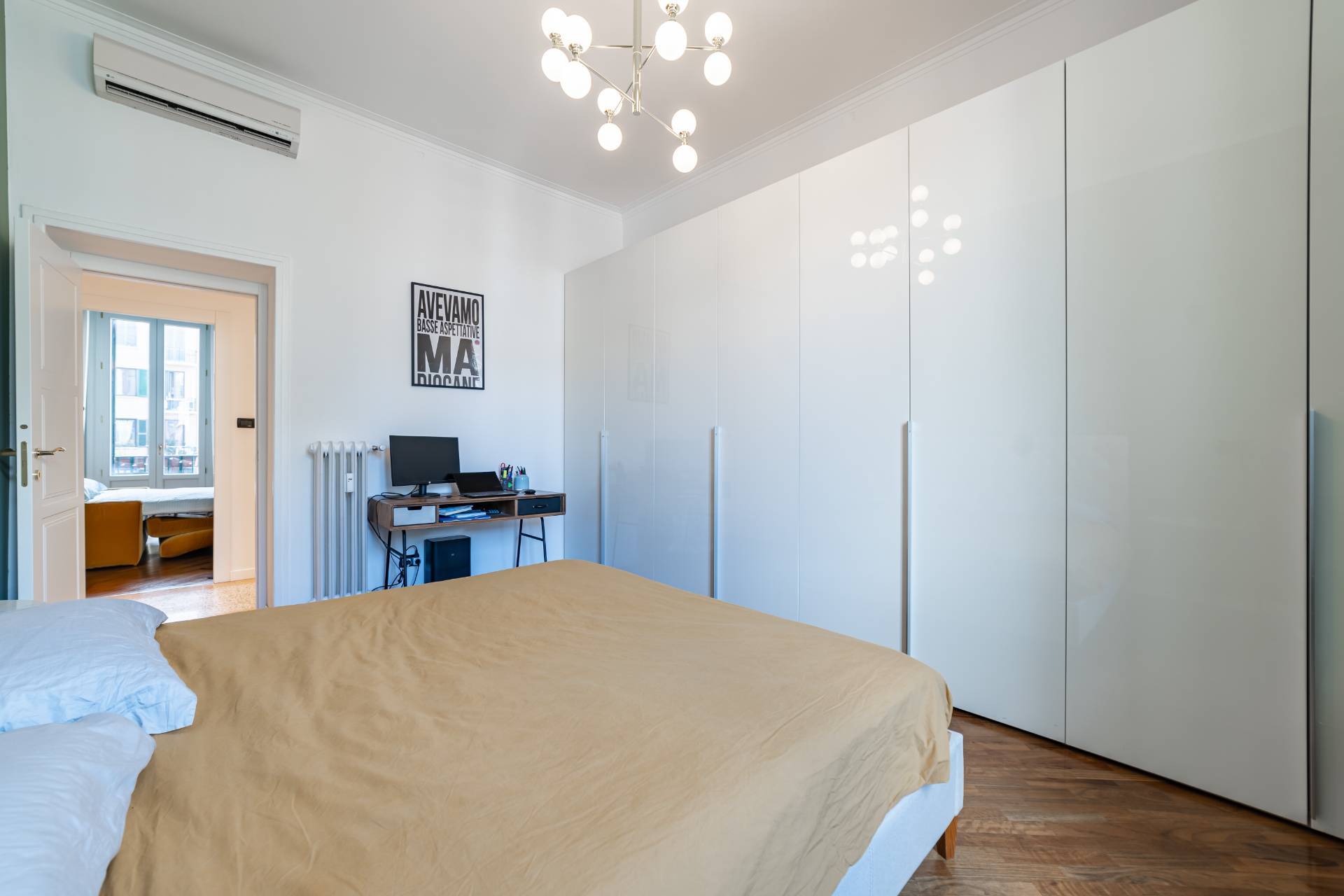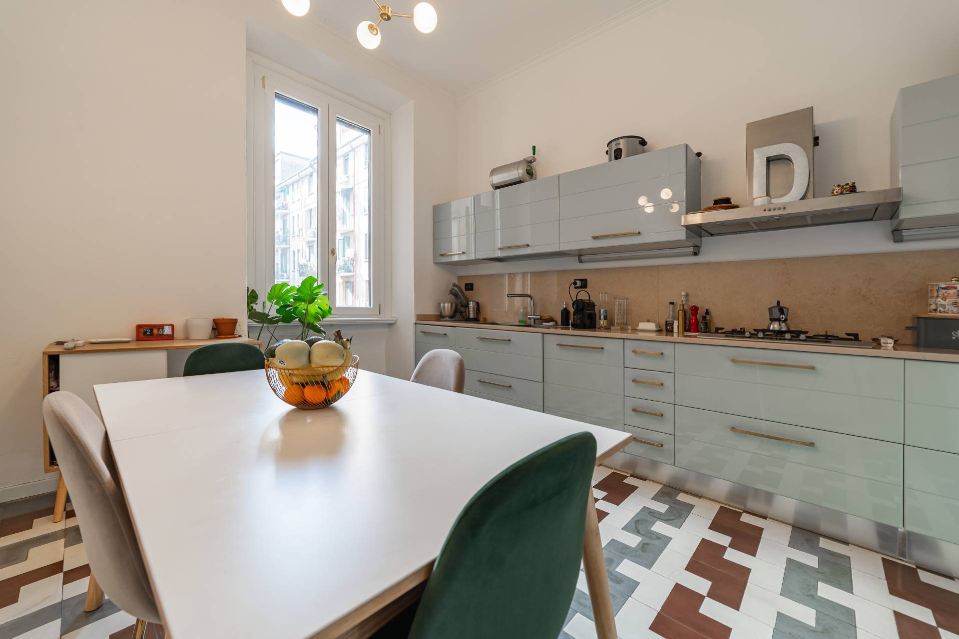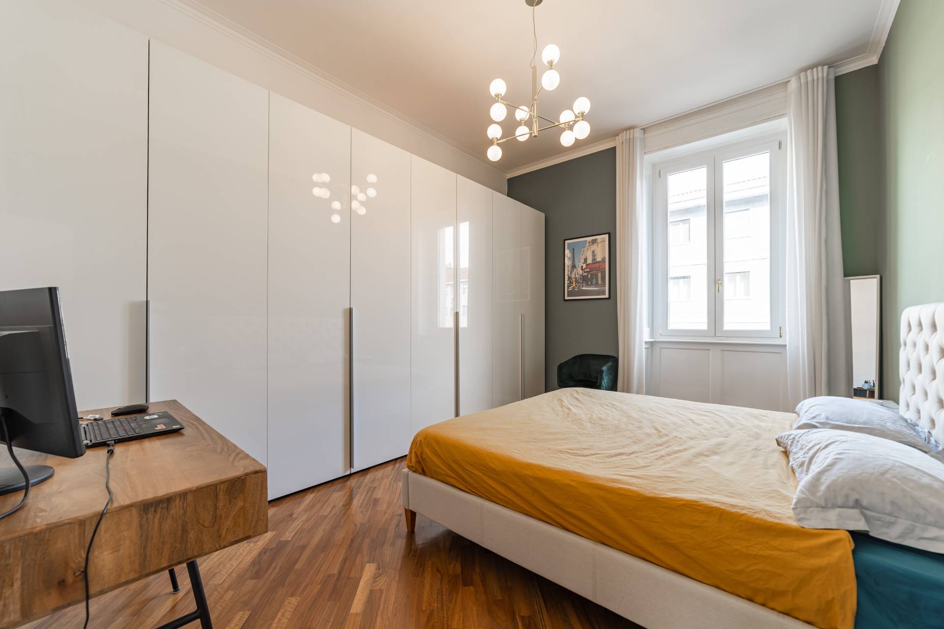 The apartment, which retains much of its original charm both in the layout of the rooms and in the finishes, has been recently renovated with quality materials and finishes.