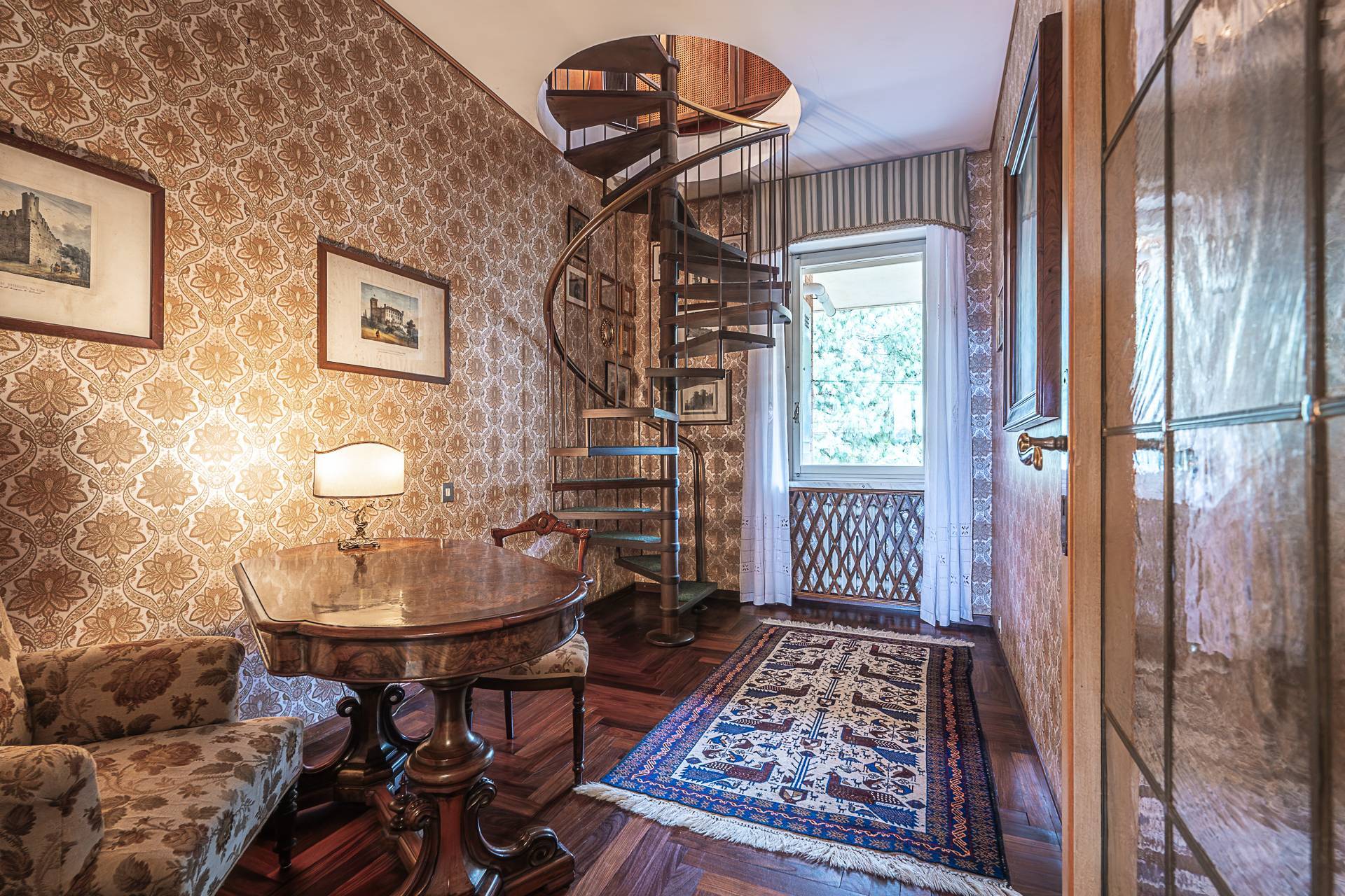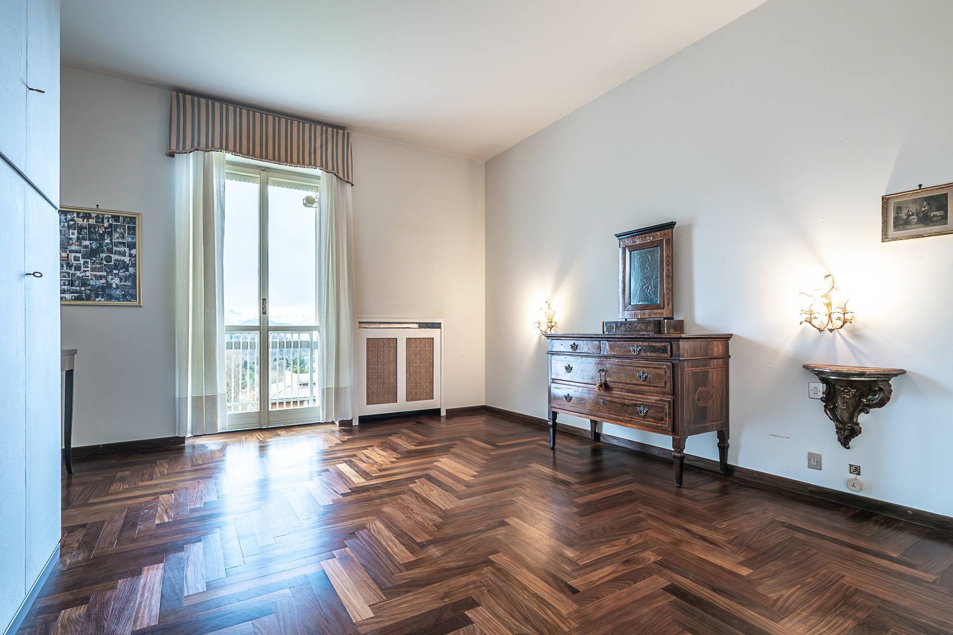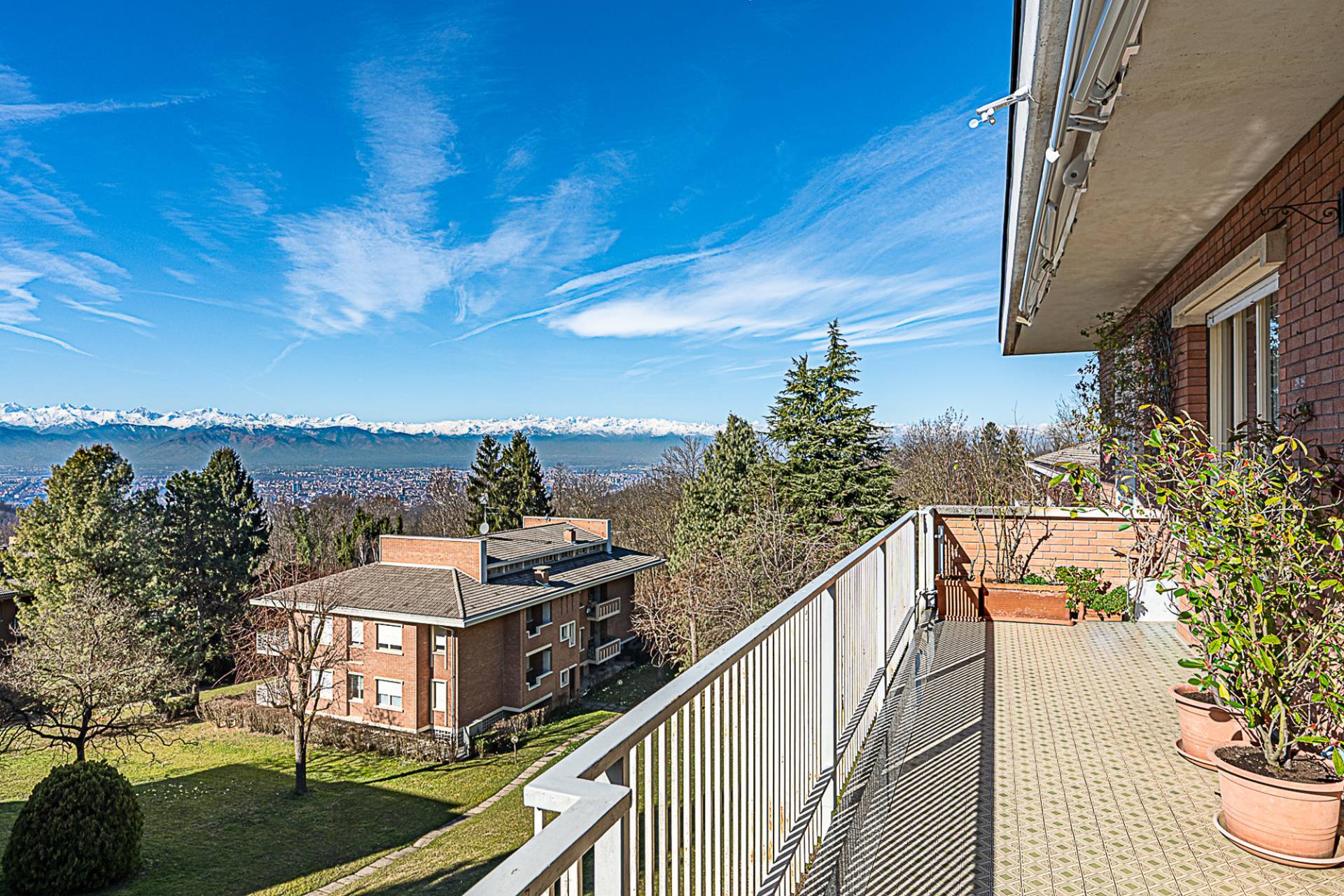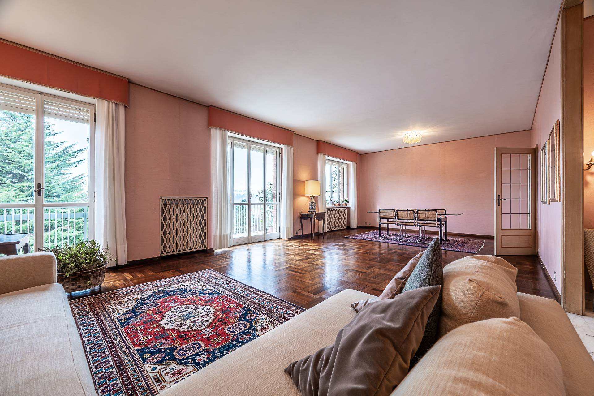 Just minutes from Piazza Crimea, this third and fourth-floor Apartment features a panoramic terrace and a garage. The third floor comprises an entrance hall, a double living room, three bedrooms, a single bedroom, an eat-in kitchen, two bathrooms with windows, a laundry room, and a closet. The fourth floor (the top floor of the building), connected by an internal staircase and with independent access from the stairs, comprises a large living area with a fireplace, a bedroom with split Ariston air conditioning, and a bathroom with a window. The unit has three entrances, enjoys triple exposure, a balcony, and a terrace with splendid views of Turin and the Alps. The terrace is equipped with motorized awnings. The living area and bedrooms feature original parquet flooring with a wax finish. An alarm system is installed. The property also includes a cellar, a large storage room (with windows and heating), and a double garage (included in the Sale price). The property is surrounded by 15,000 square meters of parkland and includes a large shared green area. The building, equipped with a lift and secured by a concierge, is in good general condition and is convenient to the stop for urban lines 70 and 64. Category A/1, 11 rooms, cadastral income €3,777.88. Downgrading to Category A/2 is possible following subdivision.