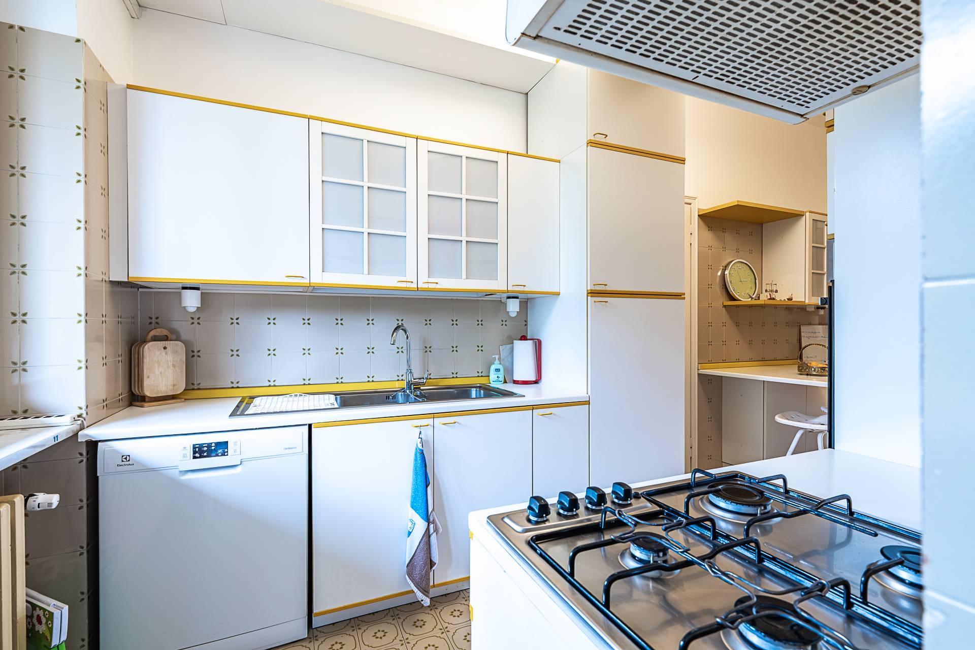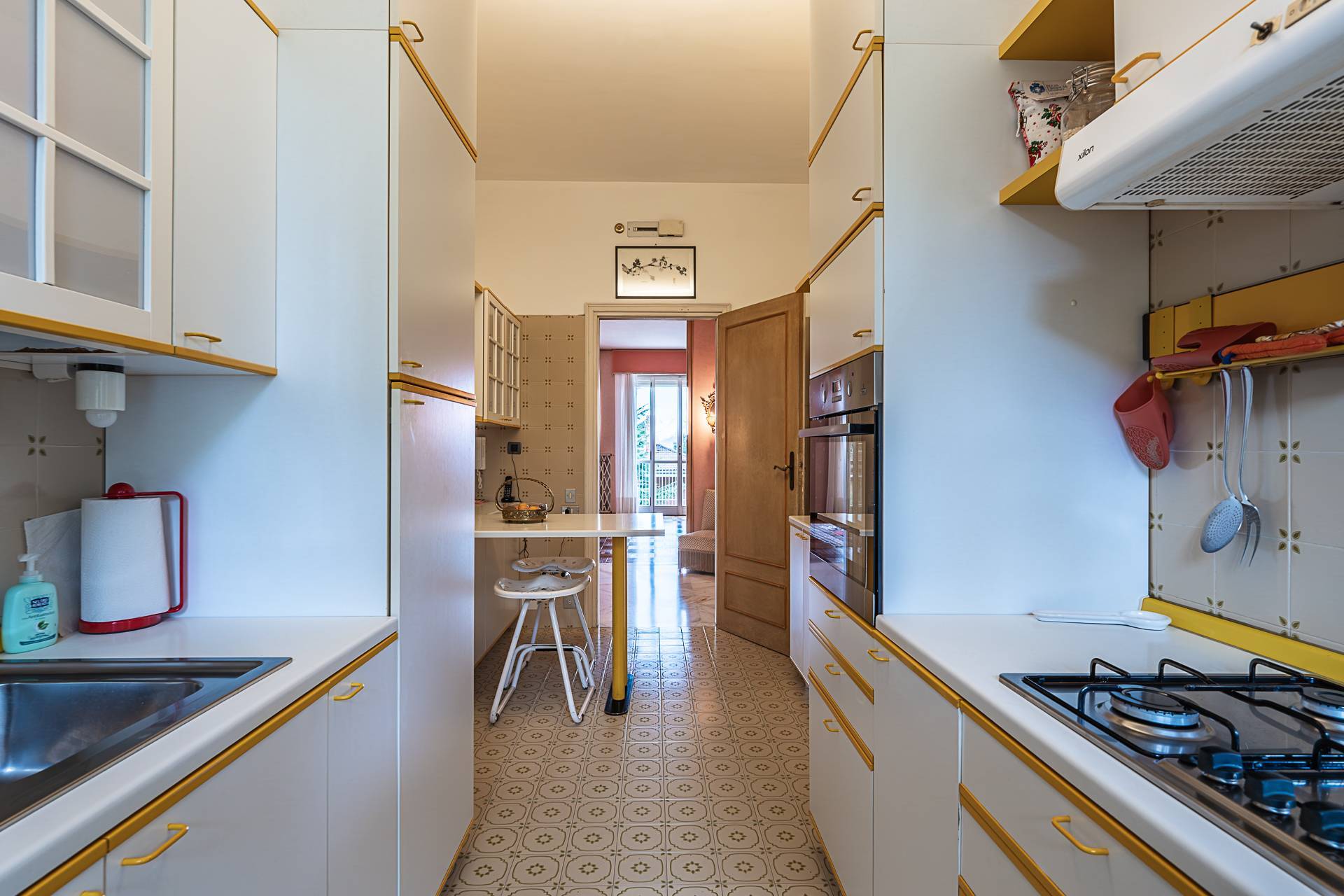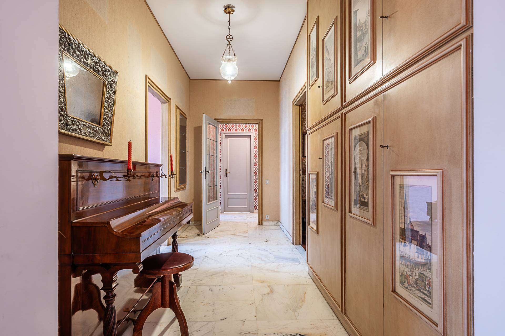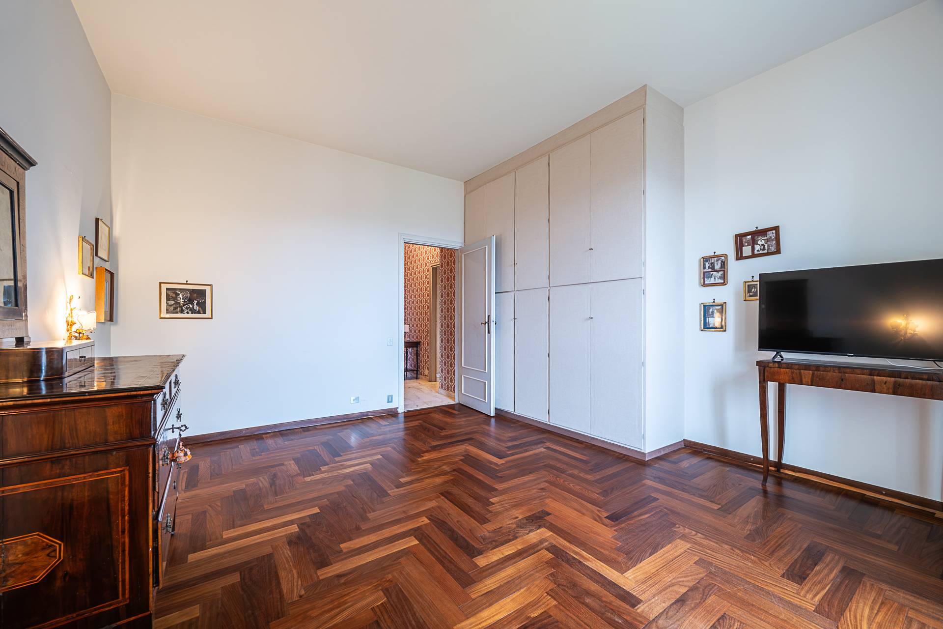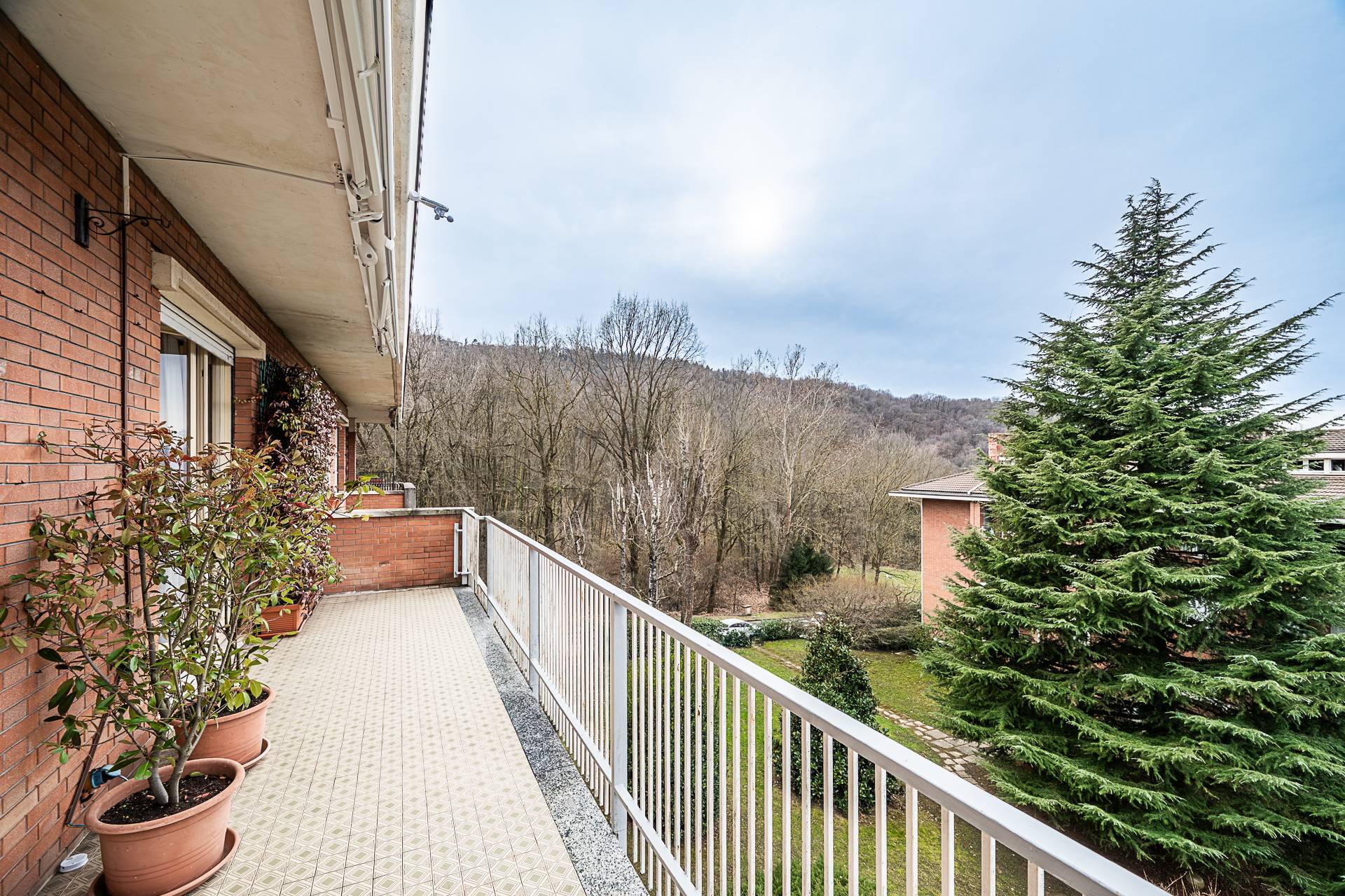 Just minutes from Piazza Crimea, this third and fourth-floor Apartment features a panoramic terrace and a garage. The third floor comprises an entrance hall, a double living room, three bedrooms, a single bedroom, an eat-in kitchen, two bathrooms with windows, a laundry room, and a closet. The fourth floor (the top floor of the building), connected by an internal staircase and with independent access from the stairs, comprises a large living area with a fireplace, a bedroom with split Ariston air conditioning, and a bathroom with a window. The unit has three entrances, enjoys triple exposure, a balcony, and a terrace with splendid views of Turin and the Alps. The terrace is equipped with motorized awnings. The living area and bedrooms feature original parquet flooring with a wax finish. An alarm system is installed. The property also includes a cellar, a large storage room (with windows and heating), and a double garage (included in the Sale price). The property is surrounded by 15,000 square meters of parkland and includes a large shared green area. The building, equipped with a lift and secured by a concierge, is in good general condition and is convenient to the stop for urban lines 70 and 64. Category A/1, 11 rooms, cadastral income €3,777.88. Downgrading to Category A/2 is possible following subdivision.