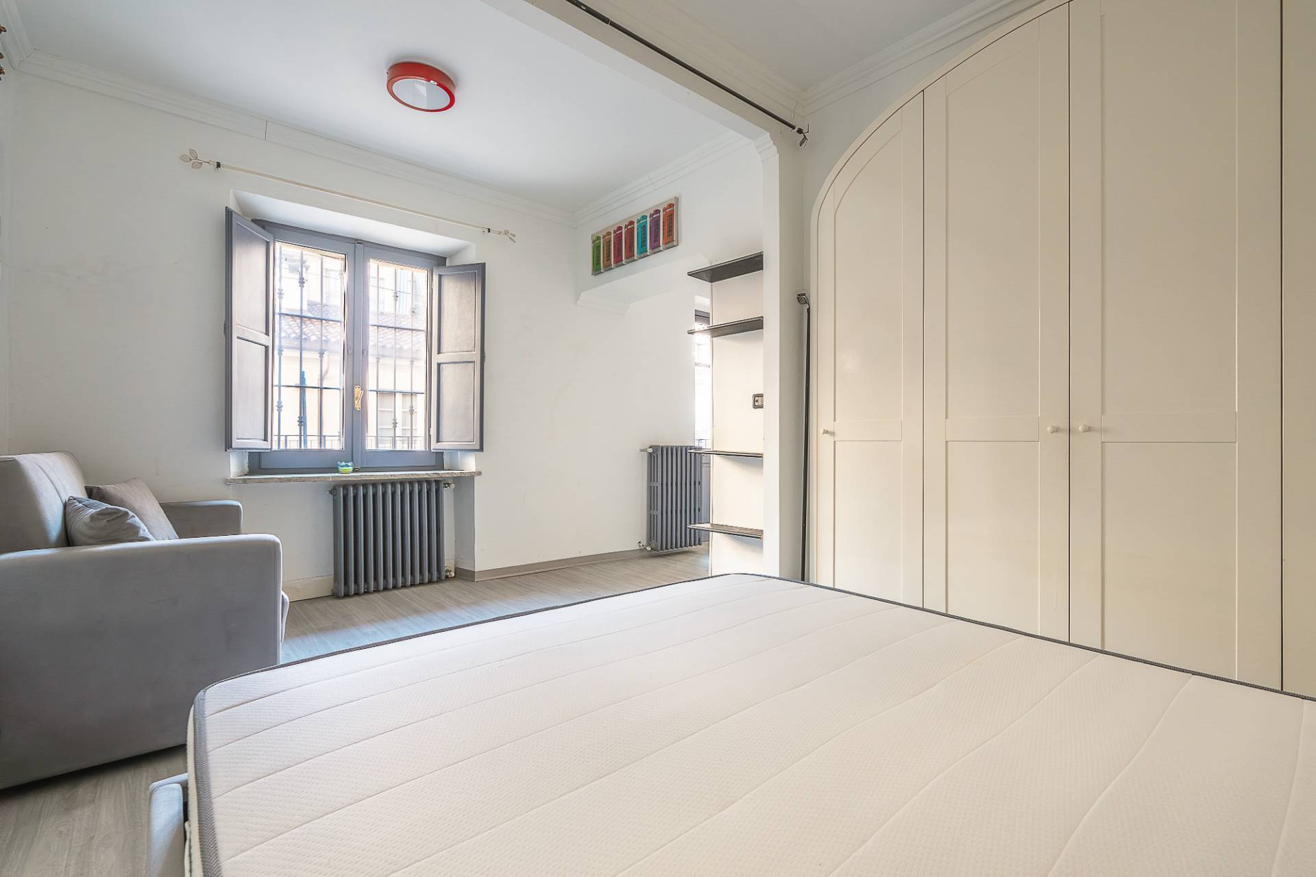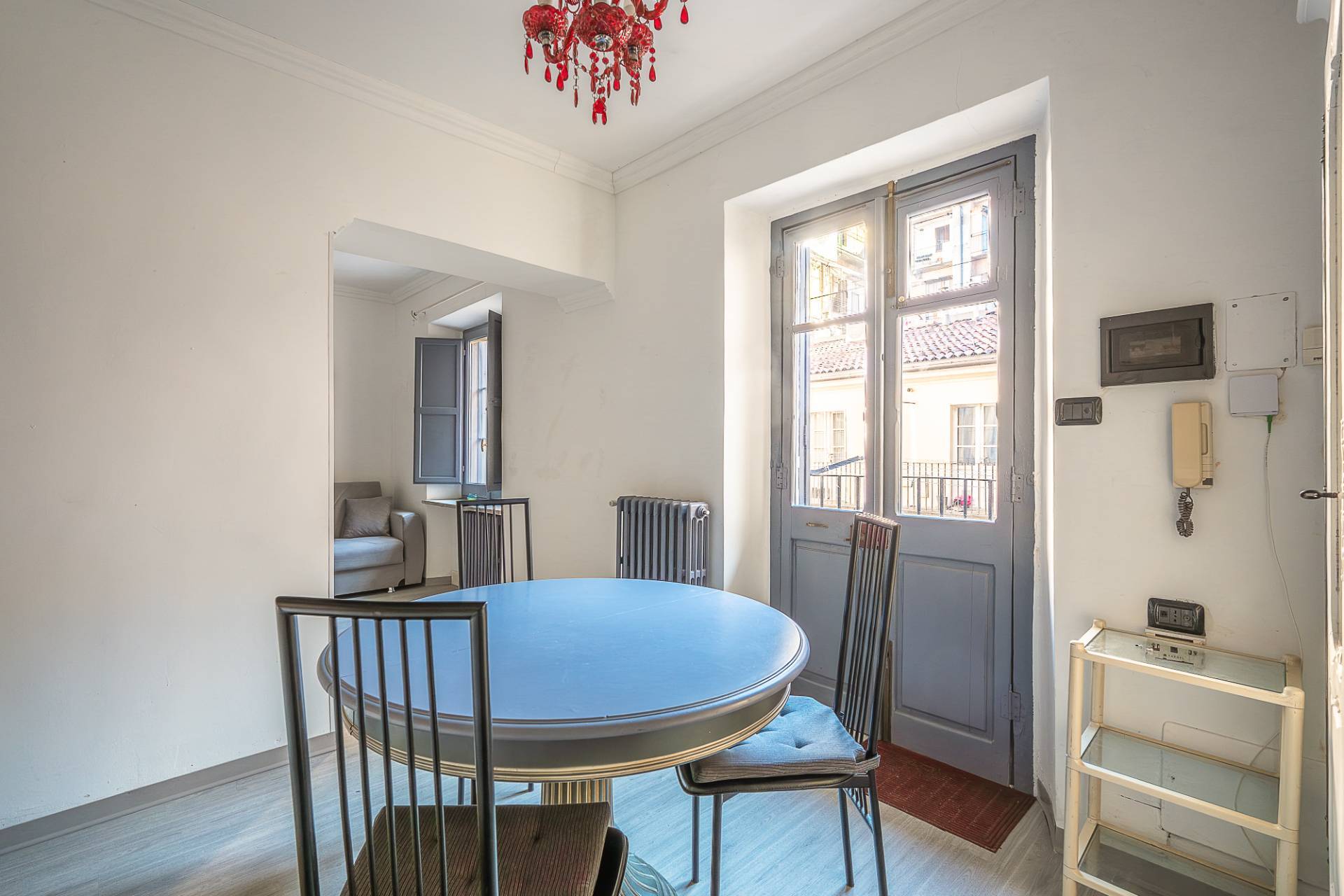 1 On the corner of the lively Piazza Emanuele Filiberto, the heart of the Quadrilatero neighborhood, filled with restaurants and boasting a Parisian charm, a finely renovated and furnished studio Apartment is for Sale, perfect as an investment opportunity.