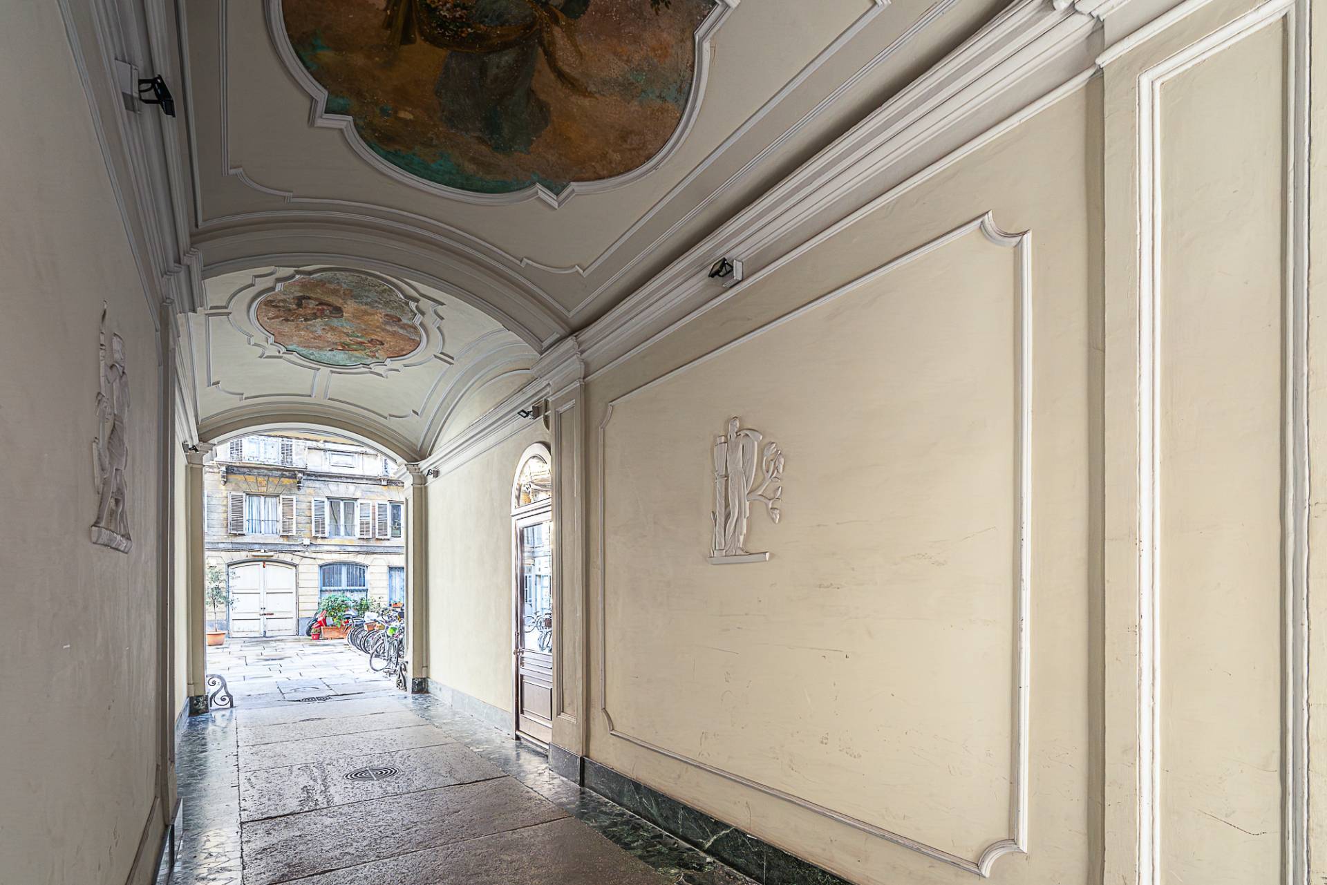 1 On the corner of Largo Saluzzo, in a historic building with a magnificent doorway and frescoed entrance hall, a furnished two-room Apartment in excellent condition is for Sale.