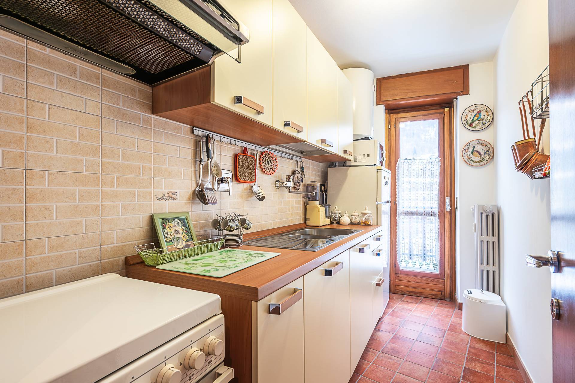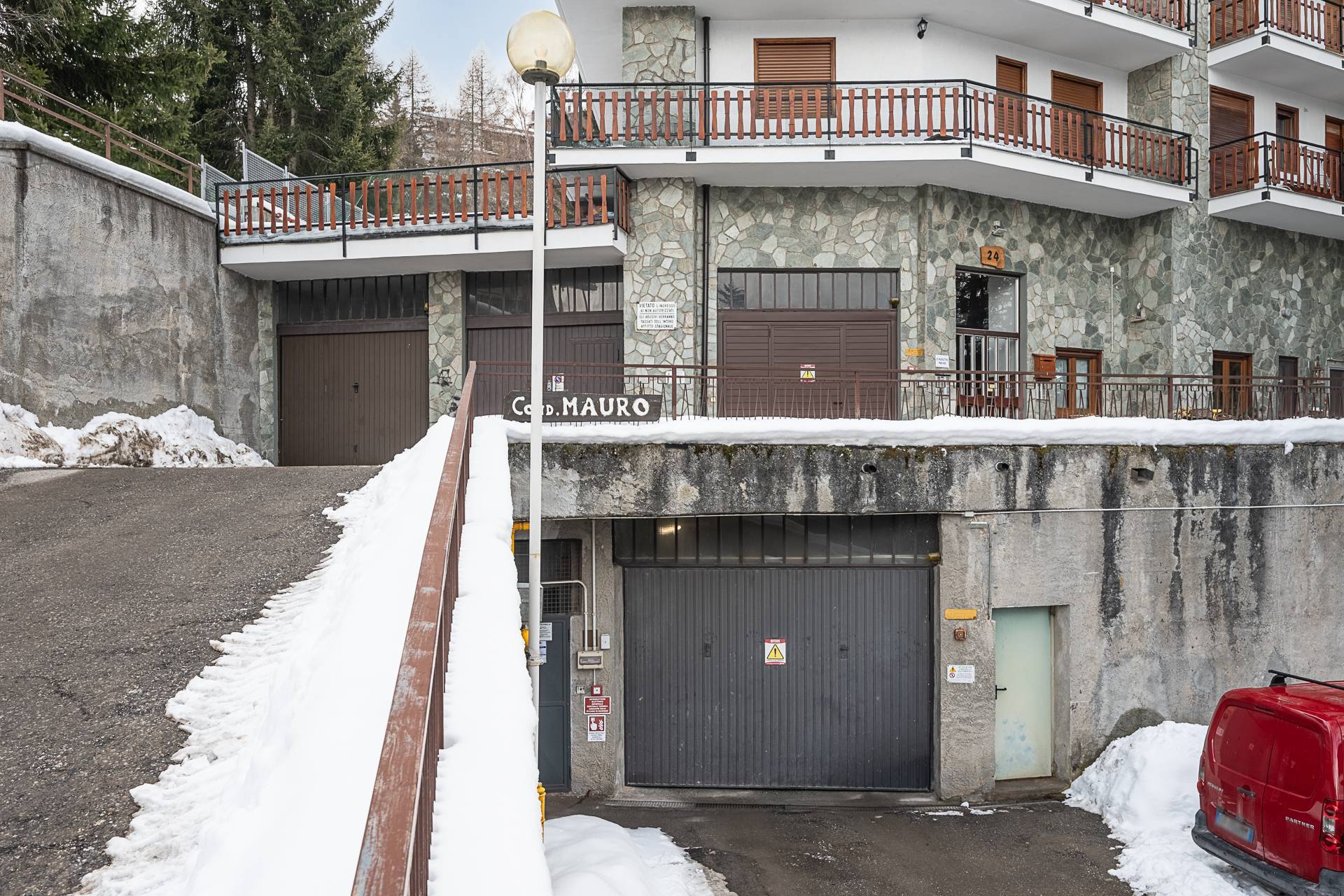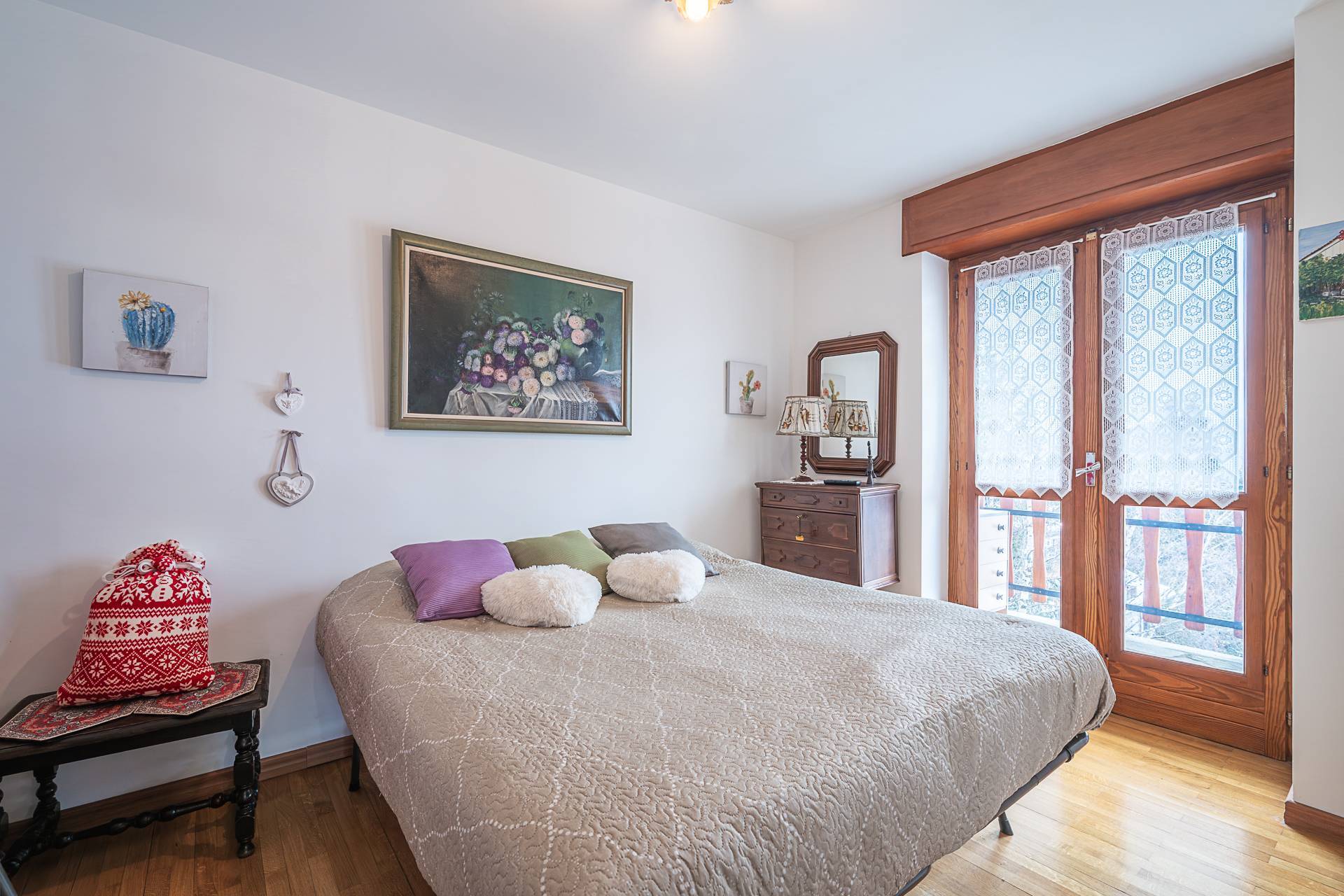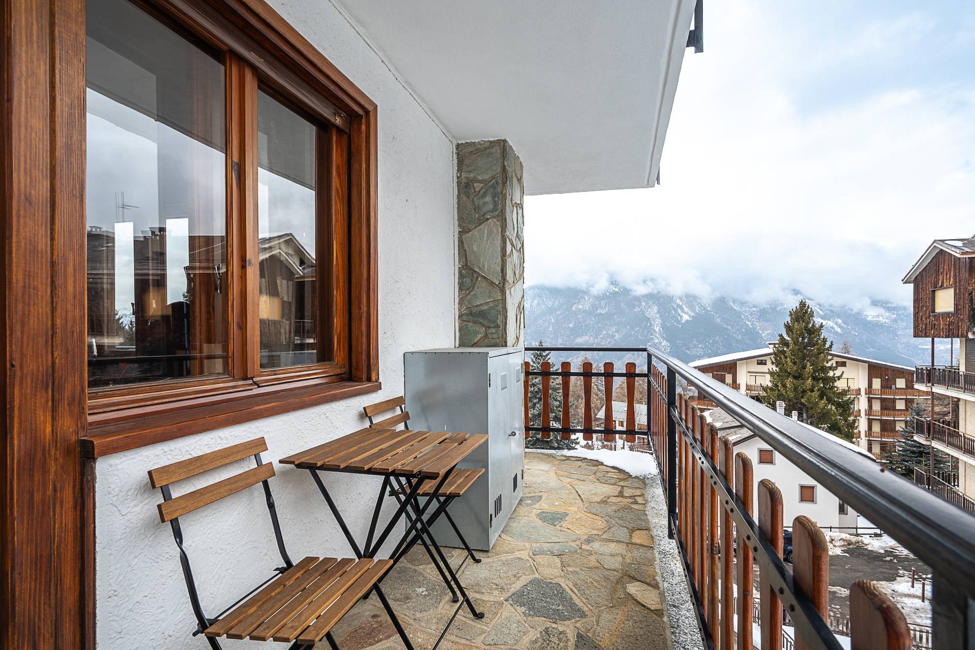 Entrance hall, living room, kitchenette, double bedroom, and bathroom. All rooms open onto a large balcony with mountain views, and enjoy exceptional brightness. The property is in excellent condition and can be lived in year-round. The building's facade was redone in 2018/19 and is immaculately clean and tidy. A concierge service is available 24/7. Central heating is provided with thermostatic valves, and the shared boiler was recently replaced. Parking is available outside in the courtyard adjacent to the building; spaces are free and unassigned. A large garage on the lower ground floor, accessible by elevator, completes the offer for €35,000.