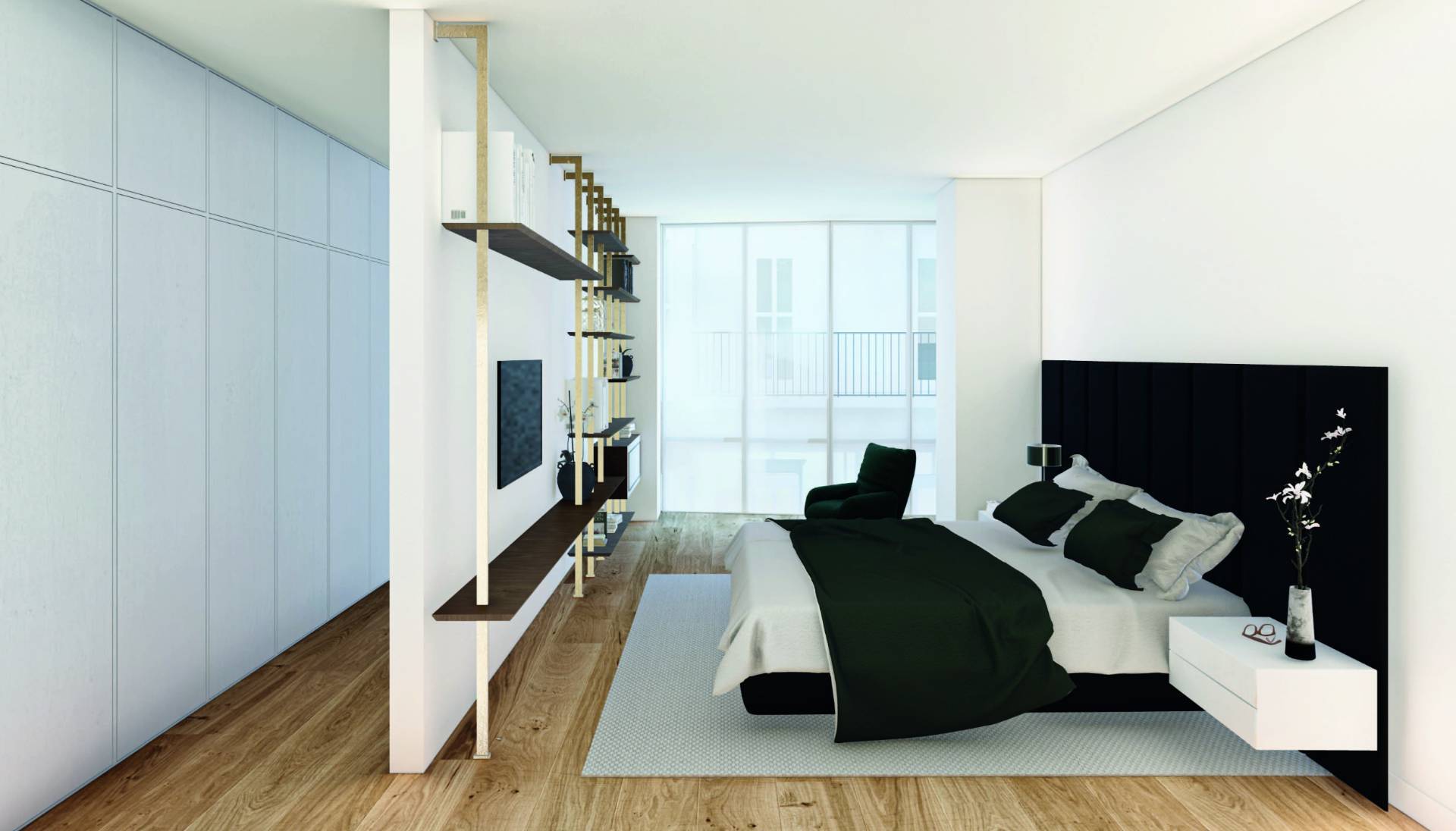 A closed connecting loggia leads to the second part of the sleeping area - also featuring independent access - consisting of two further bedrooms and a bathroom.