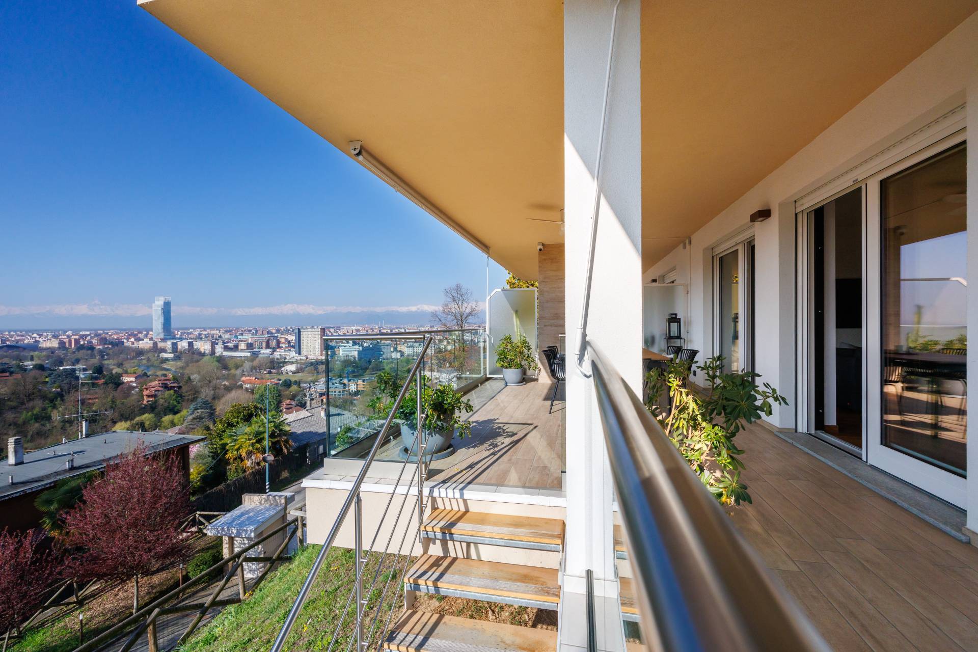 In a panoramic setting with sweeping views of Turin, exclusive and surrounded by greenery, we offer a 132 sq m apartment in a newly built building with a solarium terrace and an approximately 80 sq m private garden.