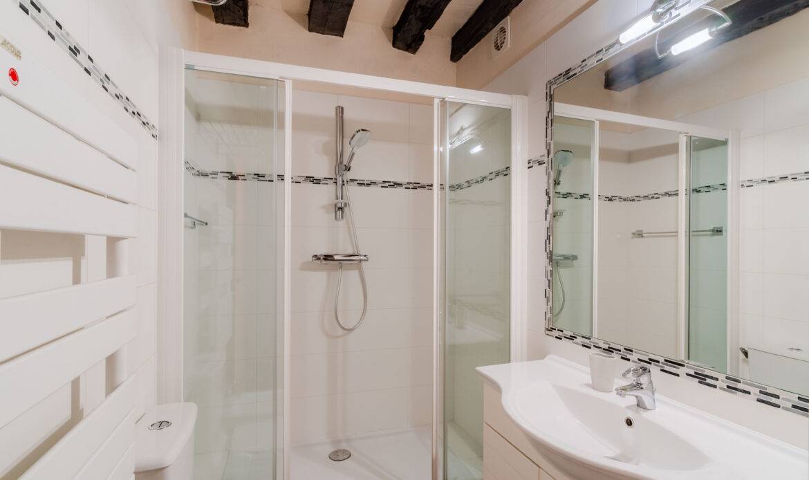 1 In the 3rd arrondissement of Paris, located on Rue Quincampoix in the heart of the Marais district, this 42 m² one-bedroom Apartment is on the third floor (without an elevator) of a building dating back to 1850. The Apartment comprises an entrance hall, a bright living room overlooking the street, a separate kitchen, a bedroom overlooking the internal courtyard, and a bathroom. The rooms feature parquet floors and exposed wooden beams. It enjoys double east/west exposure. Independent electric heating, energy efficiency class D.