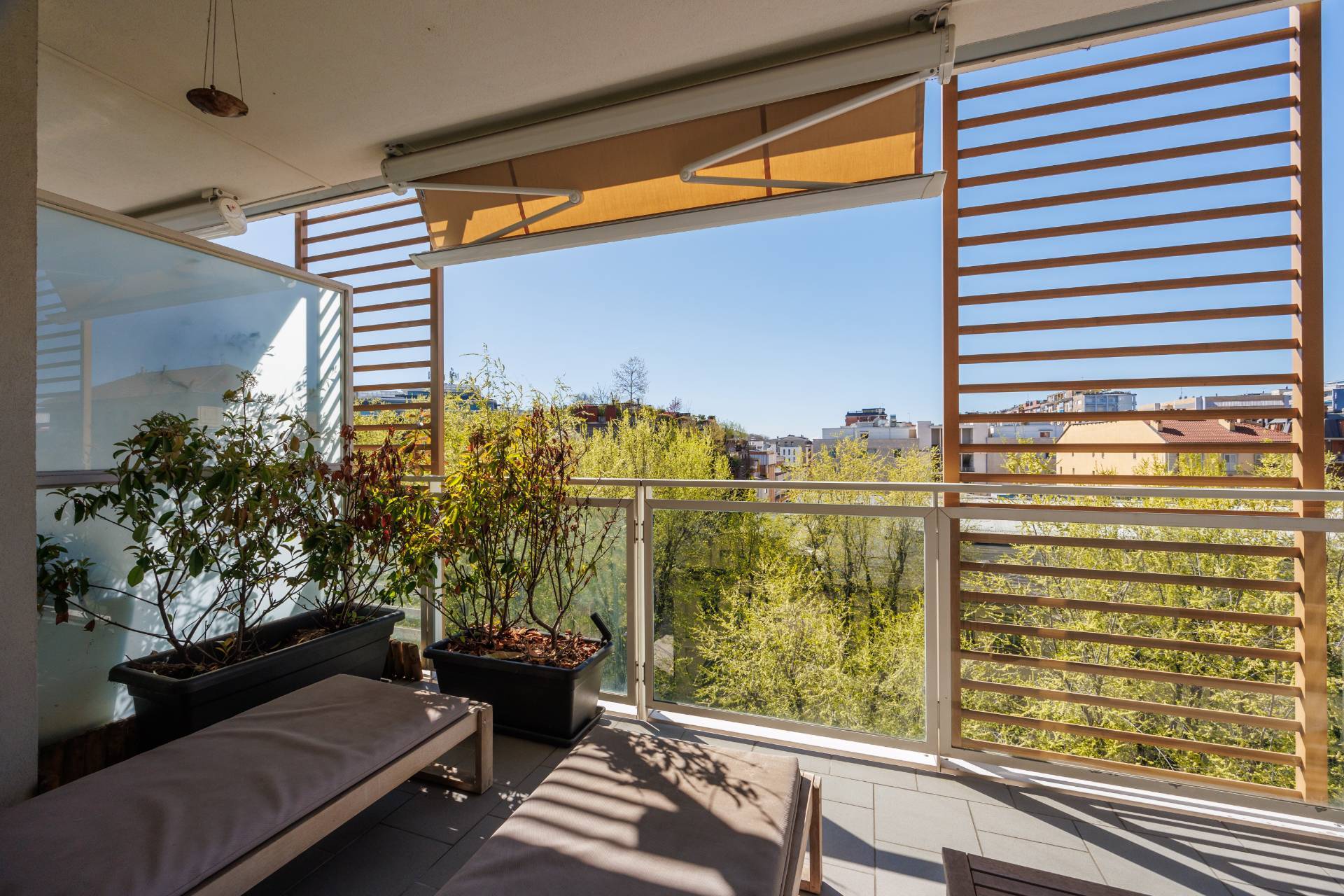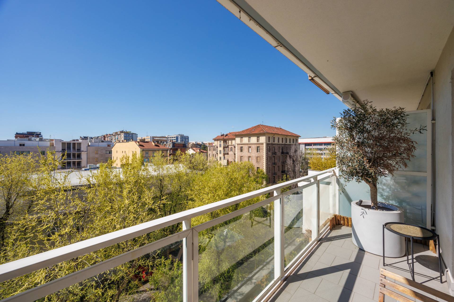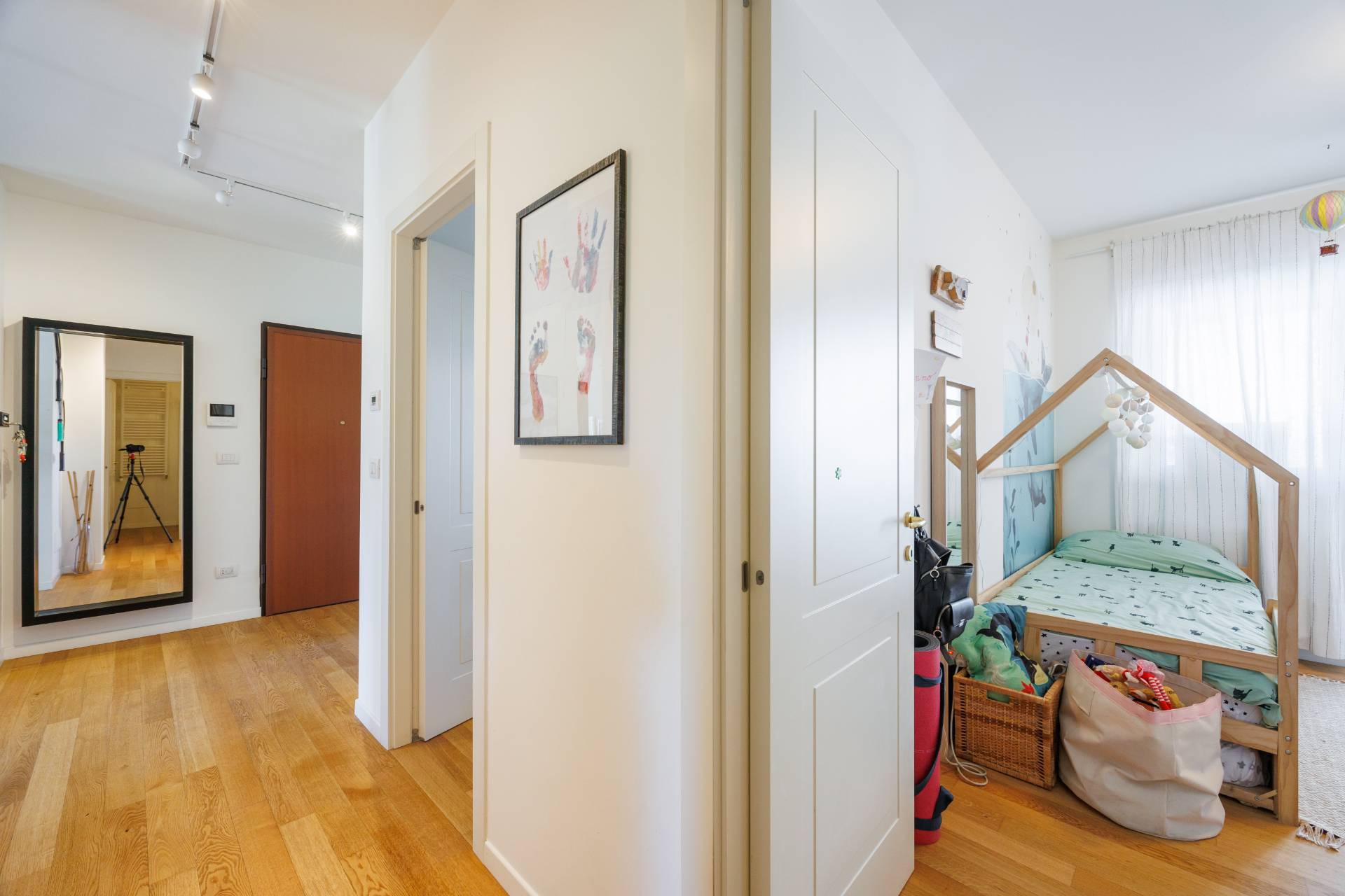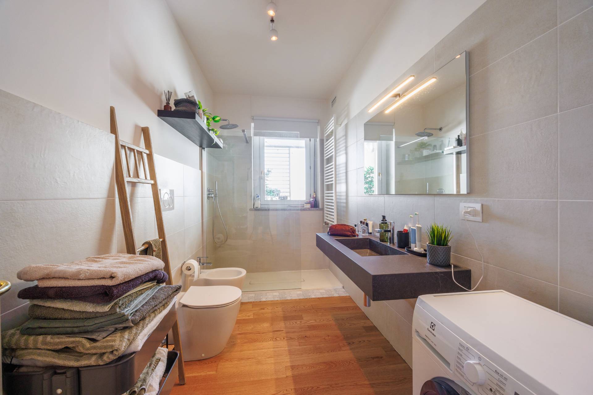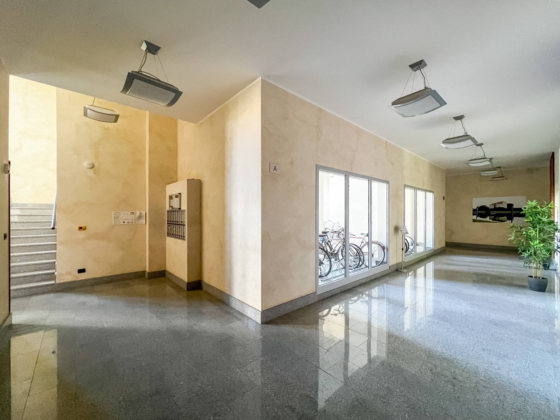 The entrance opens into a spacious, bright, and modern living area, featuring large windows that open to a wonderful terrace that provides natural light throughout the day. The eat-in kitchen is separate and well-organized, with access to a second terrace overlooking the internal courtyard. The sleeping area consists of two bedrooms, both with access to the terraces, and two bathrooms. The property enjoys double exposure.