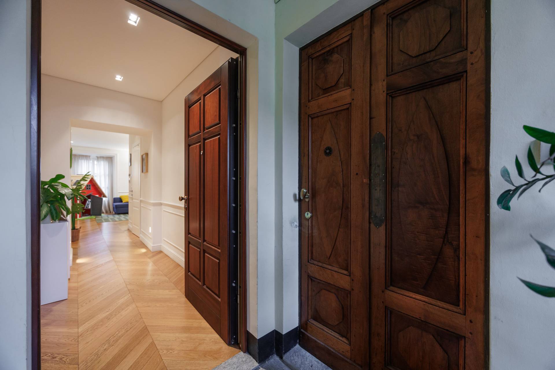 Pavimenti in pregiato parquet , finestre in legno con doppi vetro-camera (isolamento termico e acustico), porta blindata, riscaldamento autonomo.