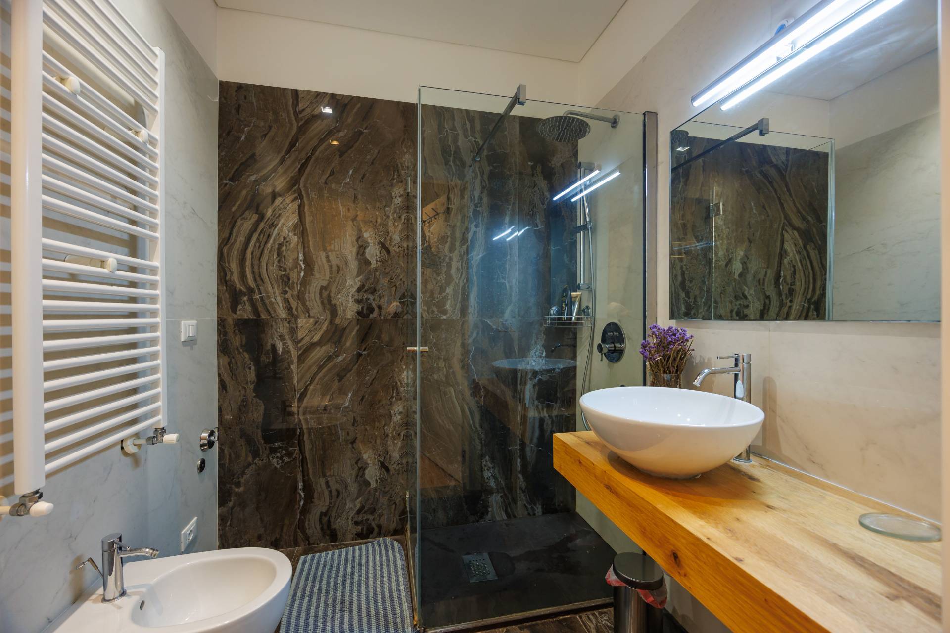 Una scala interna conduce ad altra zona indipendente al piano superiore, con bagno privato, adatta a seconda camera oppure studio.