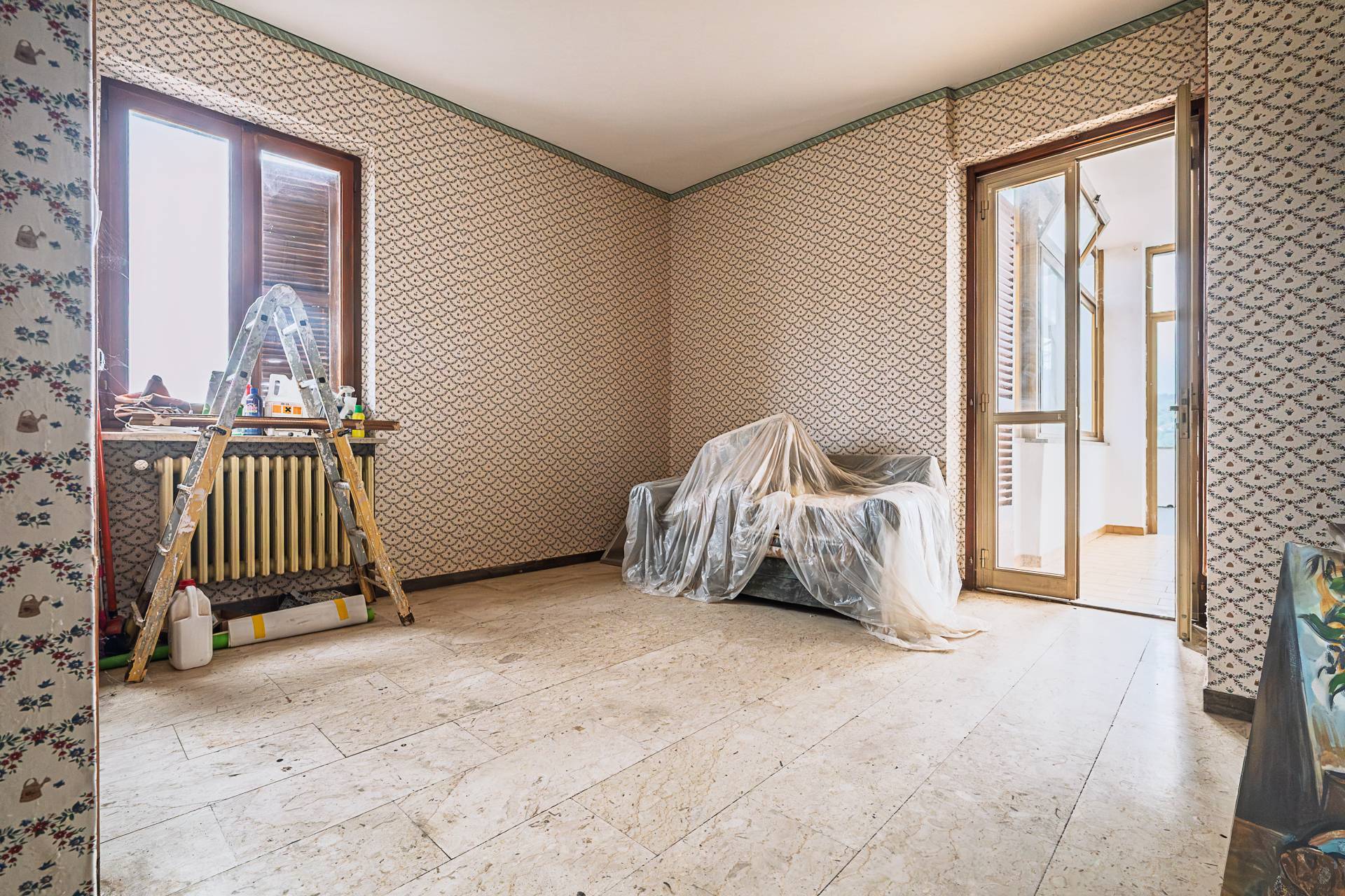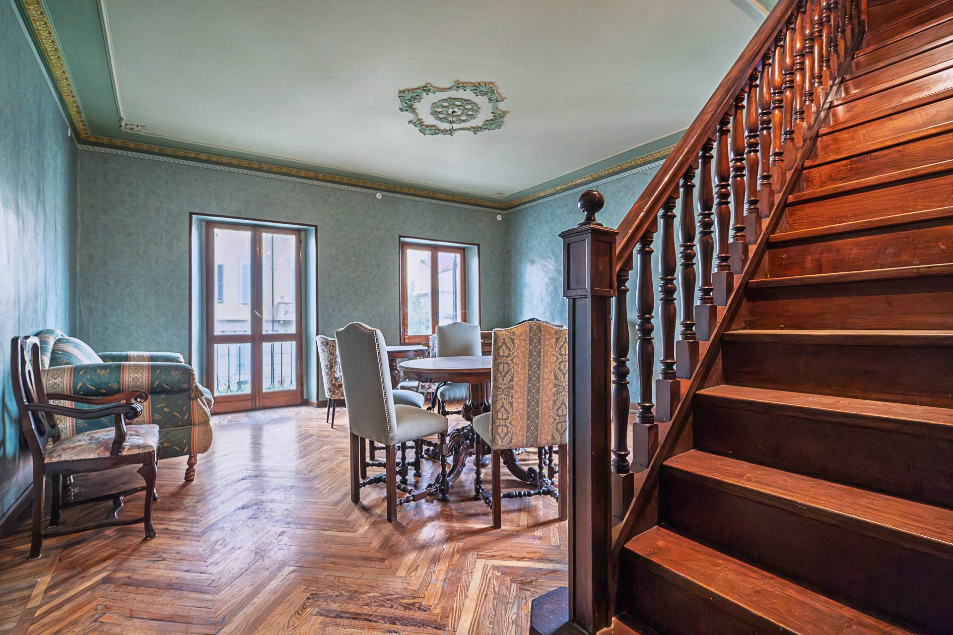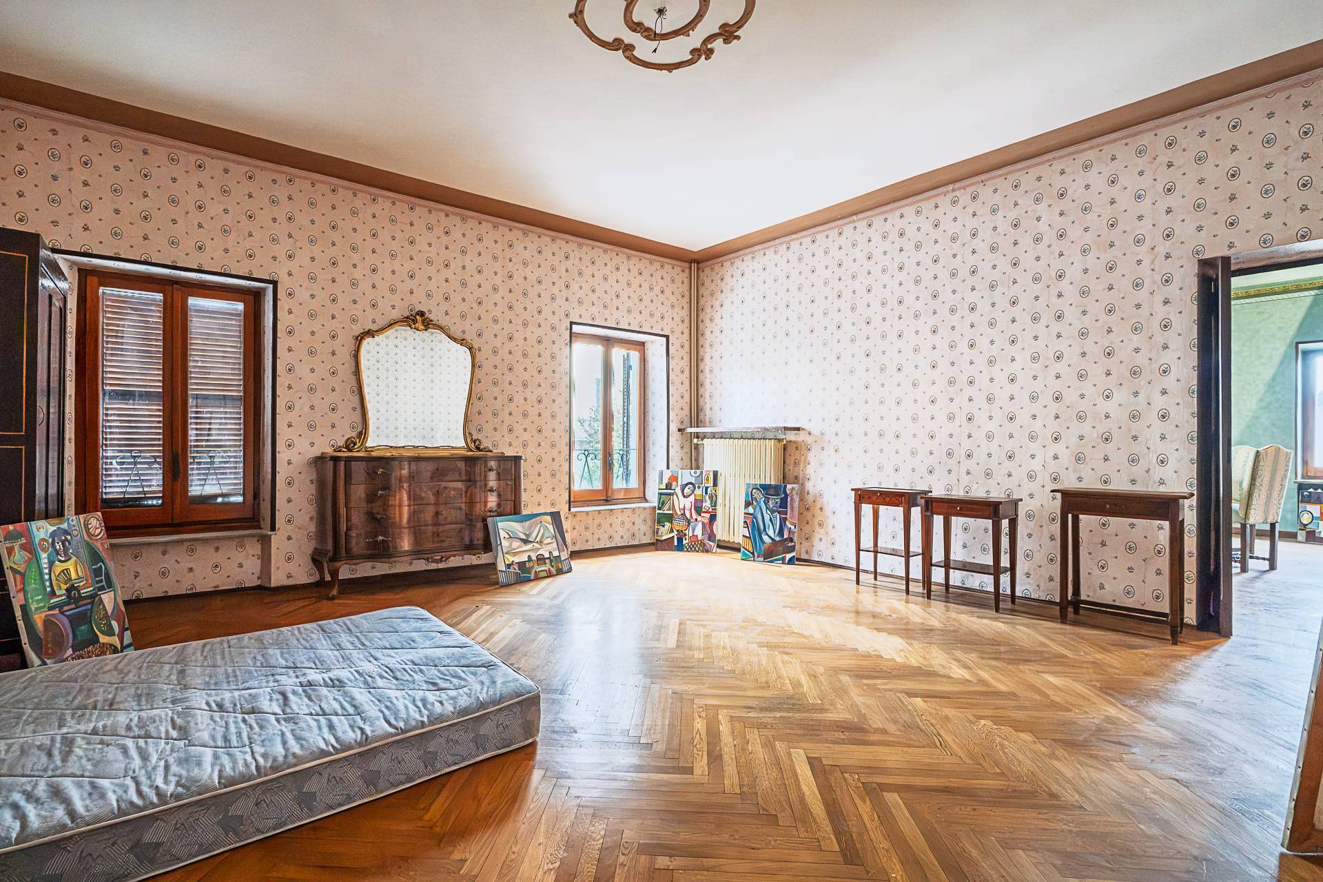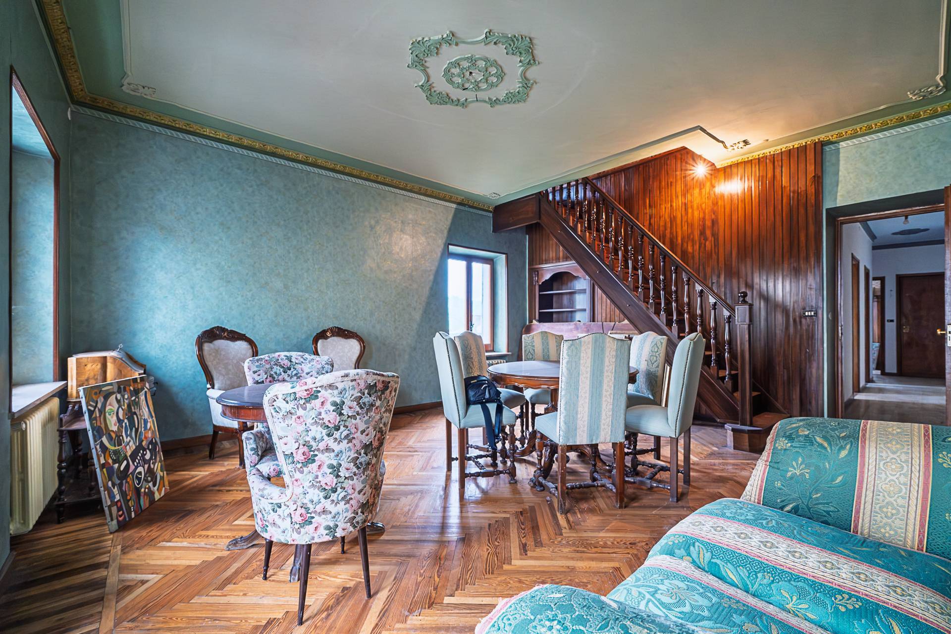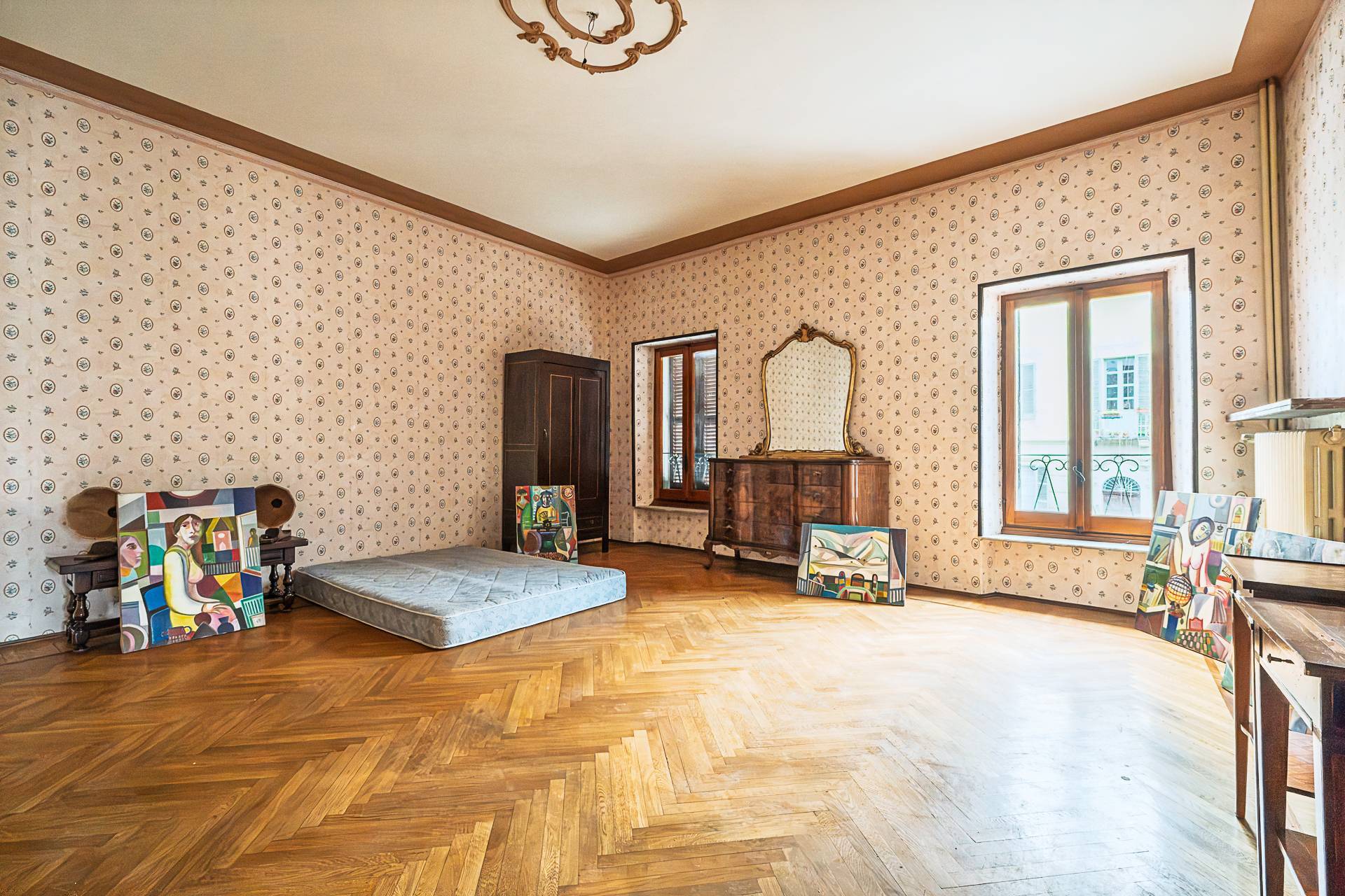 In stabile d'epoca, nel centro storico di Gassino, a pochi passi da Piazza Chiesa, Appartamento su tre livelli con riscaldamento autonomo e terrazzo panoramico coperto. Il primo piano (di 142 mq) è composto da ingresso, ampia zona giorno angolare, tinello con cucina da cui si accede ad una veranda, due camere, un bagno finestrato e un balcone di 12 mq. Il piano secondo (di 102 mq) è composto dal soggiorno, cucina, una camera, un bagno e un terrazzo di 27 mq. Al piano seminterrato c'è la tavernetta con volte in mattone, un bagno e la cantina. L'unità è stata ristrutturata internamente ed esternamente nel 2025. Gli infissi originali (vetro singolo) sono stati controllati e ripristinati, l'intero perlinato è stato trattato e lucidato, il tetto è stato manutenuto, le ringhiere dei balconi sono state riverniciate. La carta da parati del piano primo è nuova (negozio Valentino, si lasciano gli sfridi). Gli stucchi originali dei soffitti sono stati ripresi e verniciati. L'impianto elettrico è stato completamente rivisto (frutti e prese sostituiti). C'è la predisposizione per il boiler dell'acqua calda sia al primo che al secondo piano e la predisposizione per la cucina ad induzione al piano secondo. L'attacco del gas è presente, ma chiuso. Il riscaldamento è sprovvisto di caldaia. Lo stabile non è dotato di ascensore, c'è una sola altra unità (di un'altra proprietà) che ha un accesso differente. C'è un'area verde comune. Cat.A/3, vani 10, rendita catastale euro 1.446,08.