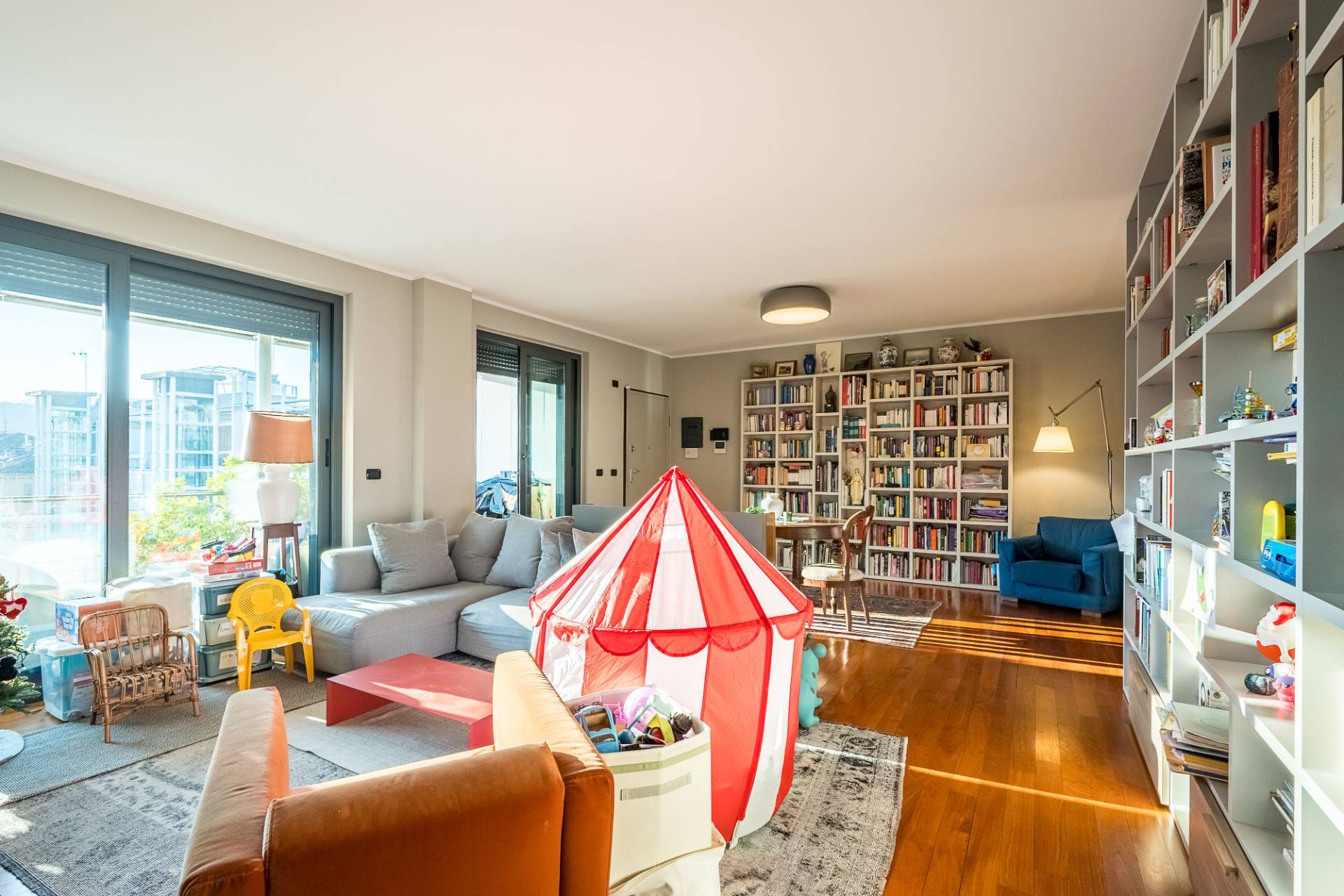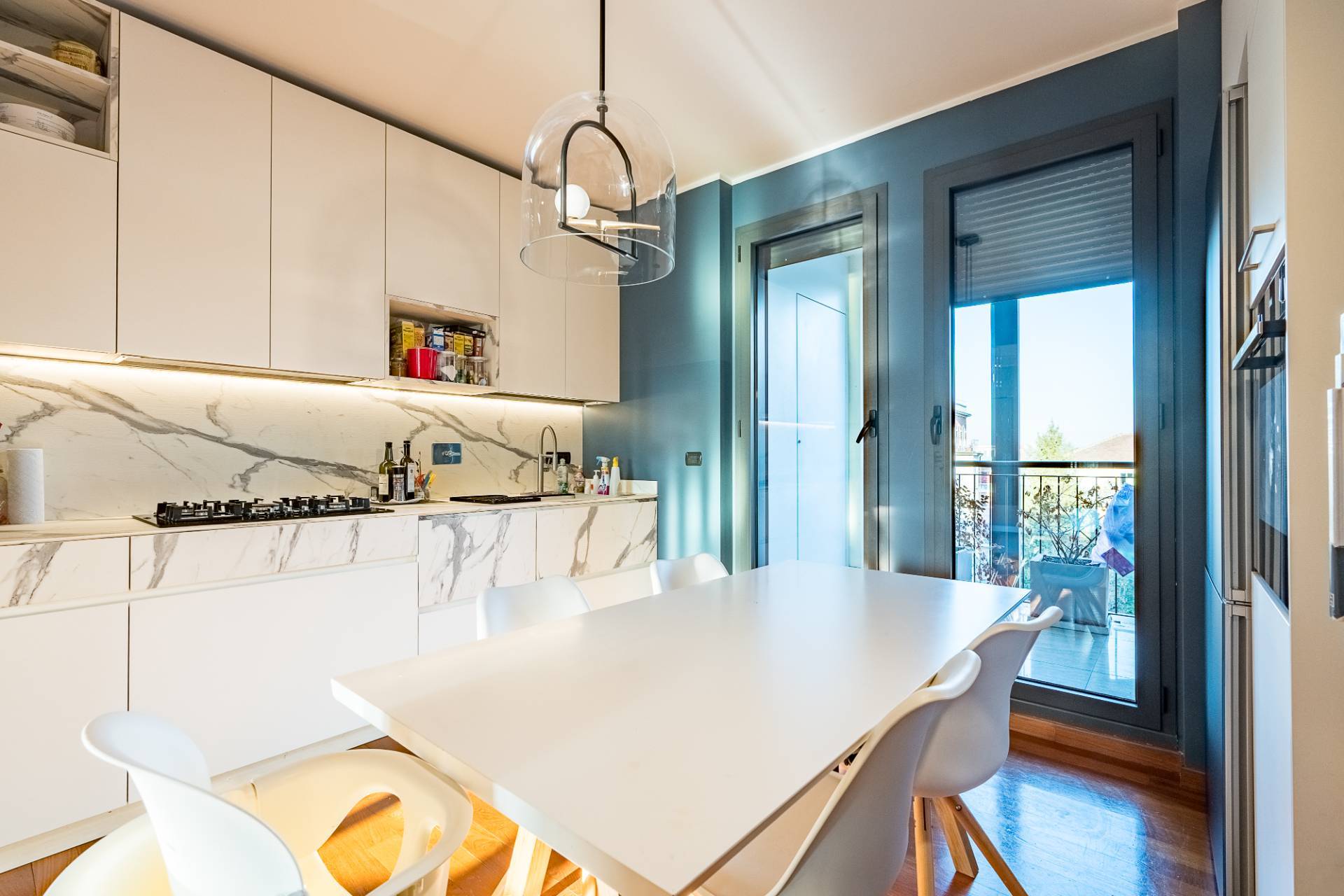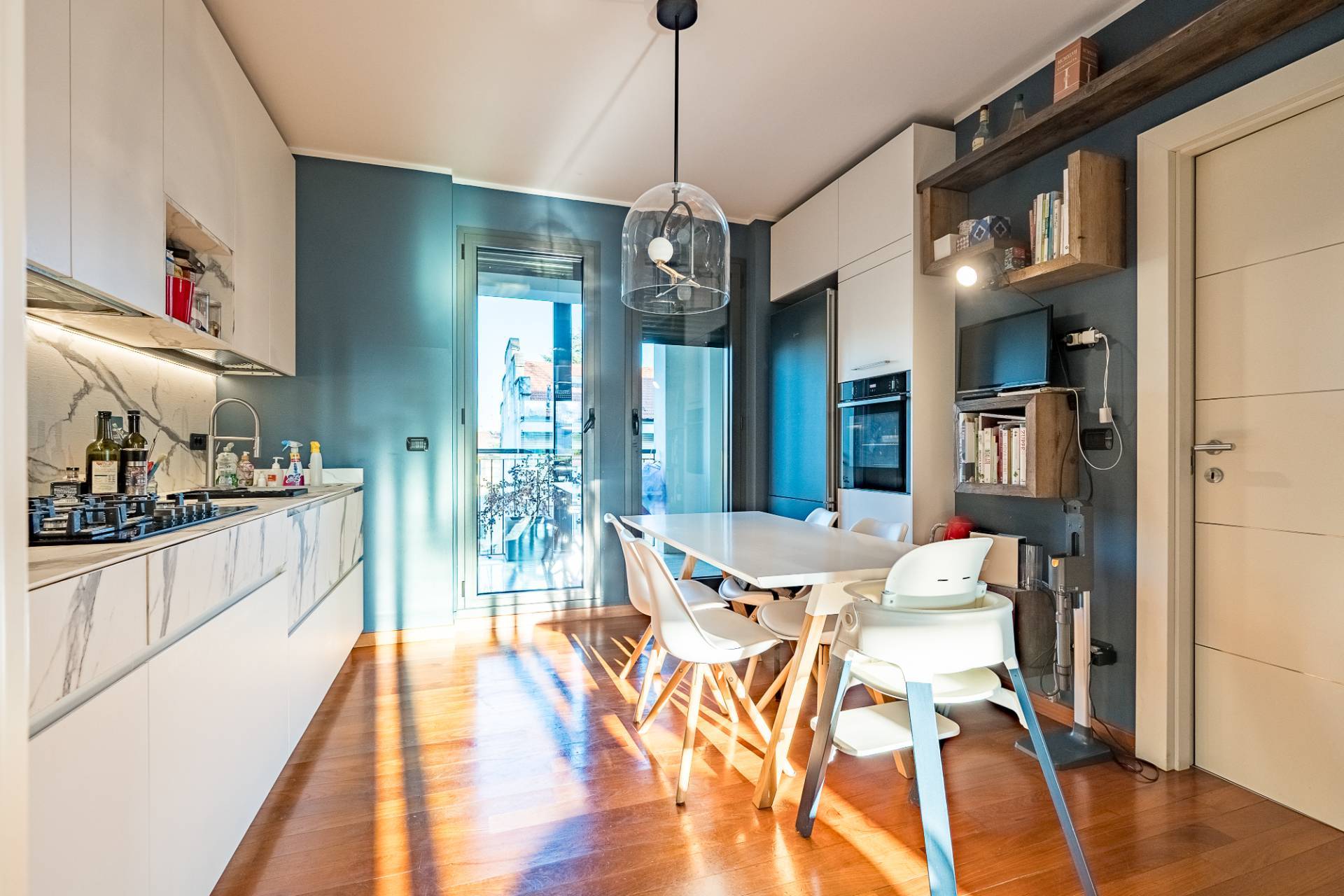 Internamente risulta così composto: ingresso su salone living, con affaccio su interno cortile tramite ampio e godibile terrazzo di circa 20 mq, separata da una porta scorrevole è presente la cucina abitabile con affaccio su via Lodovica tramite un secondo terrazzino di buone dimensioni che ospita un comodo locale lavanderia. Successivamente si snoda la zona notte, composta da una suite con bagno internamente collegato ed una seconda camera ed ulteriore bagno finestrato.