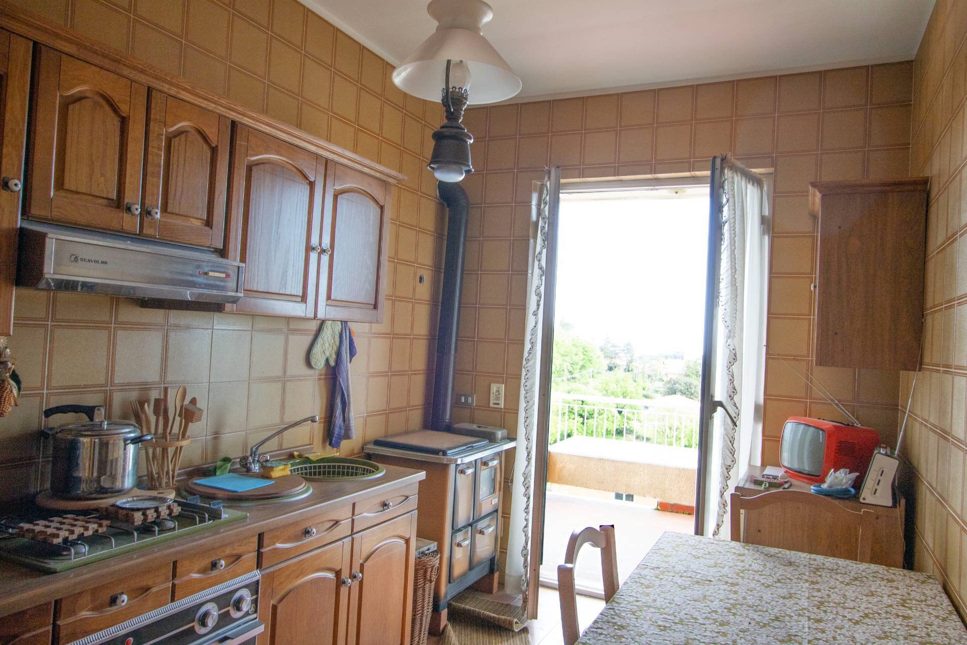L'immobile è composto da ingresso, ampio soggiorno, due camere, cucina, bagno. Due arie. Terrazzo e balcone con vista sulle colline e sul mare. Cantina.