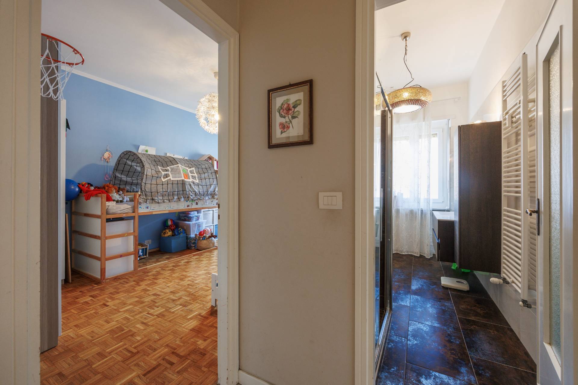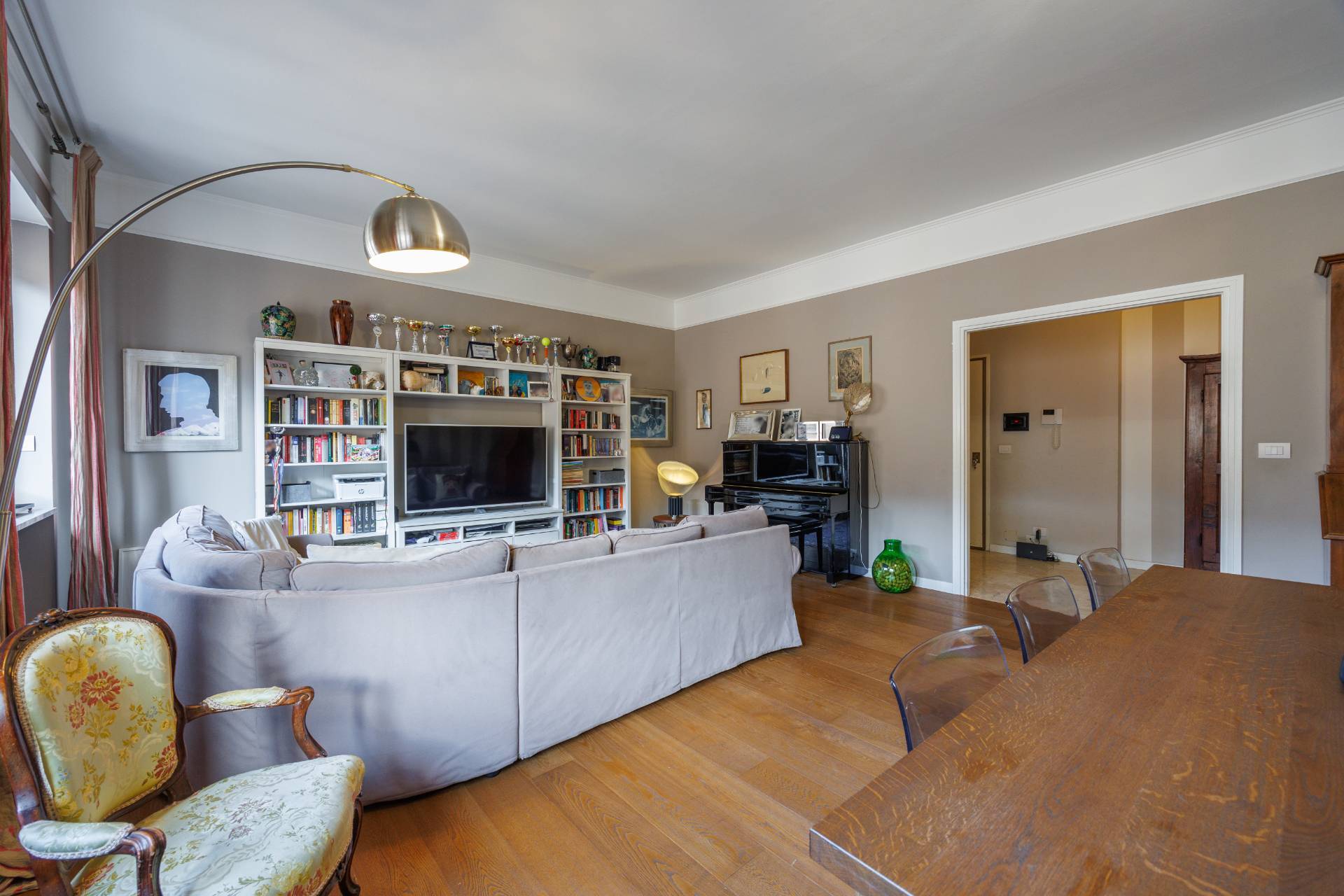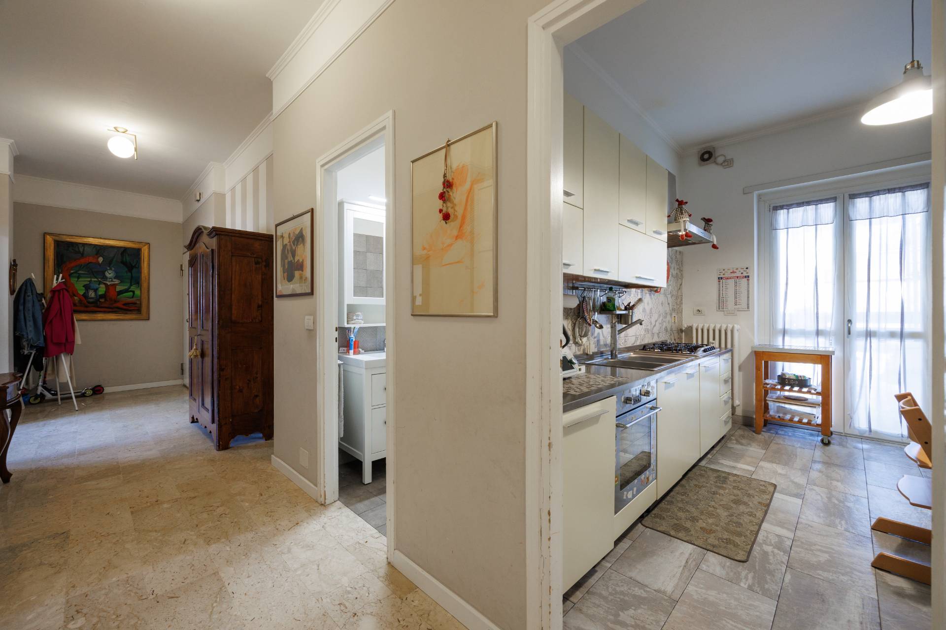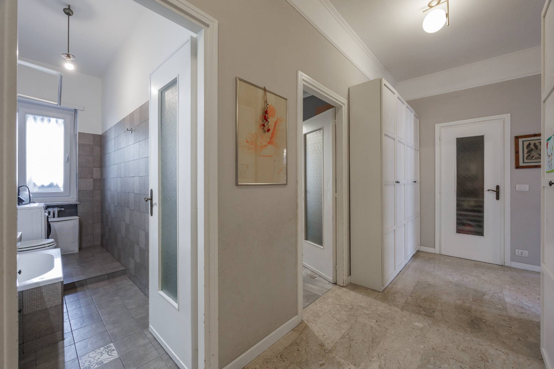 L'immobile è composto da ingresso su ampio disimpegno, salone doppio, cucina abitabile, due camere da letto e due bagni. Cantina di pertinenza.