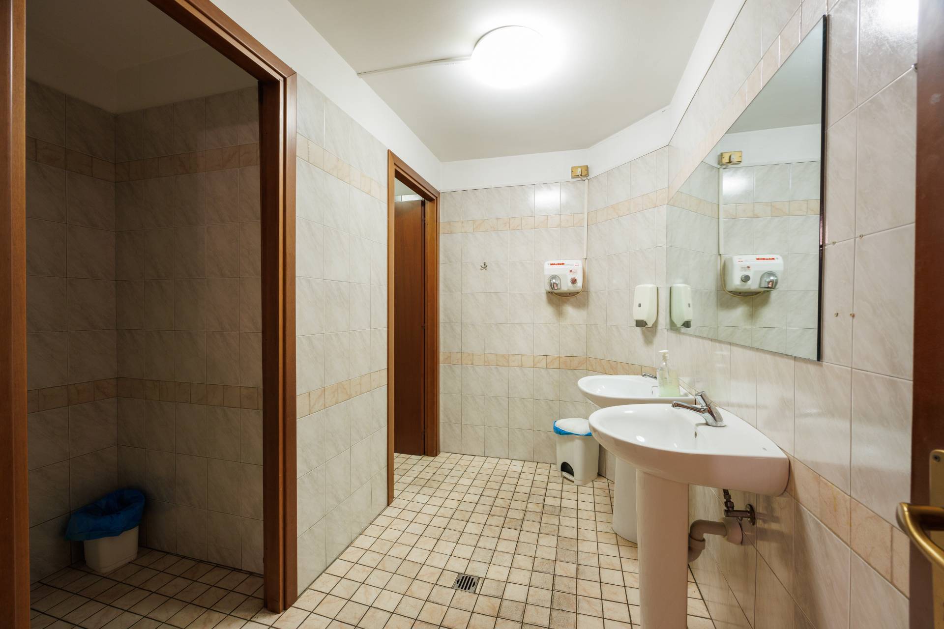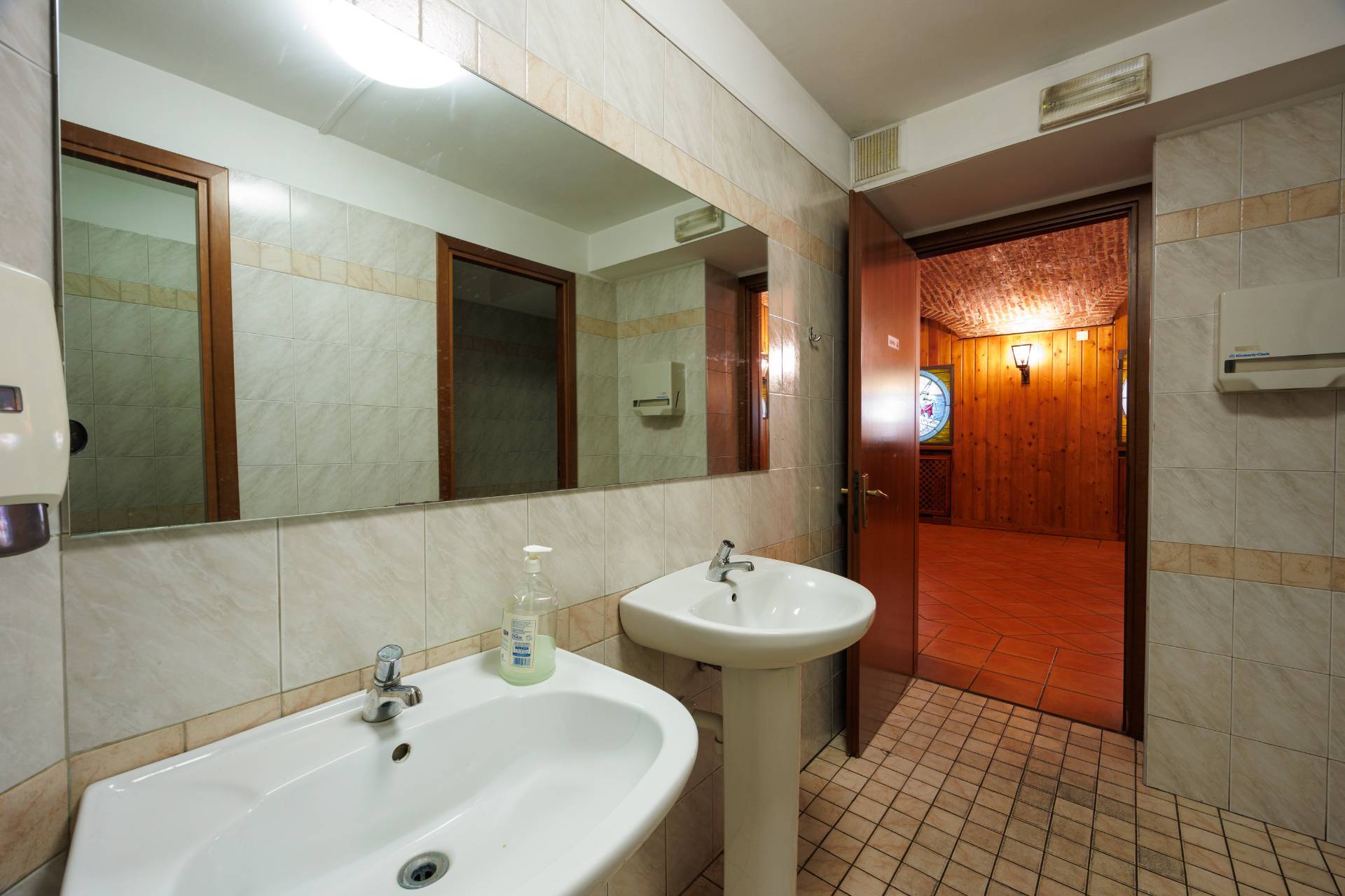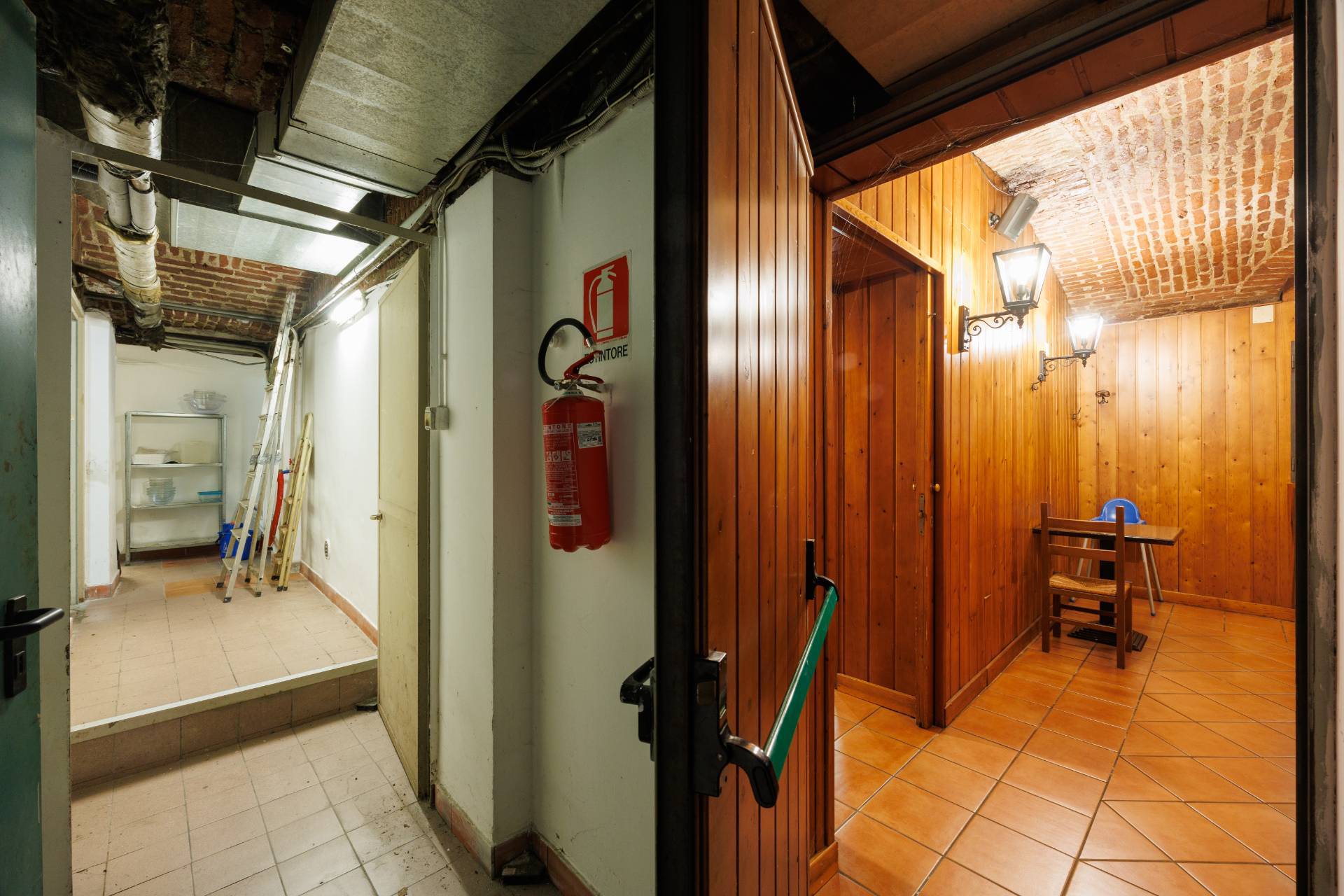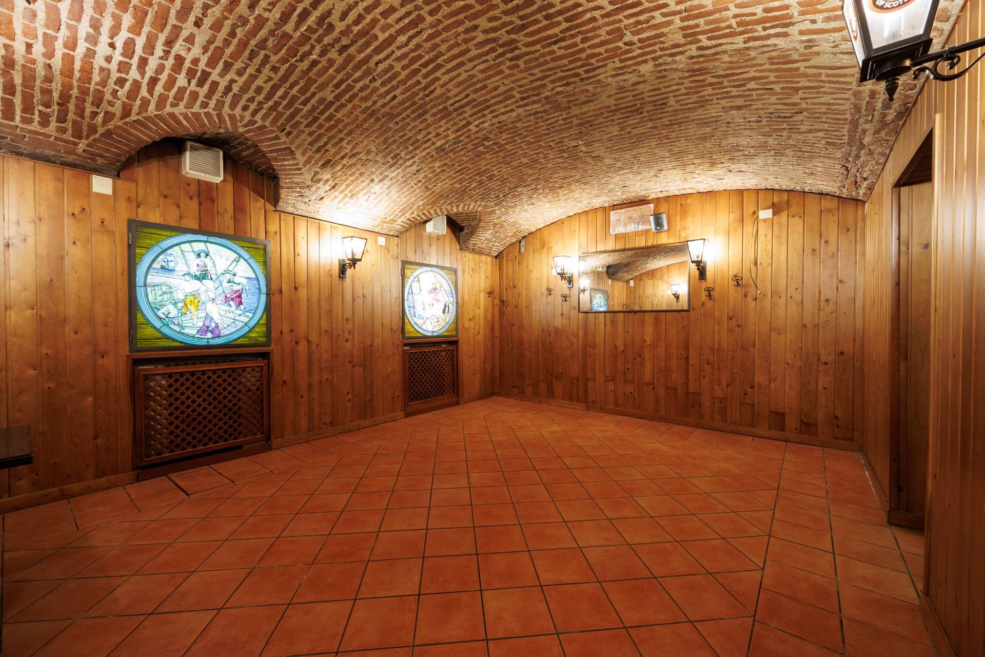 Al piano terra si trova un'ampia sala di somministrazione con bancone bar, ingresso su strada, servizi per i clienti e locale retro con aspirazione forzata. Al piano interrato sono presenti cucina attrezzata, forno a legna, deposito, legnaia, servizi per il personale e una seconda sala di somministrazione.