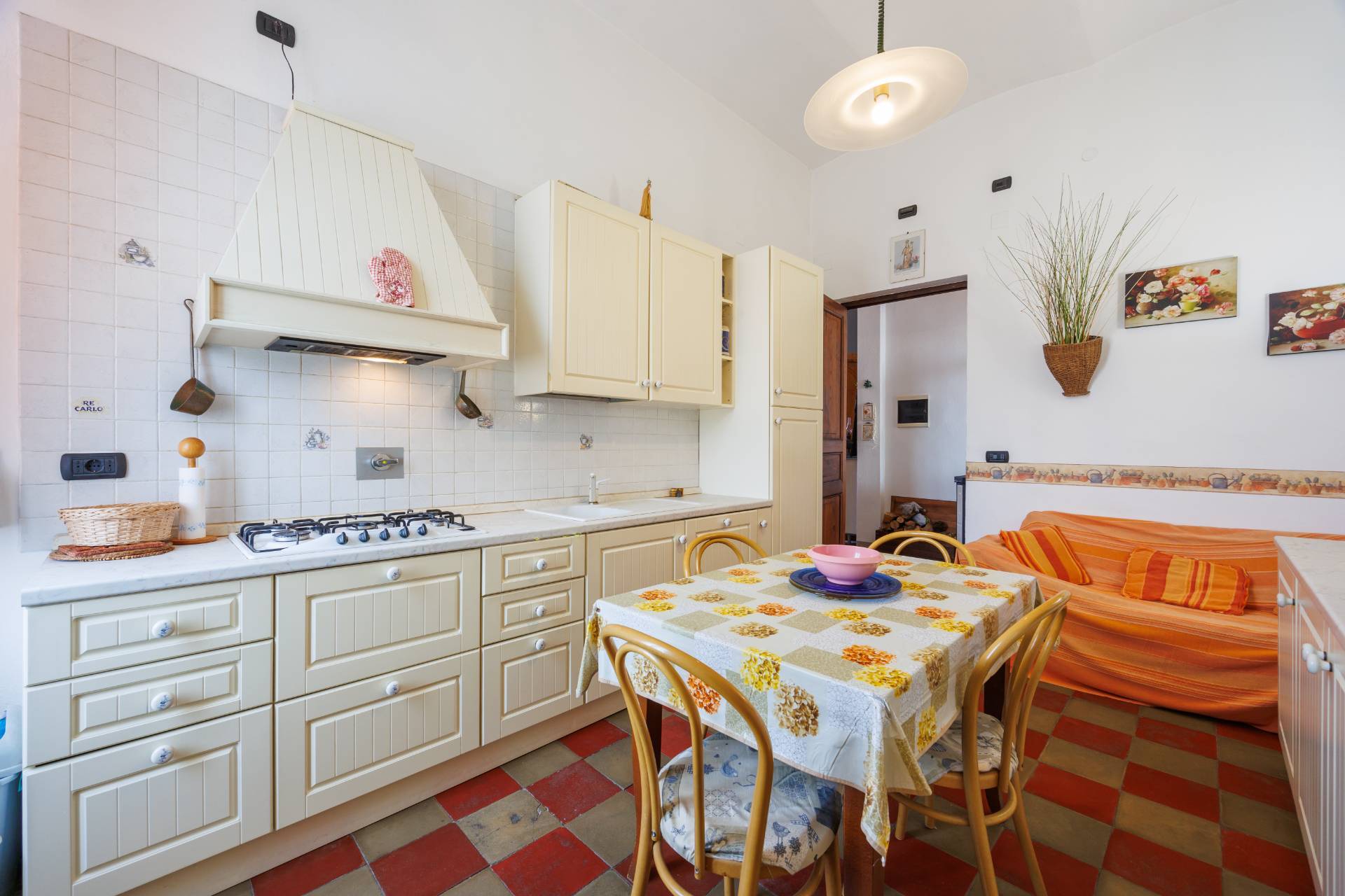 Al piano terra si trova una spaziosa tavernetta, ideale come ambiente conviviale o angolo relax. Una scala interna collega al primo piano, dove si sviluppa la zona abitativa principale: cucina abitabile con uscita sul balcone, soggiorno luminoso anch'esso con sfogo su di un balcone, due camere da letto e un bagno.