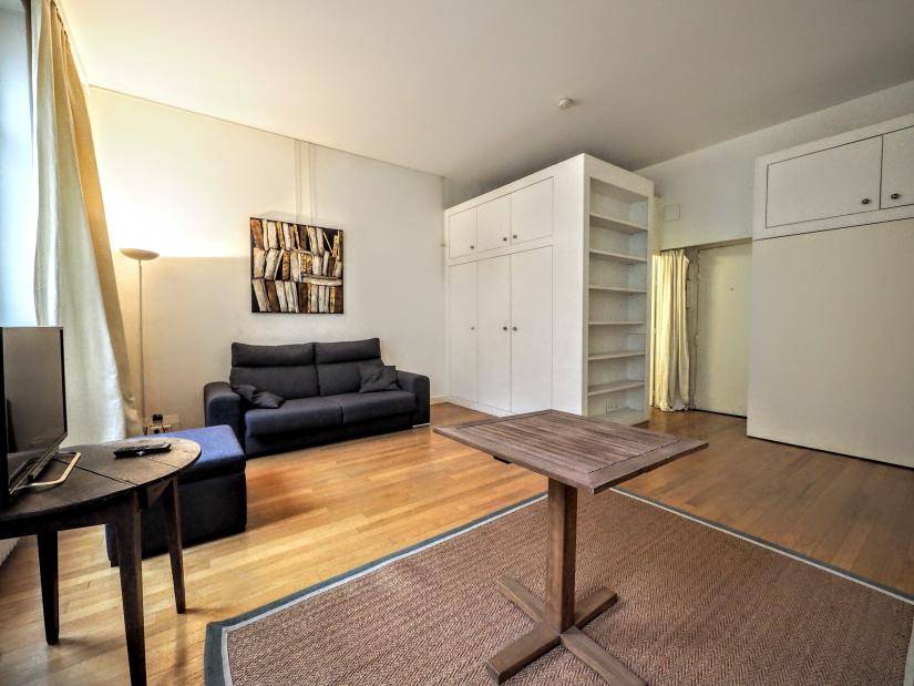 L'Appartamento presenta un ambiente principale con due finestre con doppi vetri con vista sulla via, una cucina a vista e un bagno. Pavimento in parquet e riscaldamento centralizzato.