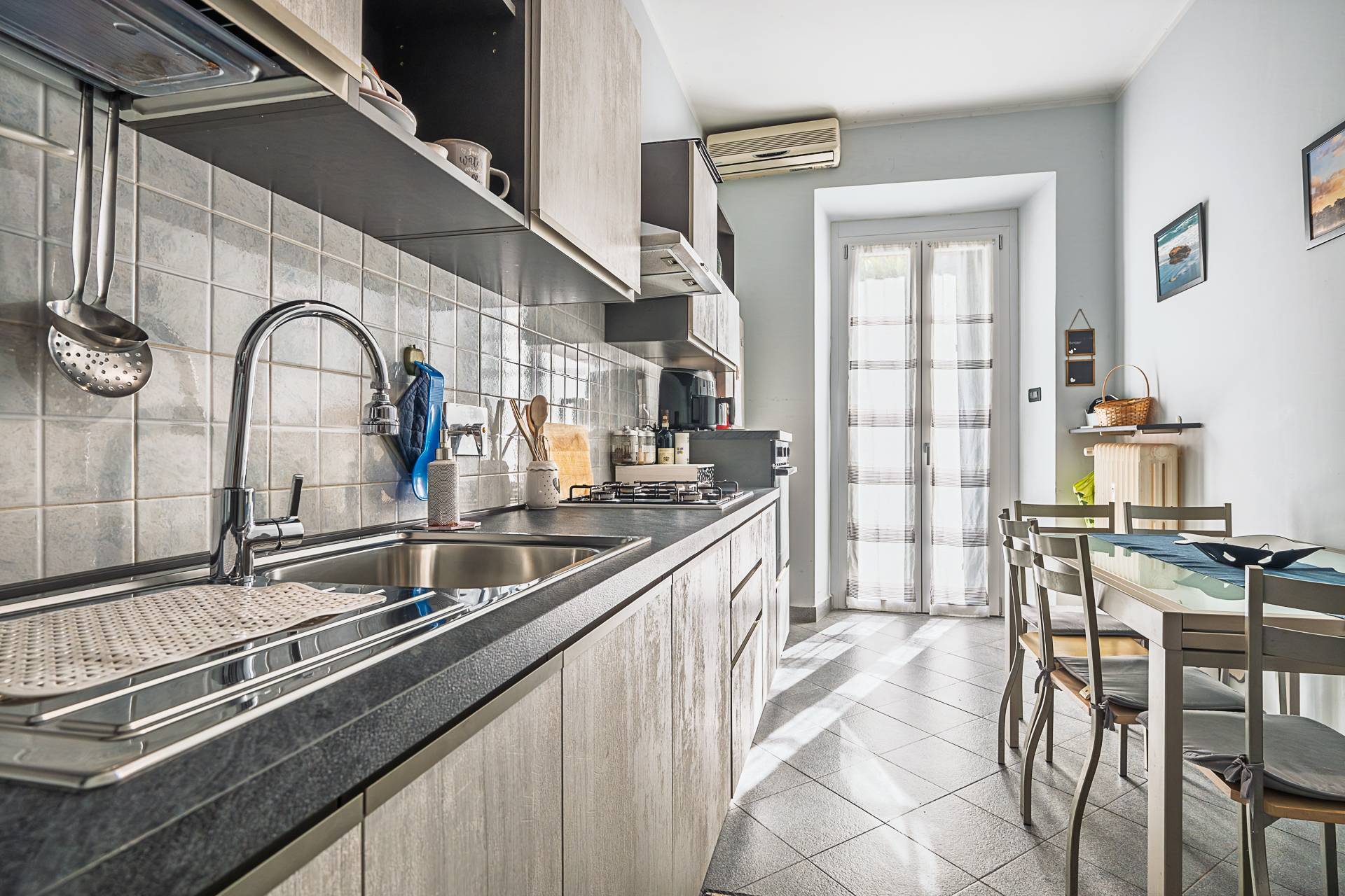 In stabile signorile del 1938, a pochi minuti a piedi dalla fermata della metro Racconigi e dal Tribunale, Appartamento completamente arredato, ottimo da invistimento. È composto da ingresso su zona giorno con cucina a vista, camera da letto, bagno finestrato e cantina. L'unità è al piano rialzato, è in buono stato abitabile e gode di doppia esposizione. Ha un balcone lato cortile. L'arredo è incluso nel prezzo di Vendita. La porta è blindata. C'è l'impianto di aria condizionata (uno split in soggiorno Mitsubishi Climaveneta). Gli infissi hanno il doppio vetro (gas argon) antieffrazione ed isolante (termico e acustico). La cucina è Arredia. Gli elettrodomestici sono Beko (frigo, forno, piano cottura) mentre la lavastoviglie è Ariston e la lavatrice Indesit. La camera da letto è di Mondo Convenienza (2021). In bagno c'è il contatore dell'acqua a consumo. C'è la possibilità di locare un box auto doppio (esattamente davanti all'unità) ad euro 200 mensili. Lo stabile è in buone condizioni generali ed è comodo a tutti i servizi. Cat. A/3, vani 3,5, rendita catastale euro 442,86.