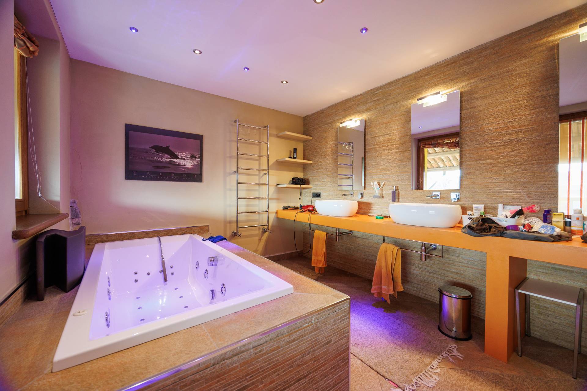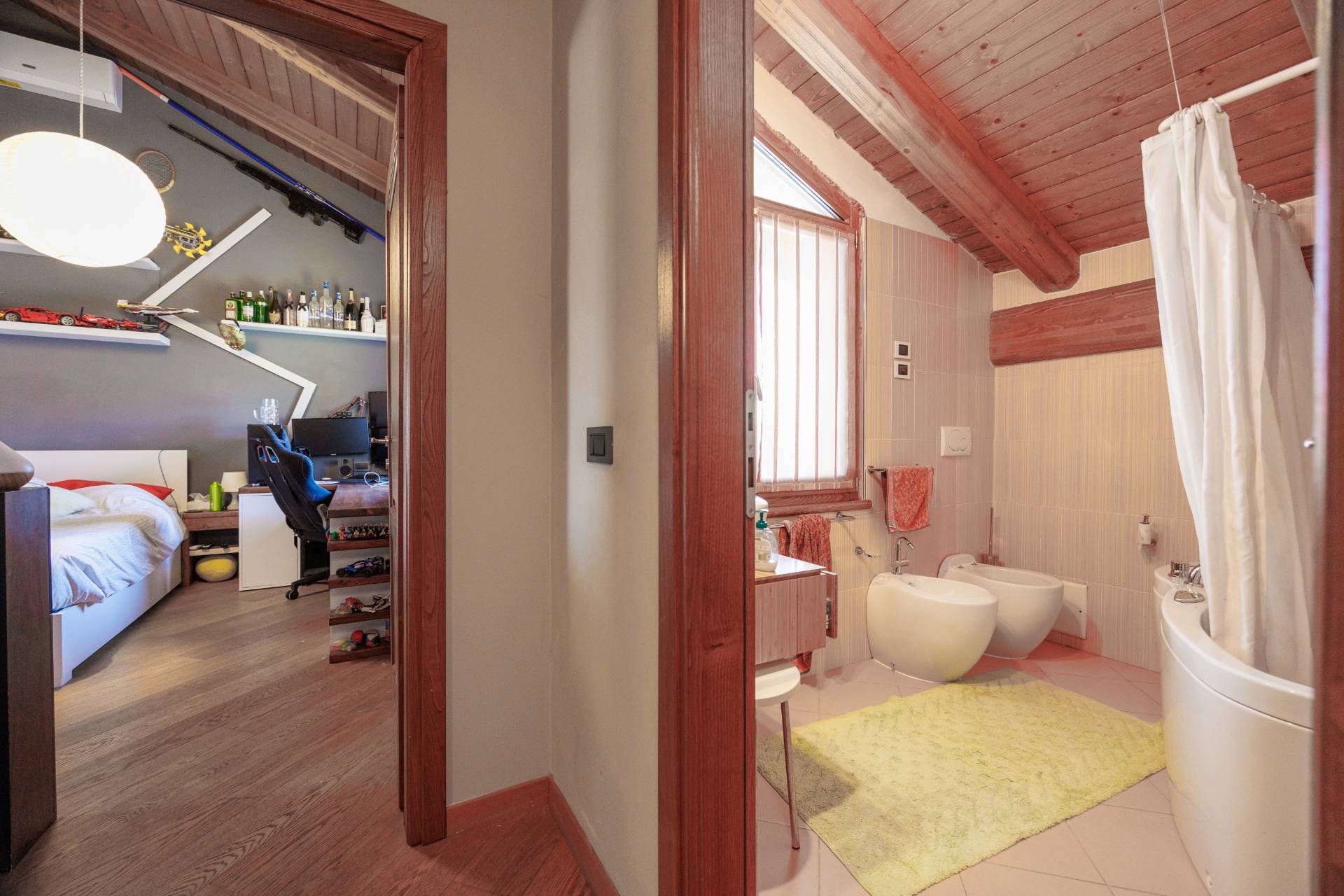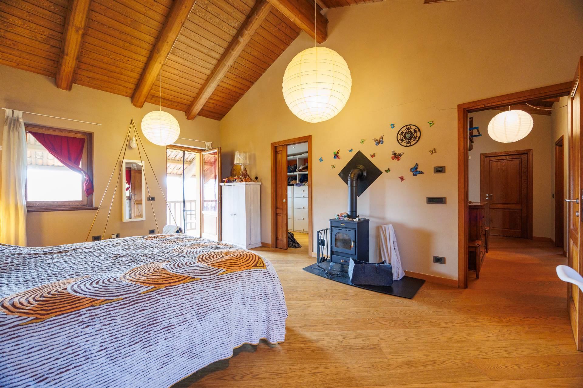 -al secondo e ultimo piano sono presenti altre due camere da letto, di cui una master room con cabina armadio e bagno en suite, dotato sia di vasca idromassaggio che di box doccia, una cabina armadio ed un bagno a servizio dell'altra stanza da letto. Entrambe le camere del secondo piano sono dotate di impianto di climatizzazione,