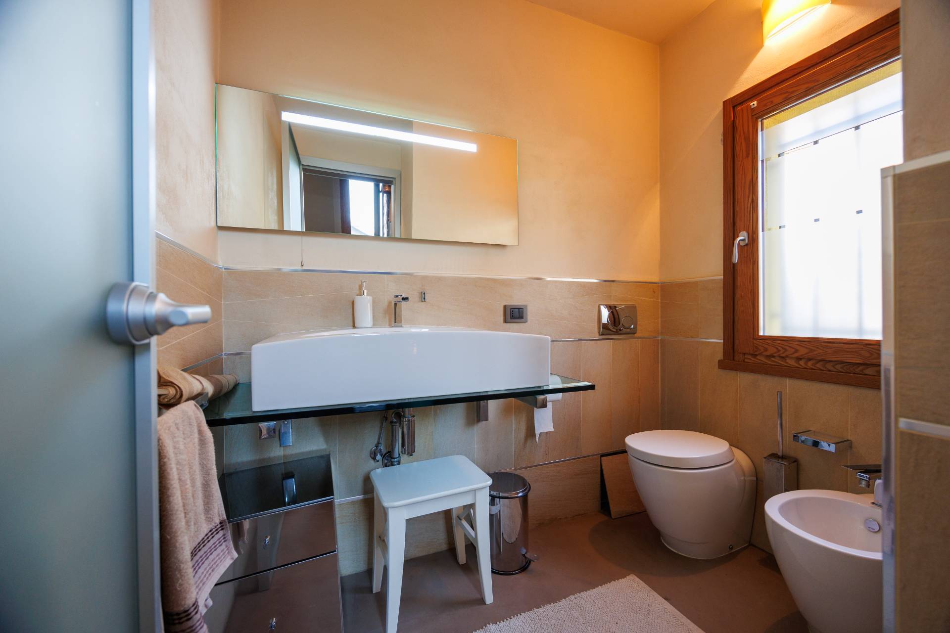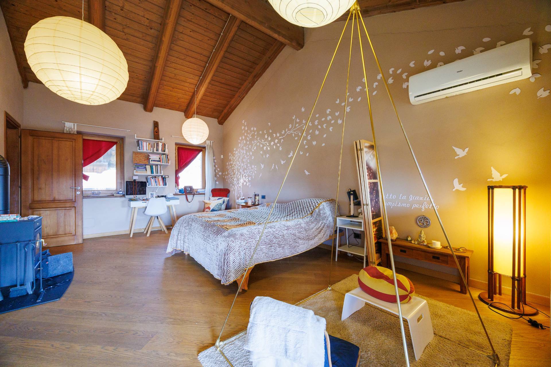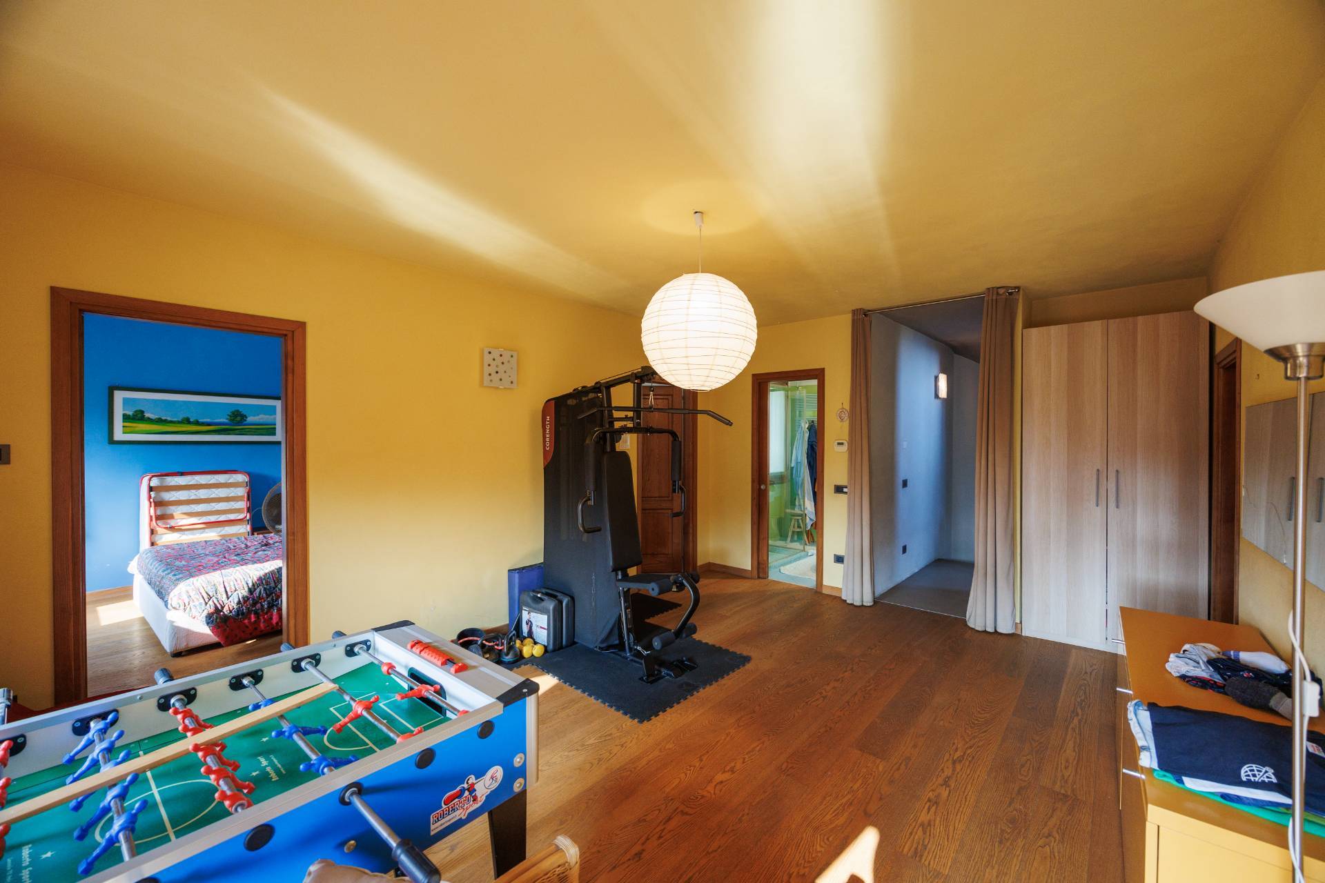 -al secondo e ultimo piano sono presenti altre due camere da letto, di cui una master room con cabina armadio e bagno en suite, dotato sia di vasca idromassaggio che di box doccia, una cabina armadio ed un bagno a servizio dell'altra stanza da letto. Entrambe le camere del secondo piano sono dotate di impianto di climatizzazione,