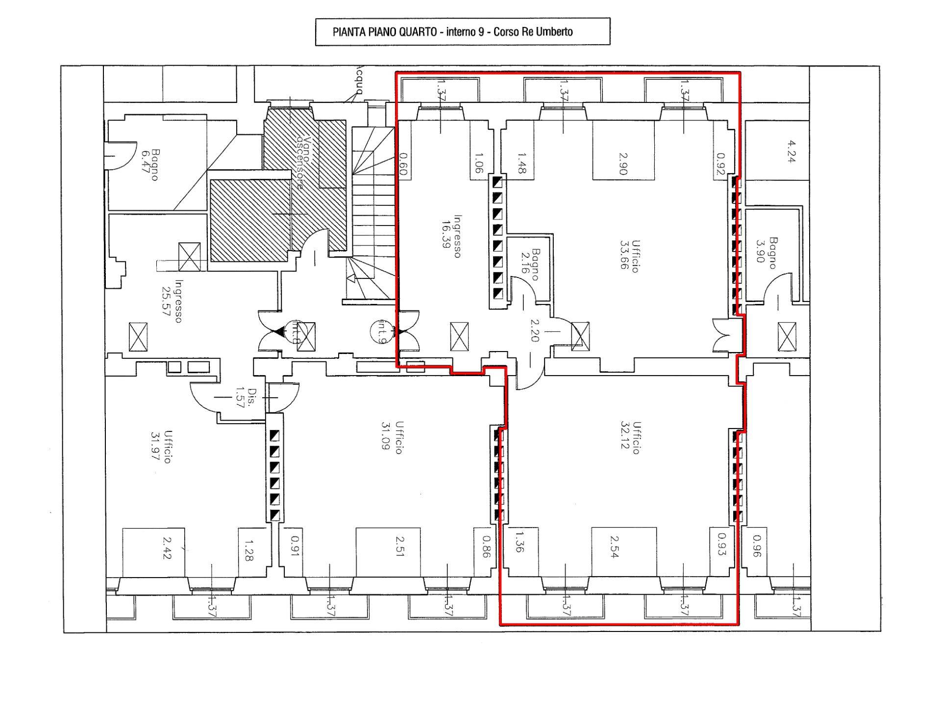 In palazzo d'epoca con portineria ed ascensore, proponiamo Ufficio al quarto ed ultimo piano, mansardato alto, di circa 100 mq.