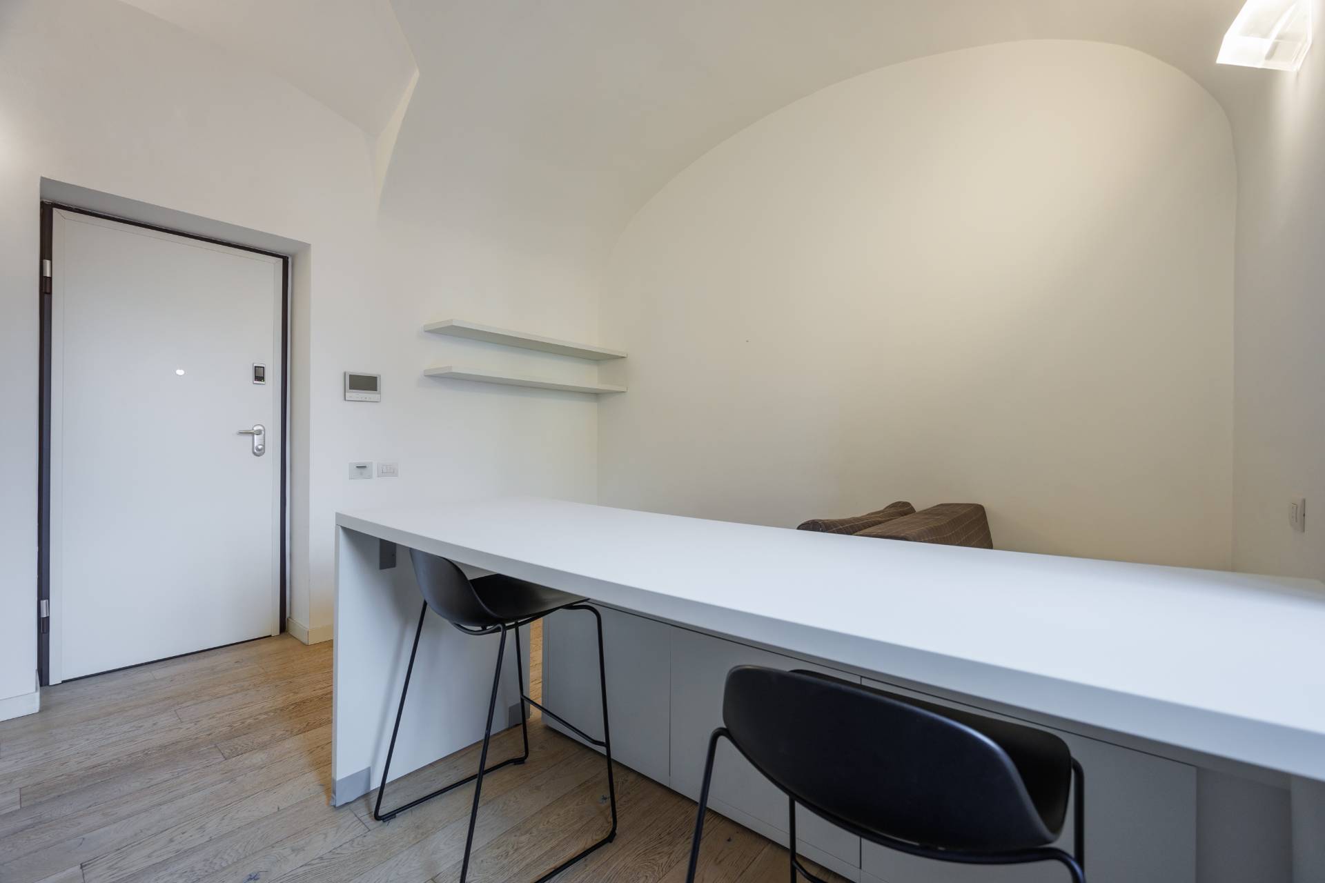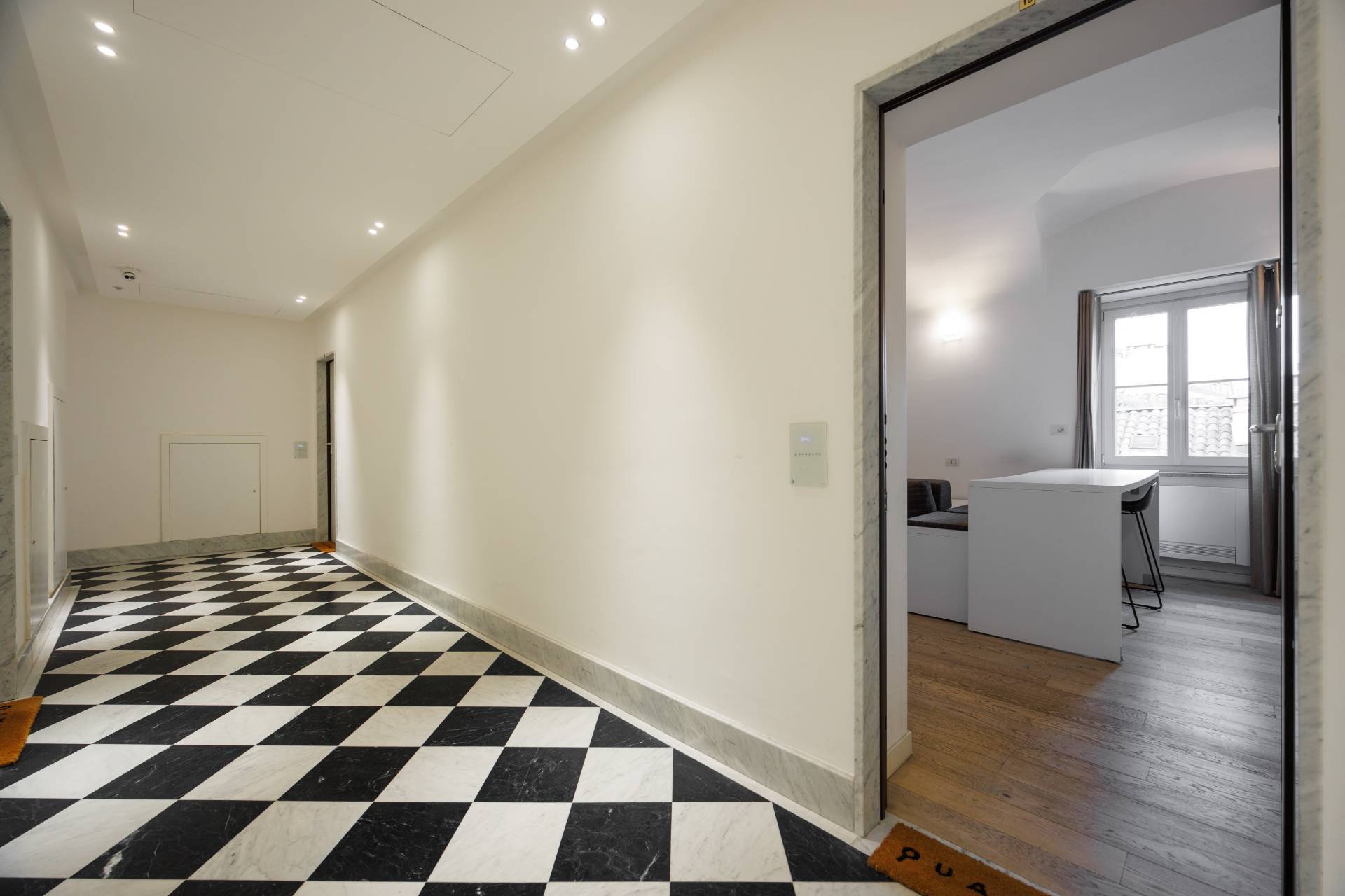 In Via delle Orfane, all'interno del condominio "QUADRATO", oggetto di recupero storico del palazzo Agostiniano, luminoso bilocale al quarto piano completamente arredato.
