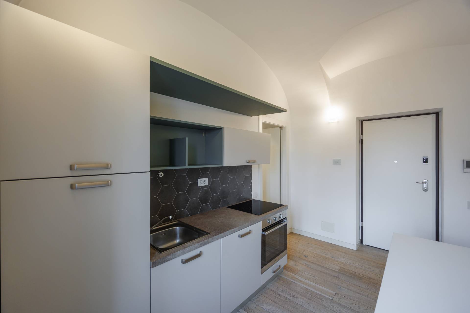 La soluzione abitativa è composta da ingresso su zona giorno con cucina a vista, camera da letto e spazioso bagno.