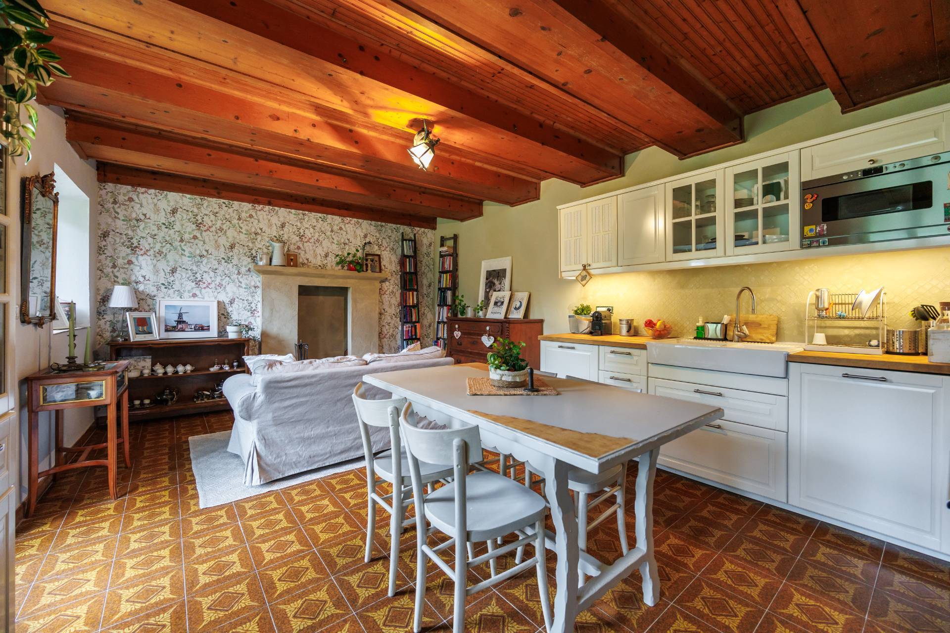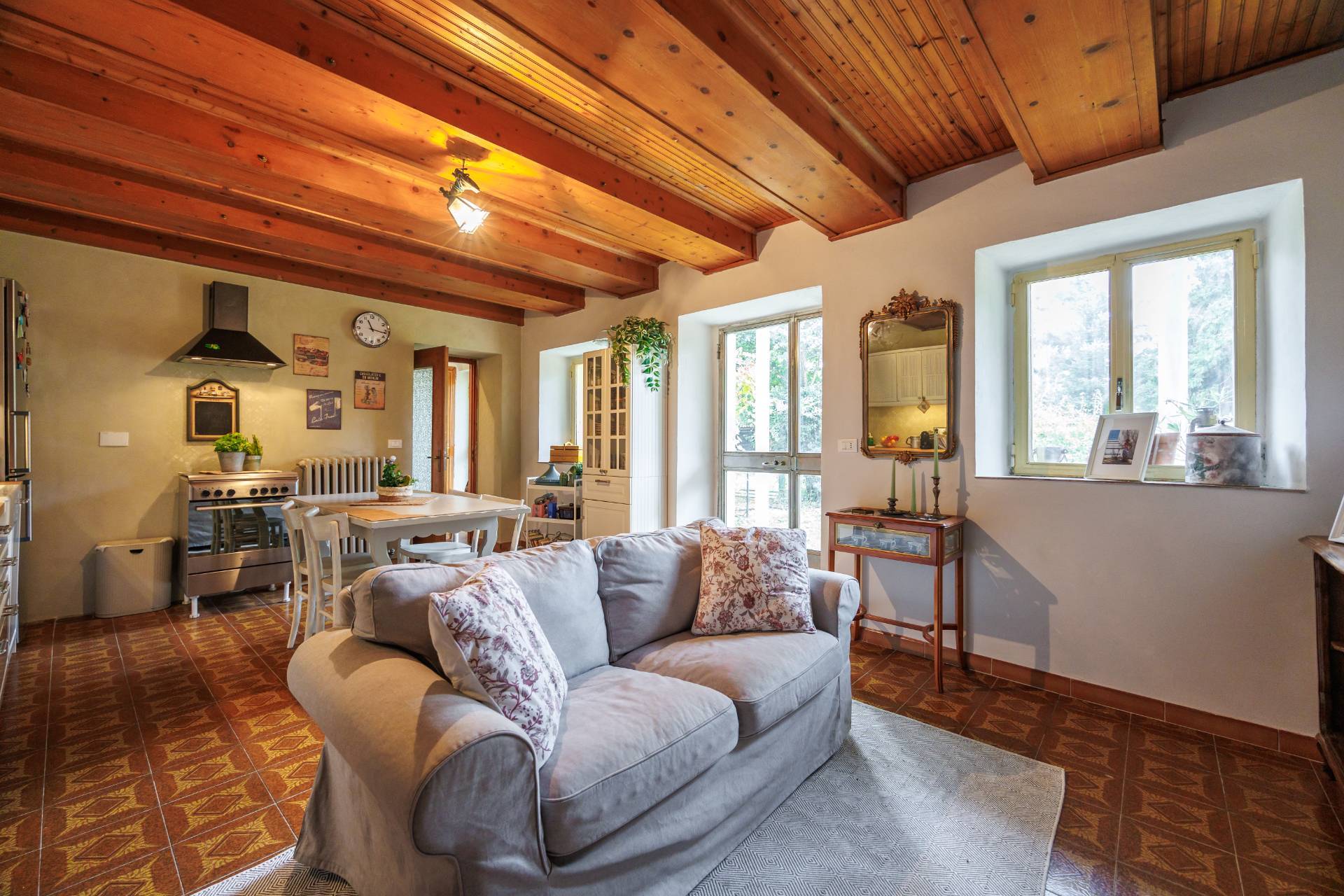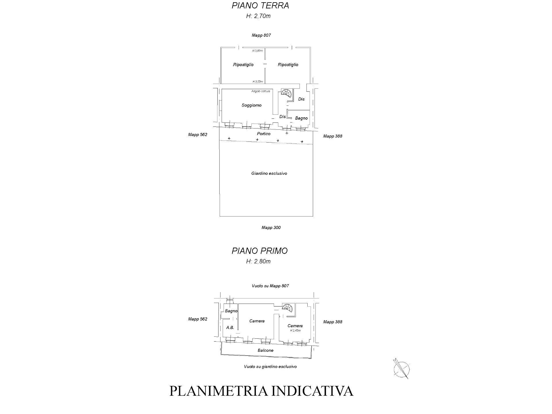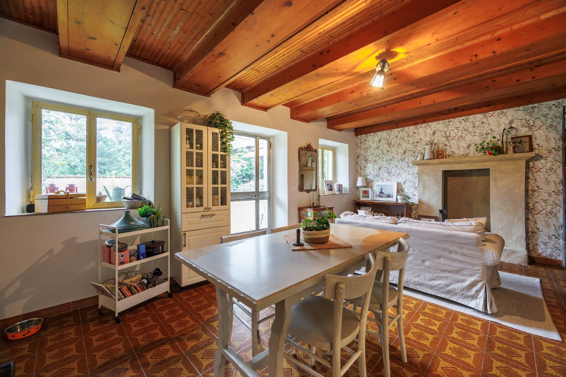 La prima parte della proprietà è frutto di una recentissima ristrutturazione parziale ed è dotata di impianto a gas metano e impianto idraulico che la rendono abitabile fin da subito, un'entrata sul disimpegno, con a sinistra la zona giorno caratterizzata da un'uscita sul giardino, rende l'ampio salone con cucina a vista luminoso e comfortevole. Una scala che collega il piano attuale alle due camere da letto con bagno e grande terrazzo poste al piano superiore e, sulla destra invece, il primo bagno e l'accesso a due locali di circa 20mq ciascuno, liberamente adattabili.