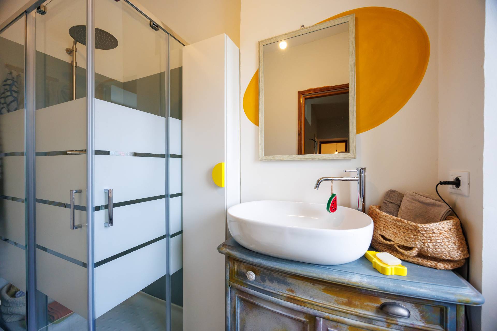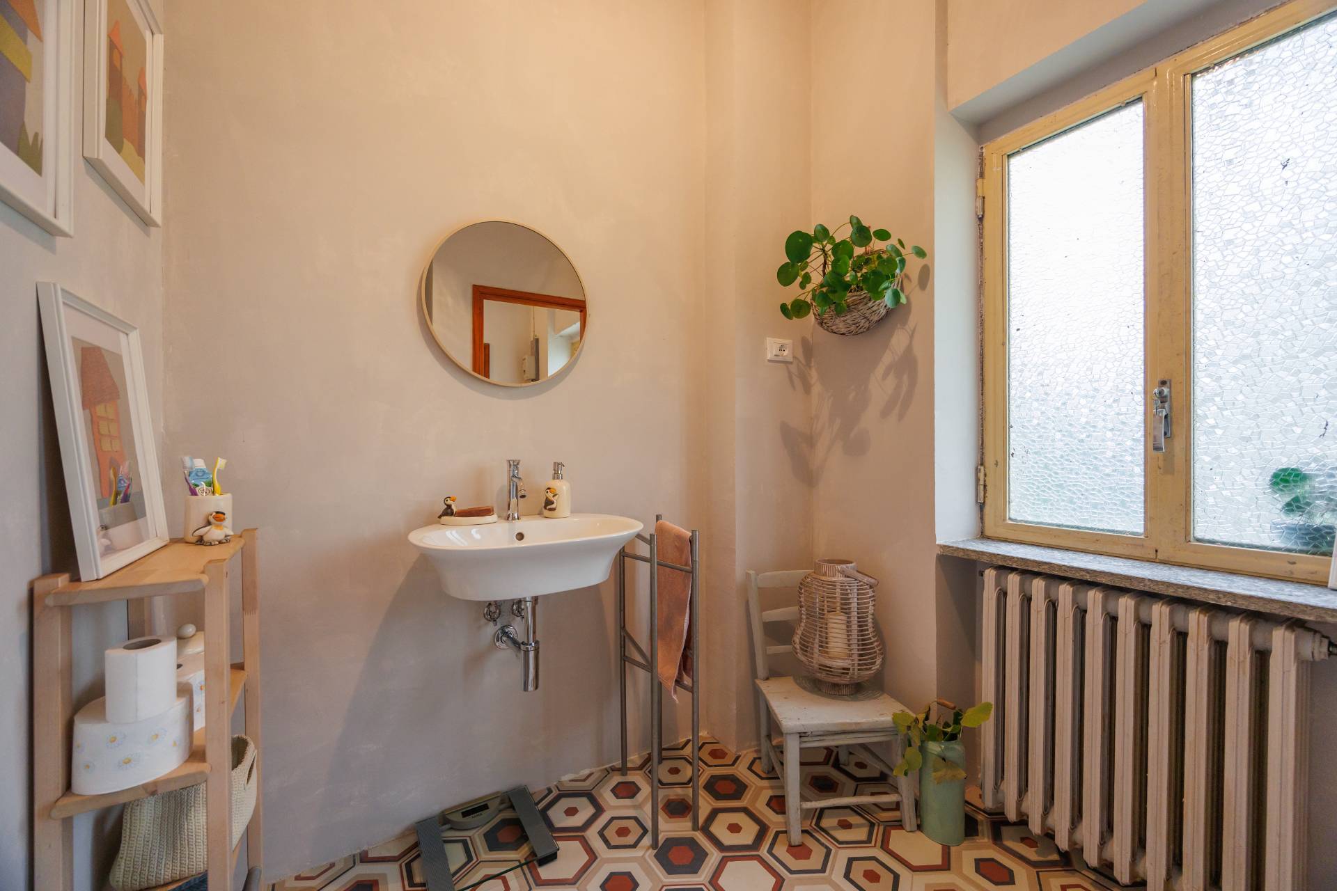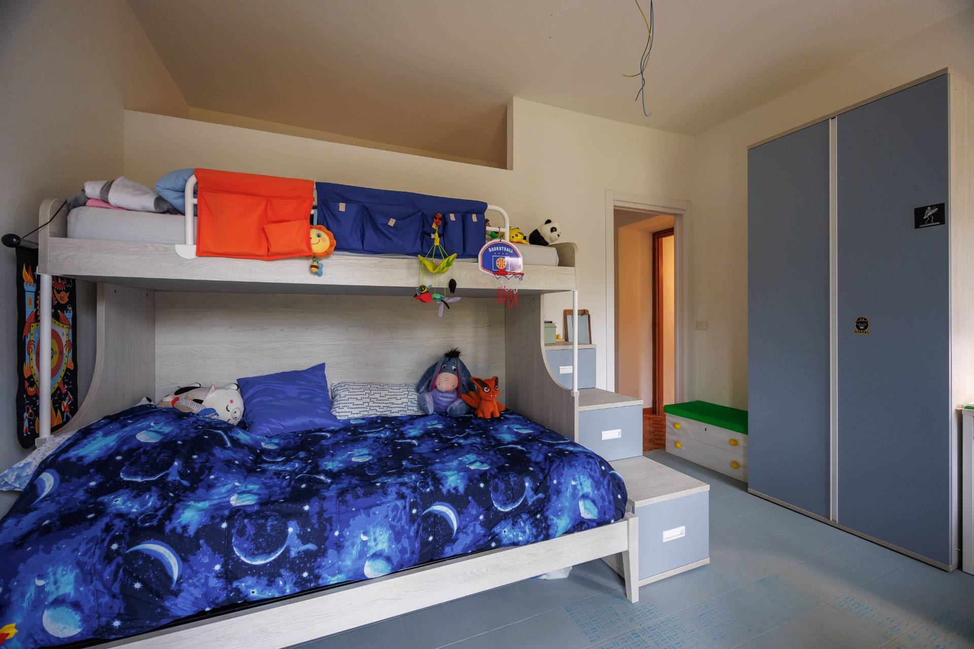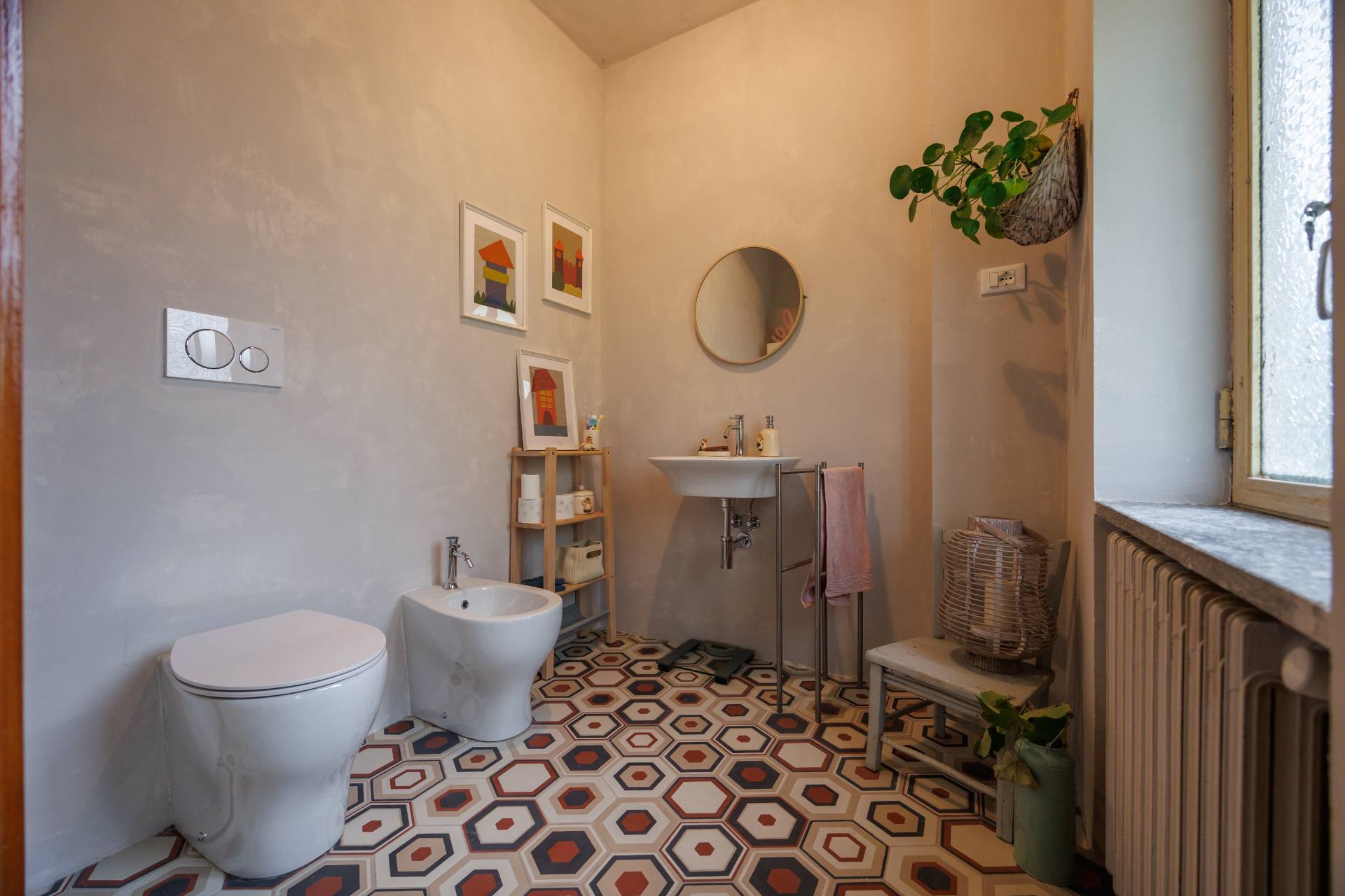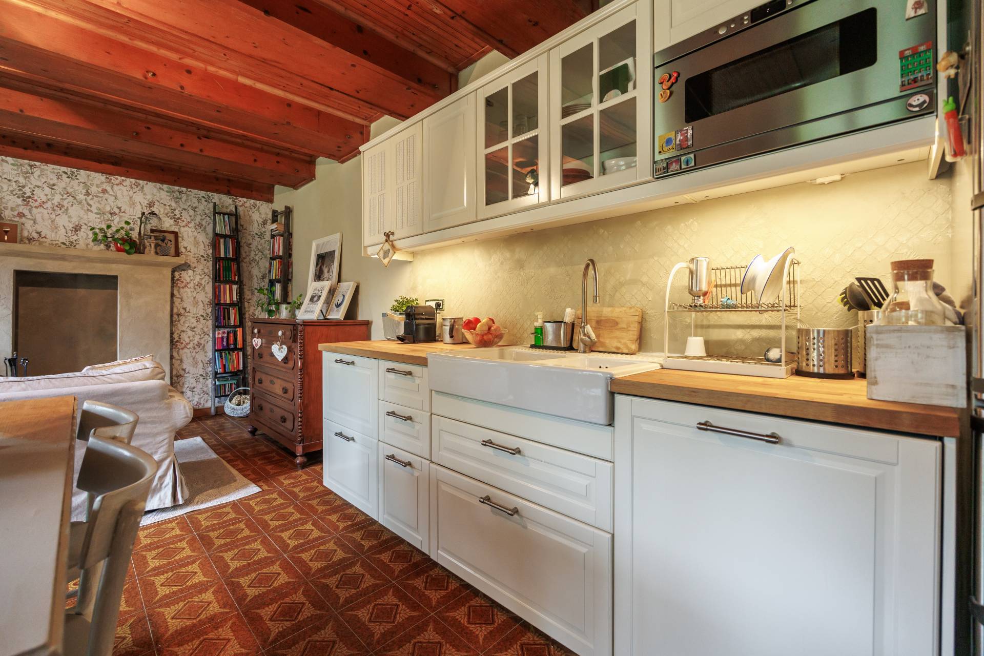 La prima parte della proprietà è frutto di una recentissima ristrutturazione parziale ed è dotata di impianto a gas metano e impianto idraulico che la rendono abitabile fin da subito, un'entrata sul disimpegno, con a sinistra la zona giorno caratterizzata da un'uscita sul giardino, rende l'ampio salone con cucina a vista luminoso e comfortevole. Una scala che collega il piano attuale alle due camere da letto con bagno e grande terrazzo poste al piano superiore e, sulla destra invece, il primo bagno e l'accesso a due locali di circa 20mq ciascuno, liberamente adattabili.