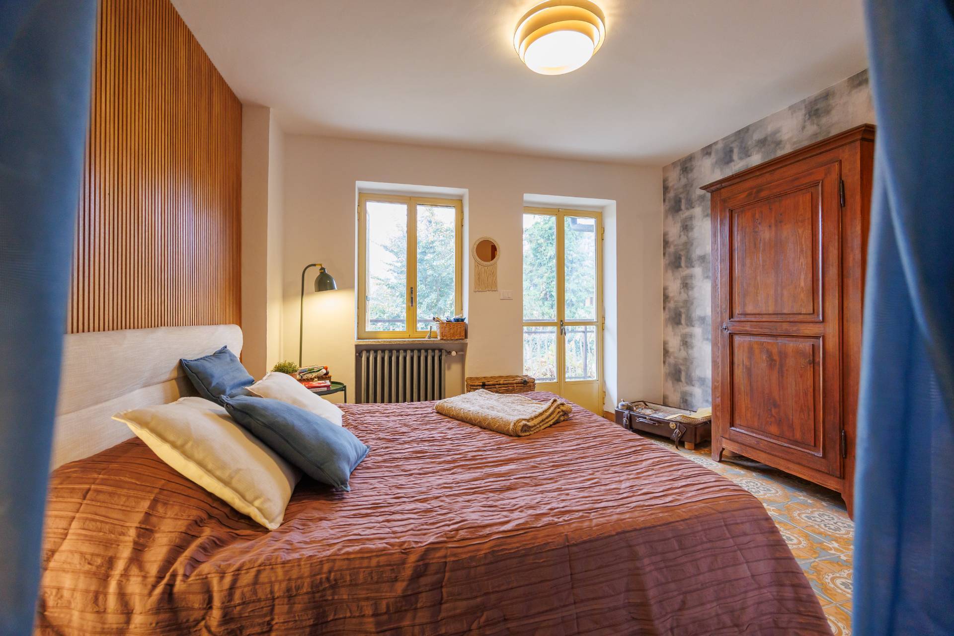 La soluzione si presenta divisa in due unità abitative collegabili tra loro, entrambe disposte su due livelli con ingressi diretti dal giardino.