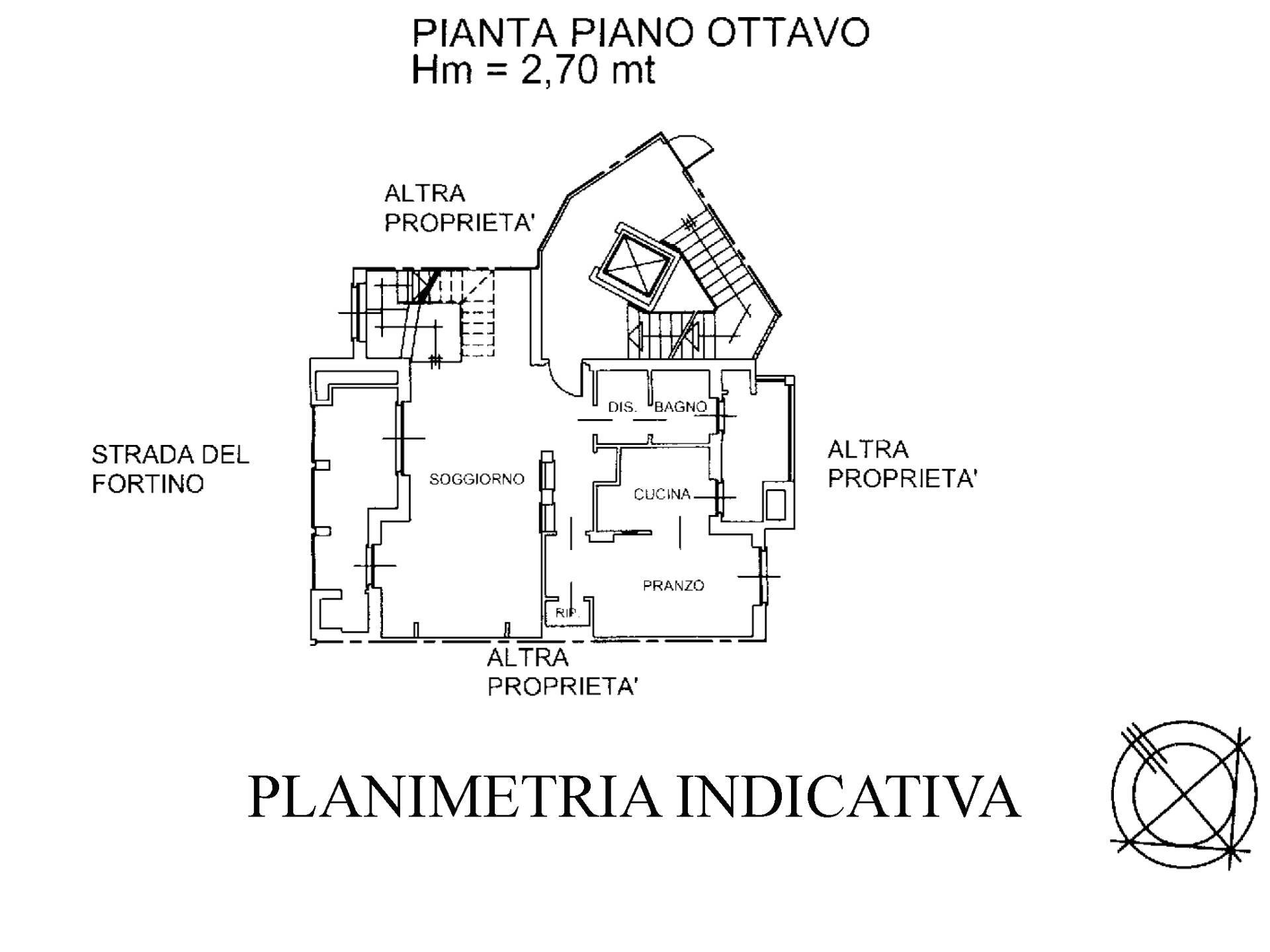 All'ottavo piano si accede a un ampio e accogliente salone con camino e accesso diretto al primo terrazzo, una cucina con adiacente sala da pranzo e un bagno con doccia.