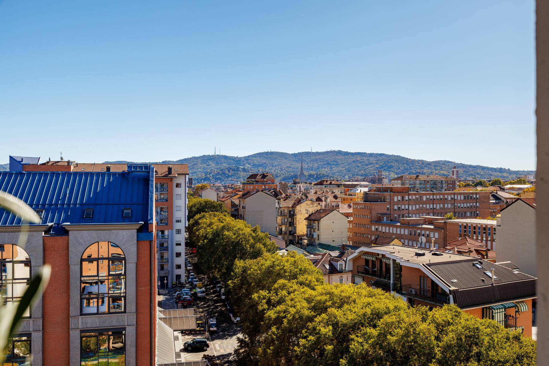 Al decimo piano, un esclusivo terrazzo panoramico offre una vista a 360° sulla collina torinese e sull'arco alpino, ideale per momenti di relax o convivialità all'aperto.