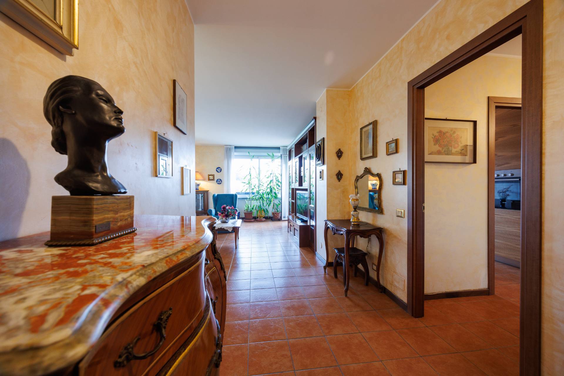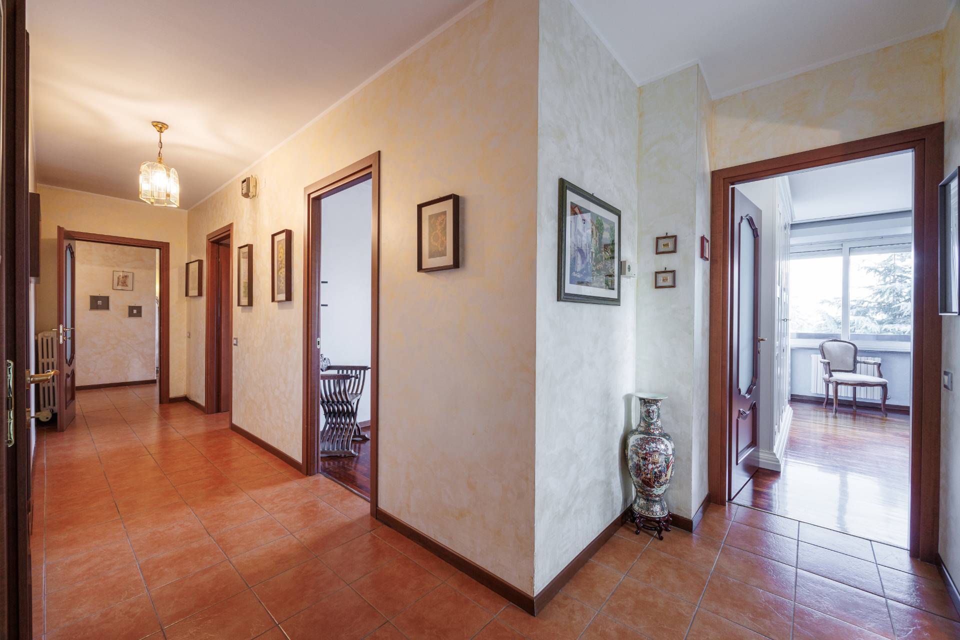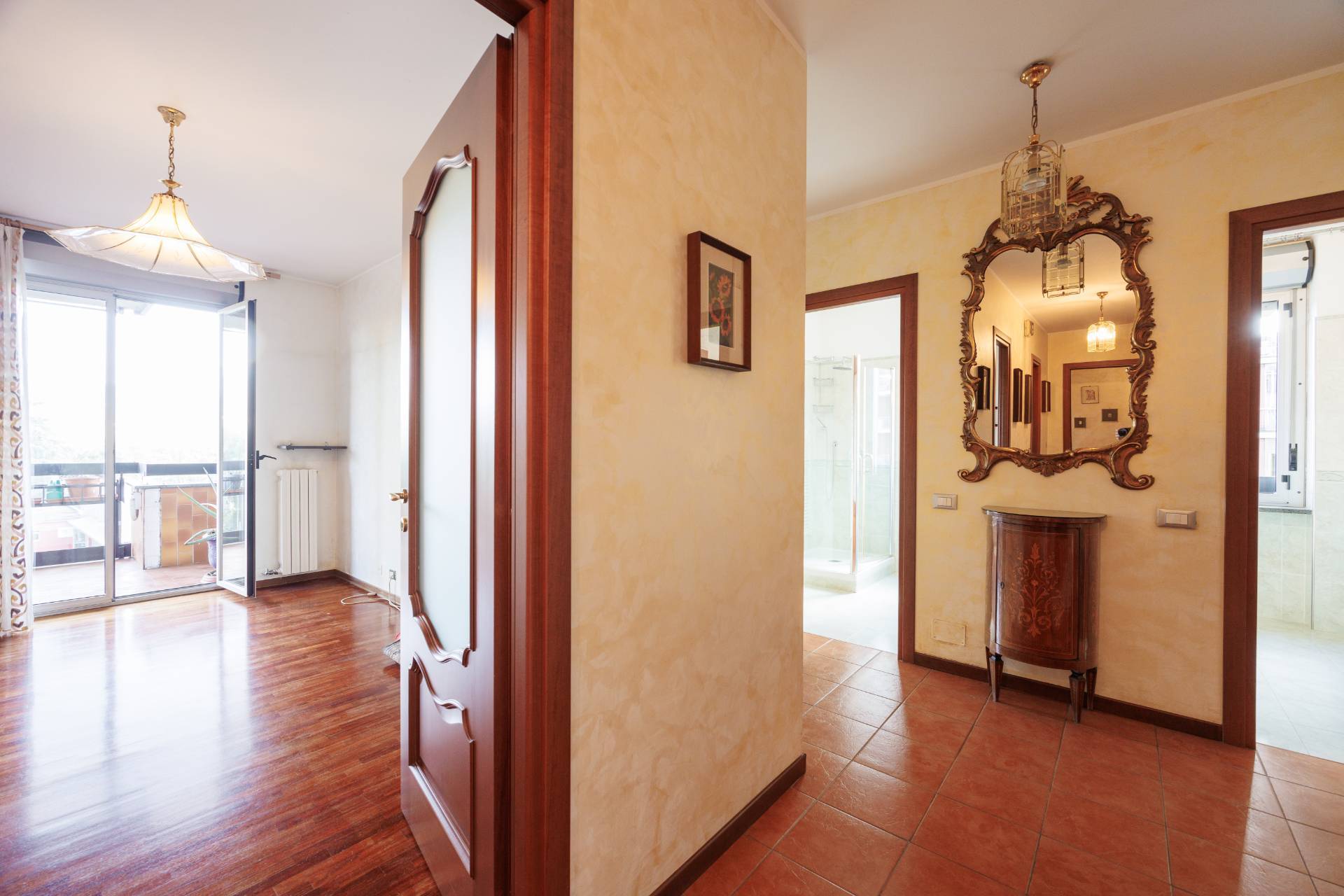 L'immobile si compone di un grande ingresso, un soggiorno con accesso diretto al terrazzo vivibile, cucina separata e arredata (eventualmente unibile al soggiorno e al corridoio) , tre camere da letto con parquet, due bagni ristrutturati nel 2014 e ampio ripostiglio.