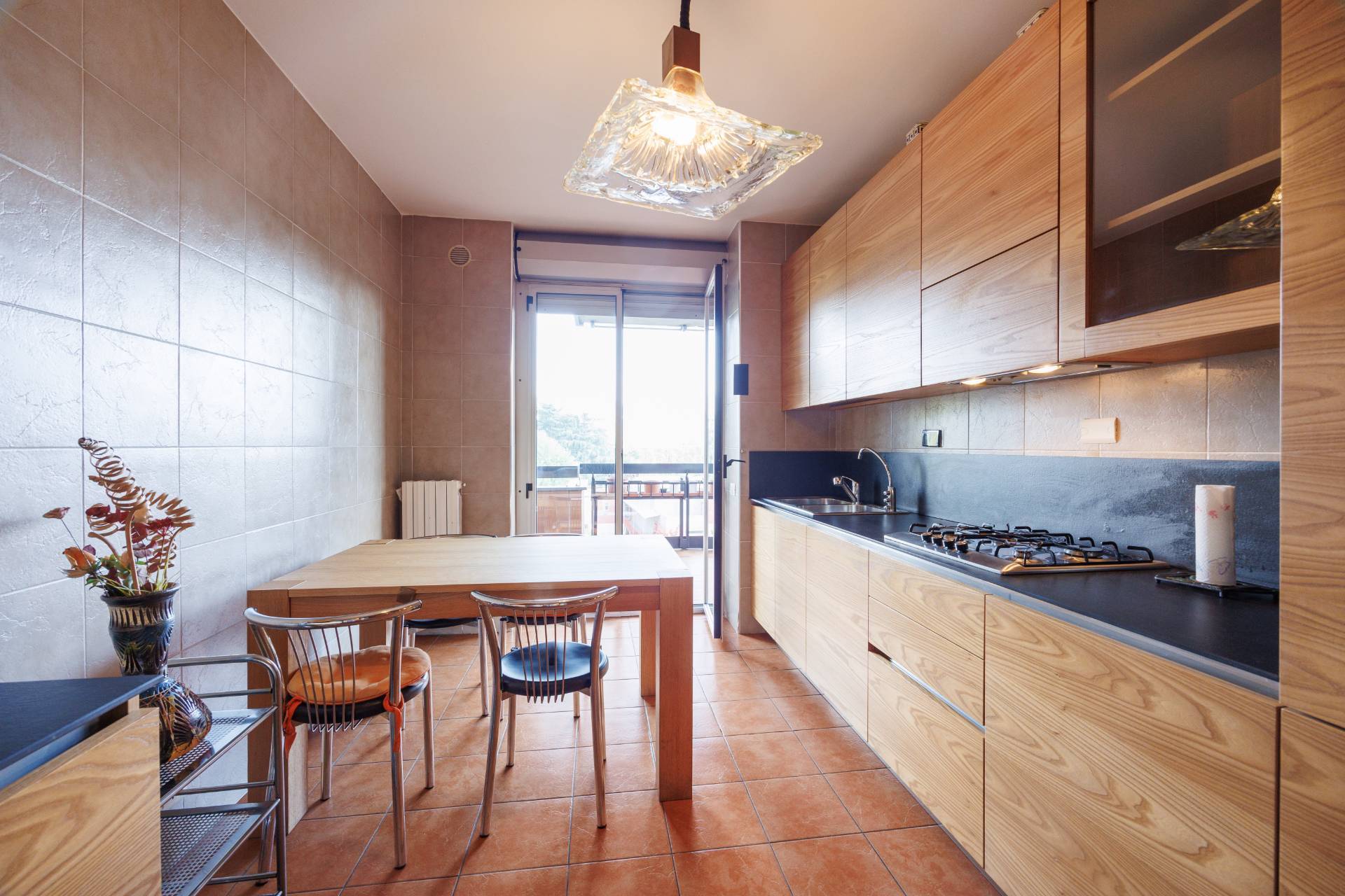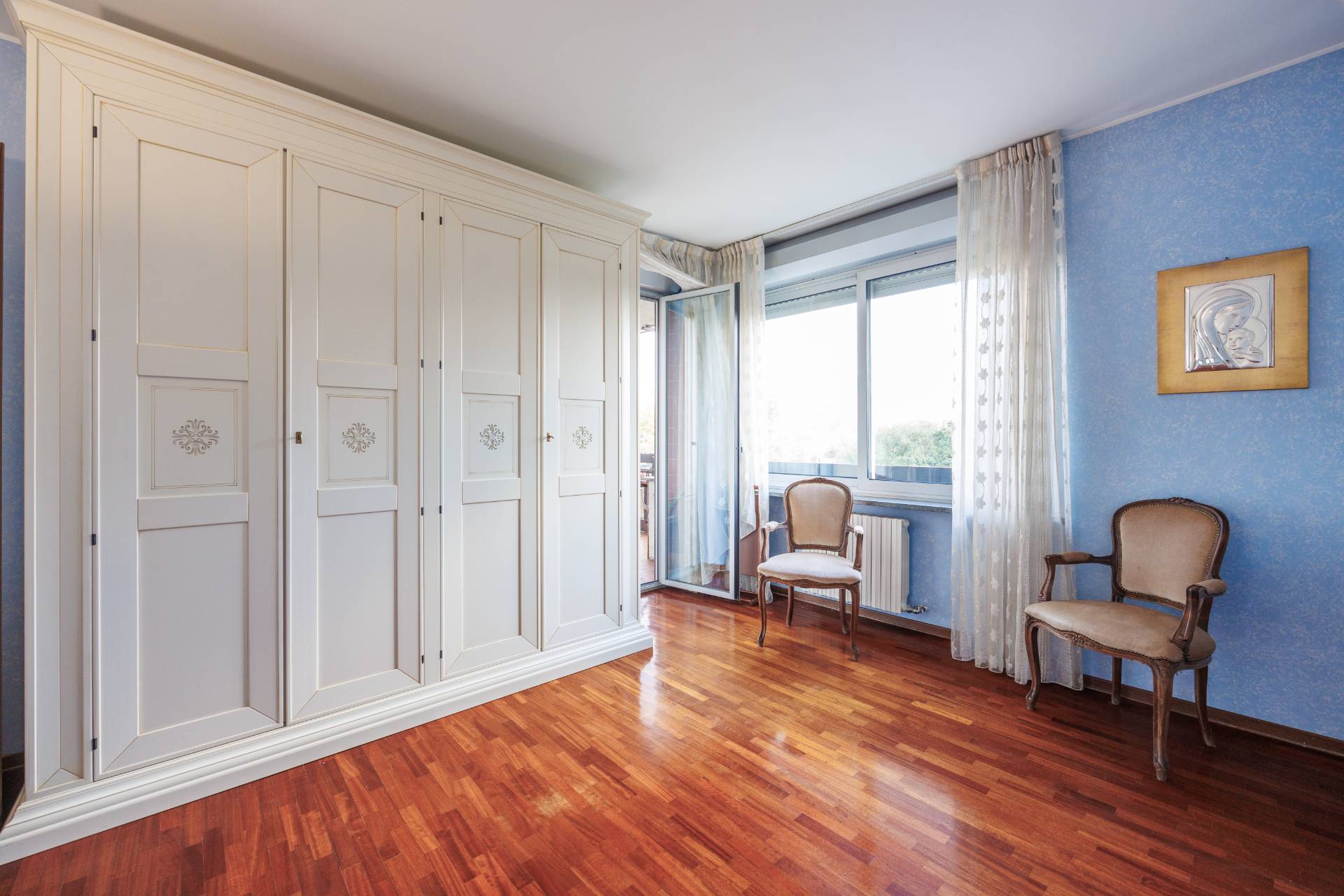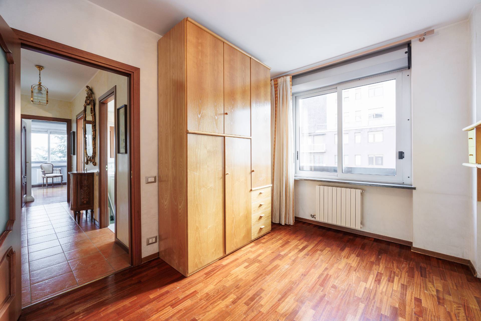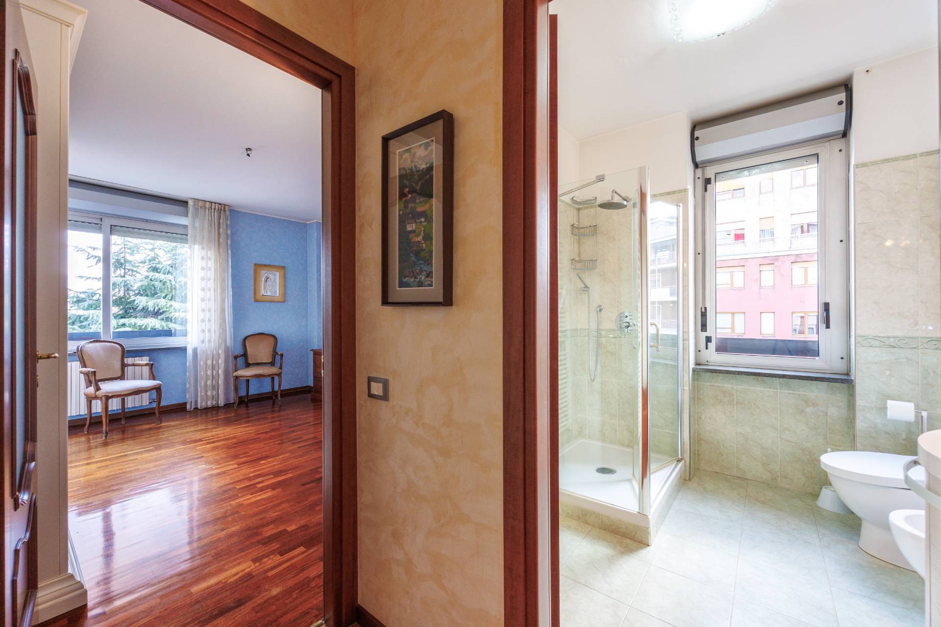 L'immobile si compone di un grande ingresso, un soggiorno con accesso diretto al terrazzo vivibile, cucina separata e arredata (eventualmente unibile al soggiorno e al corridoio) , tre camere da letto con parquet, due bagni ristrutturati nel 2014 e ampio ripostiglio.