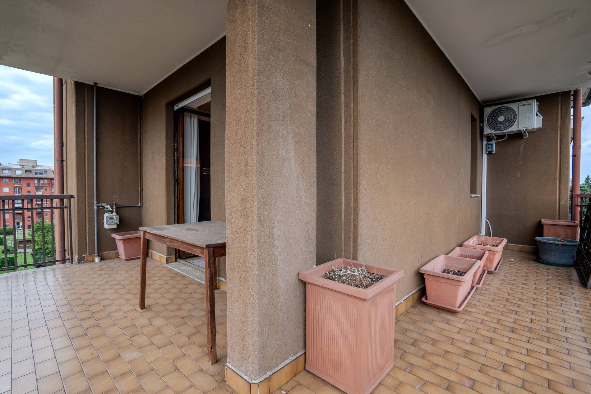 Ad Assago - via Matteotti 16 vendiamo un pregevole bilocale biesposto di 68 mq. (di cui 61 mq. interni) al quarto piano, composto da: soggiorno con cucina a vista ed accesso ad ampio terrazzo loggiato, camera matrimoniale con secondo balcone e bagno finestrato, oltre a cantina pertinenziale al piano seminterrato.